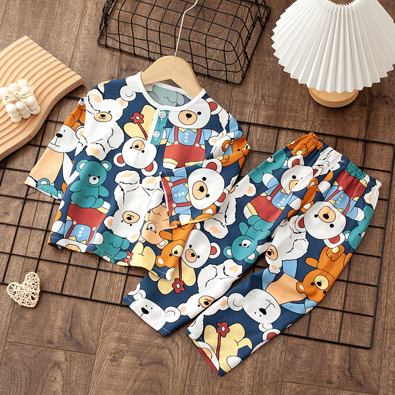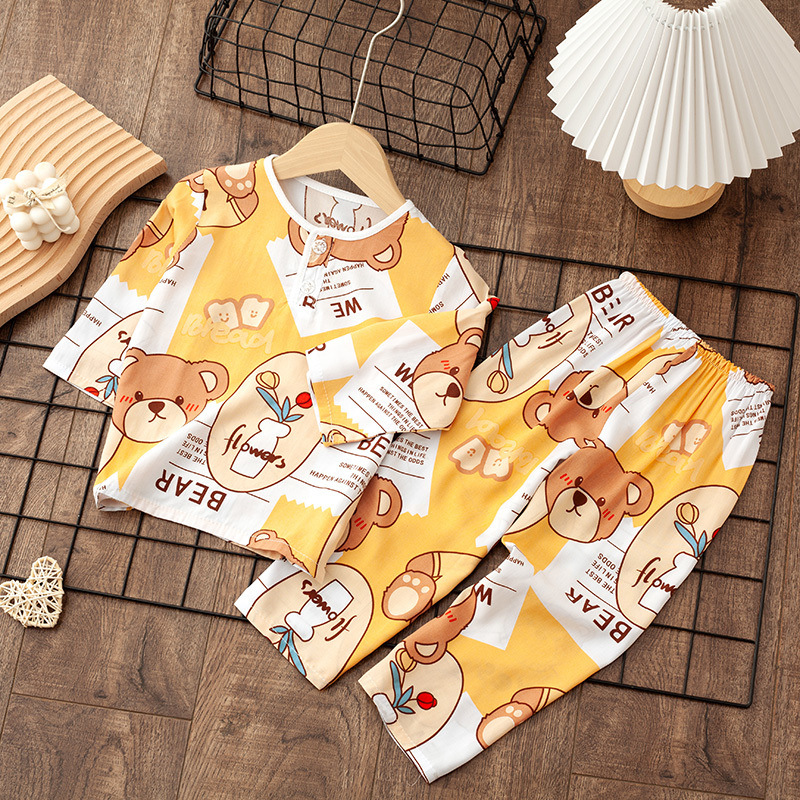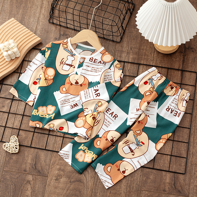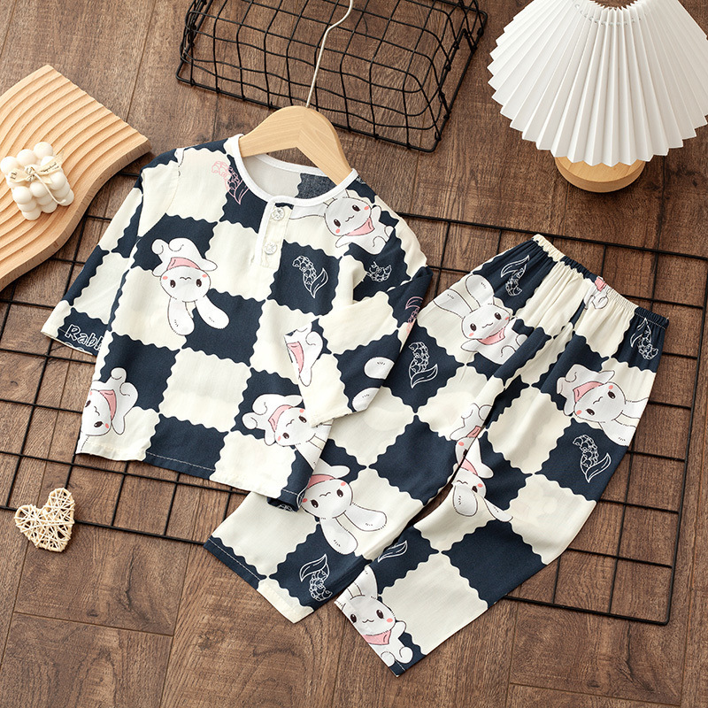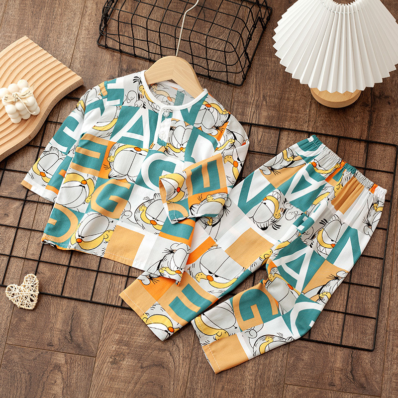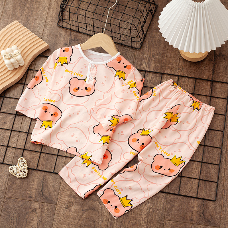 소년 소녀를위한 여름 레이온 어린이 잠옷 중소형 어린이 면 실크 얇은 홈 의류 소년 아기 긴팔 세트