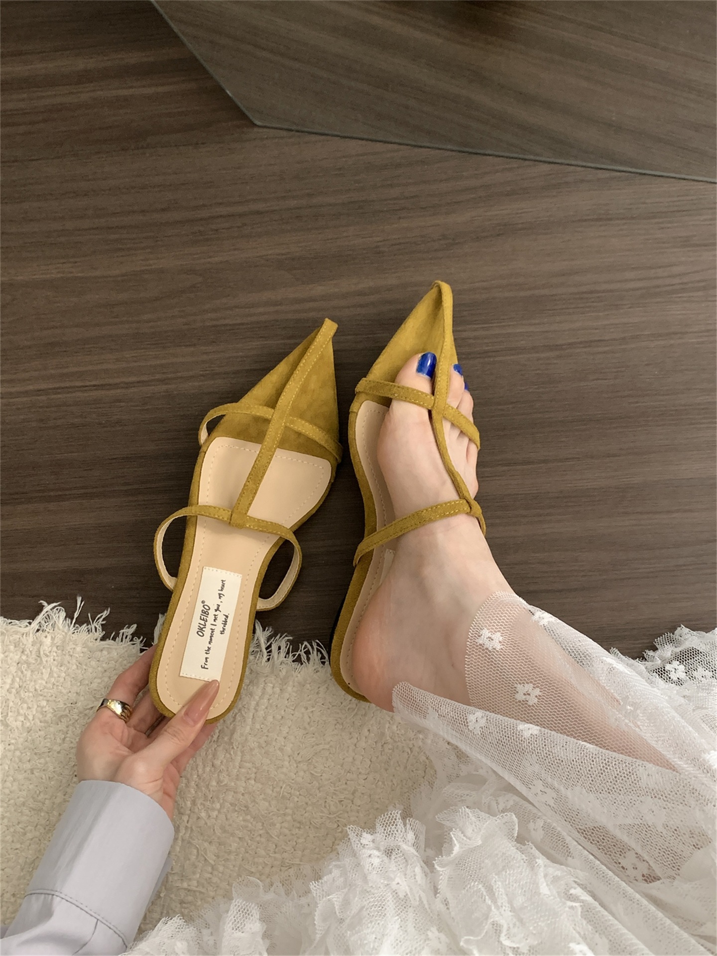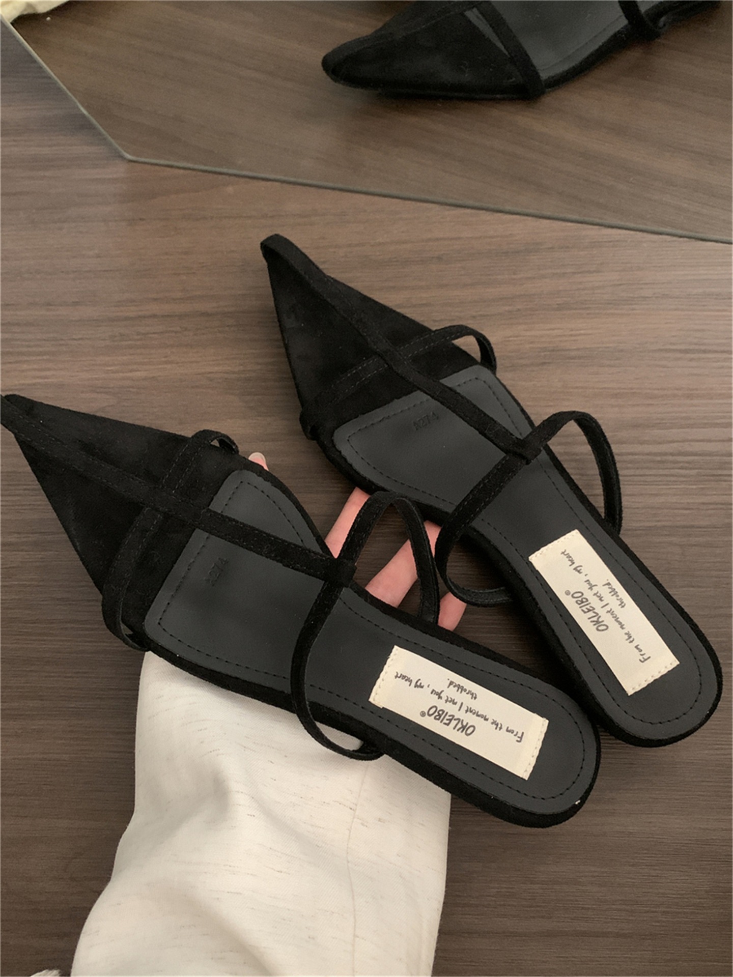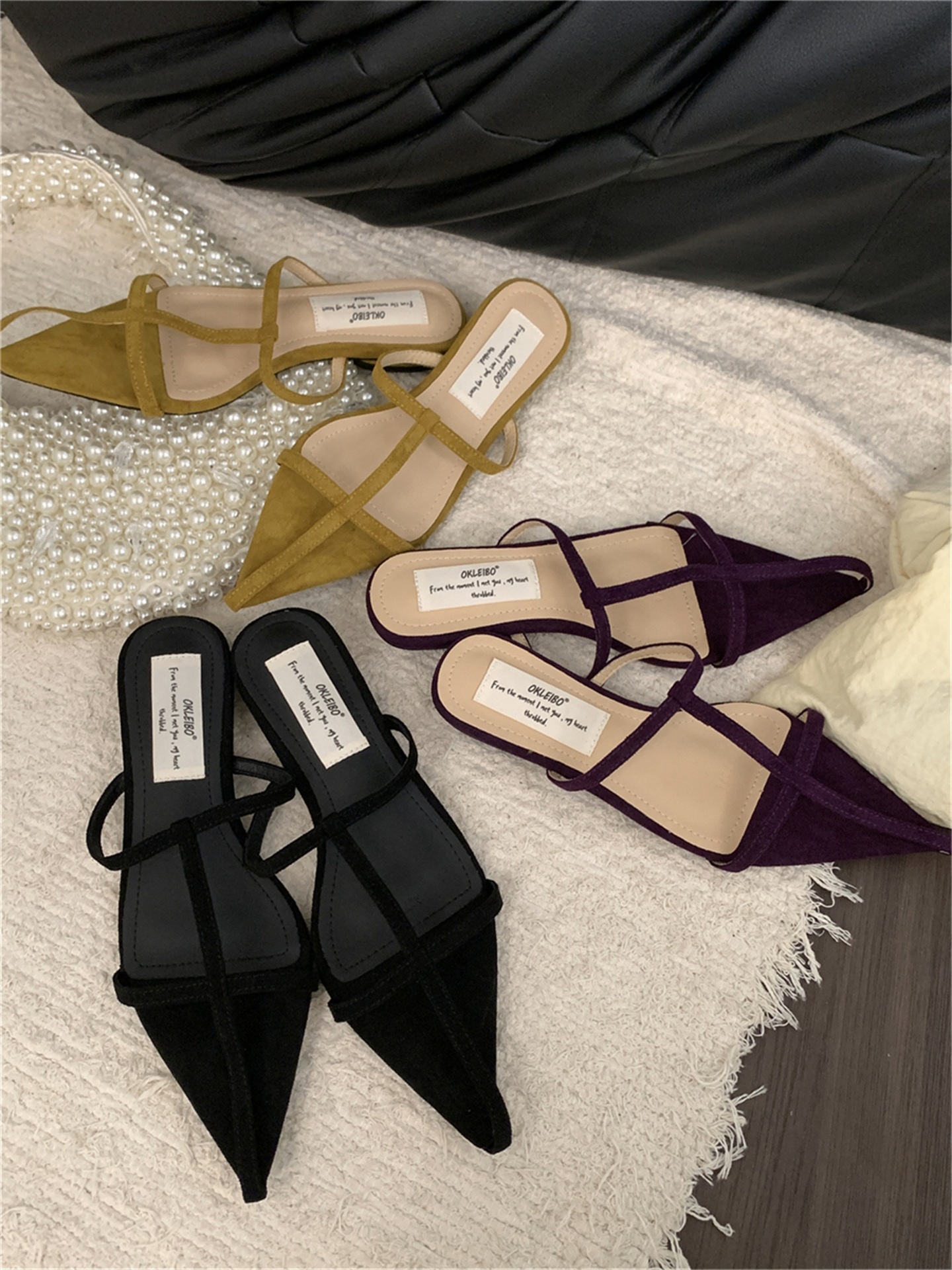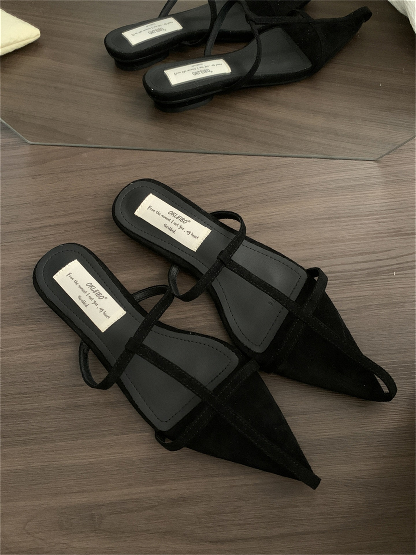 2025년 여름 한국판 얇은 스트랩 중공 오픈토 포인티드 슬립온 로우힐 패셔너블한 개성 샌들 슬립온 샌들스토어 가기