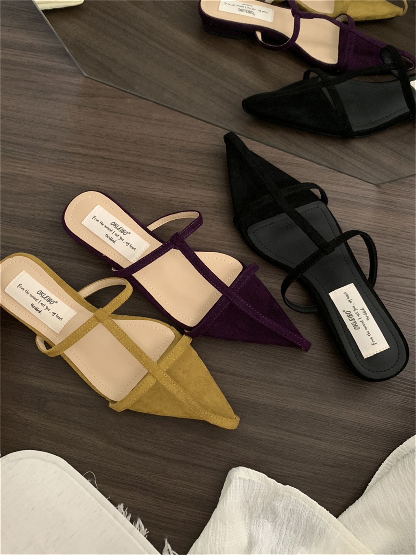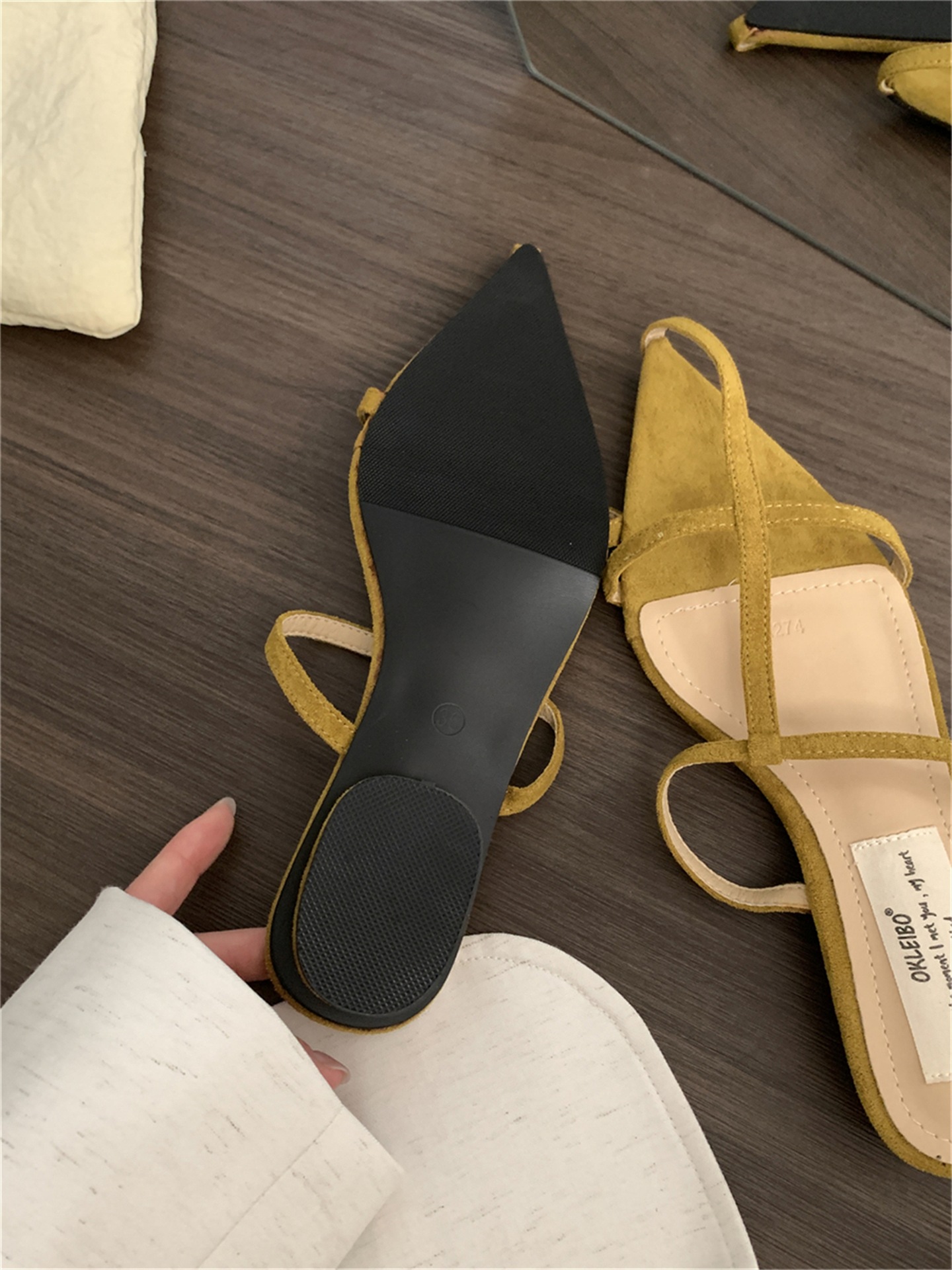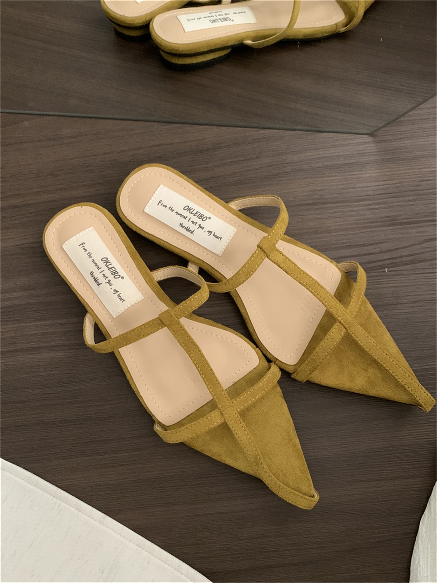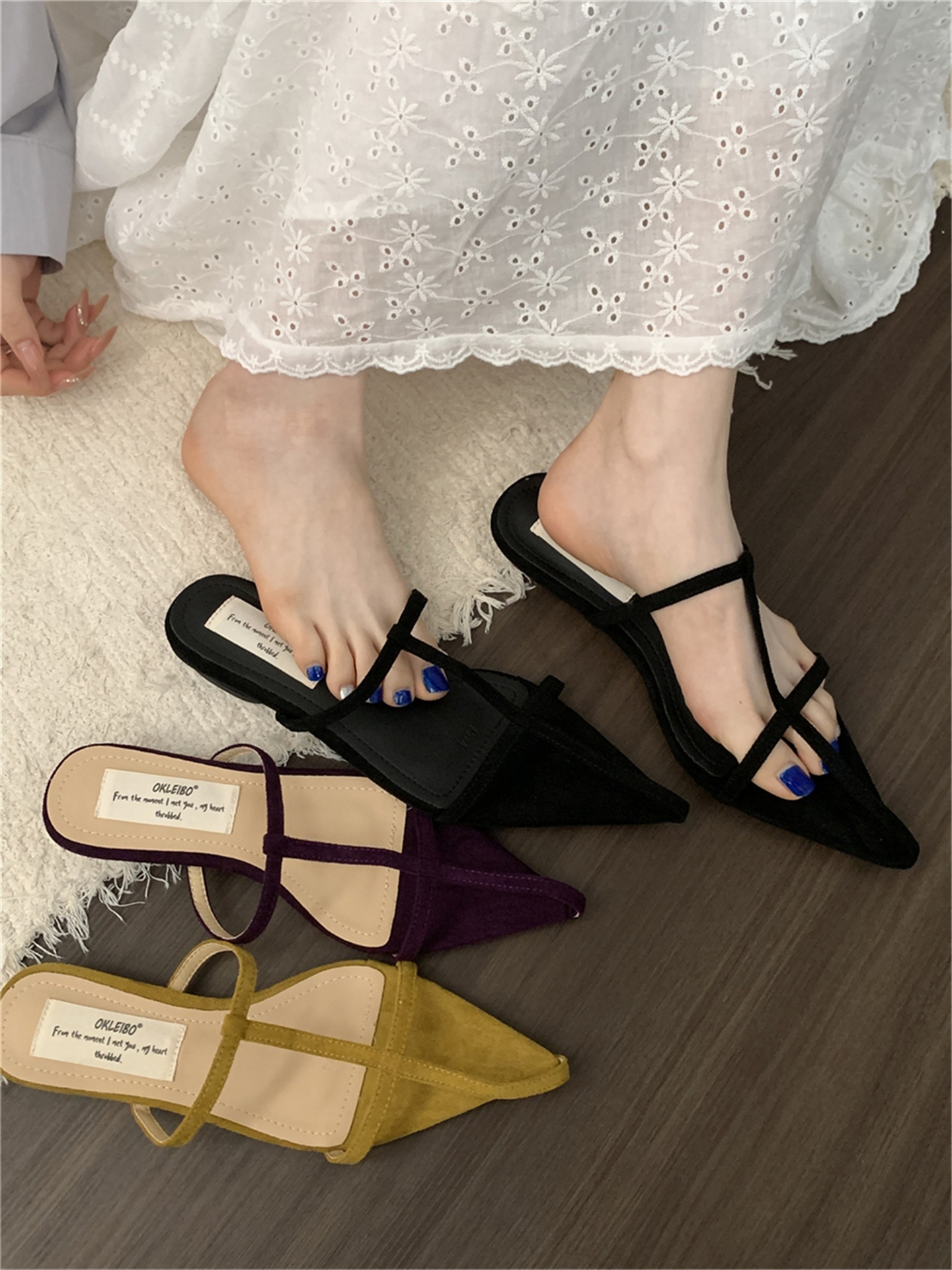 2025년 여름 한국판 얇은 스트랩 중공 오픈토 포인티드 슬립온 로우힐 패셔너블한 개성 샌들 슬립온 샌들스토어 가기