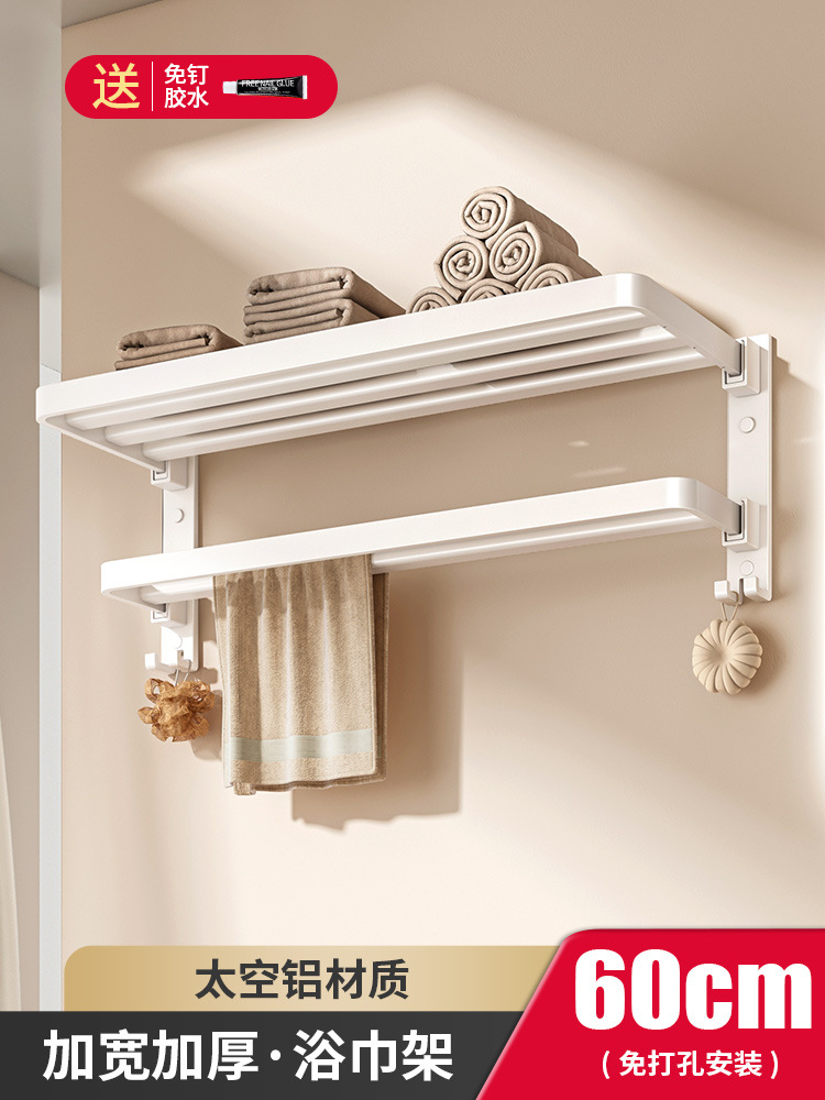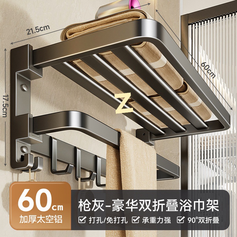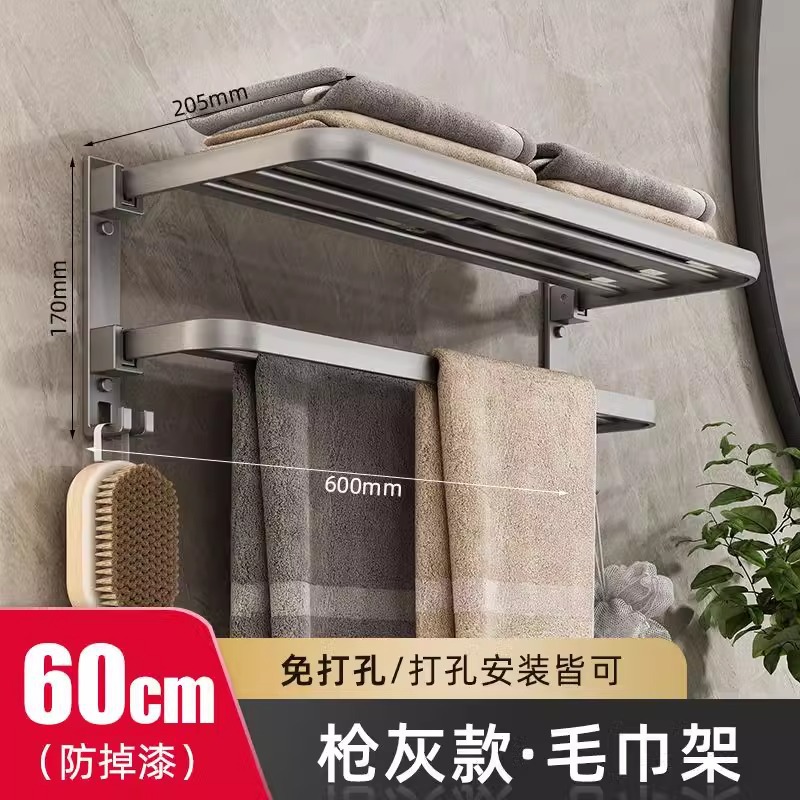 건 그레이 수건 걸이 공간 알루미늄 화장실 수건 걸이 욕실 접이식 욕실 선반 펀치없는 벽걸이