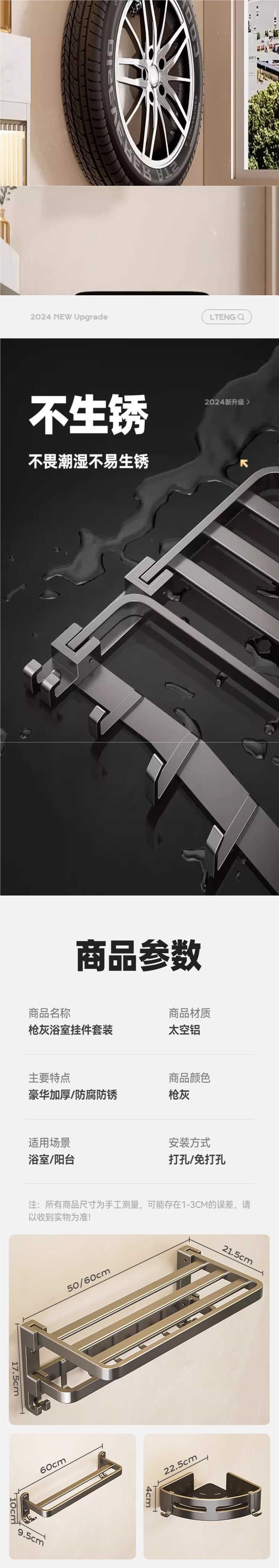 • 건그레이—이중 접이식 수건걸이 60cm ♢ ♢