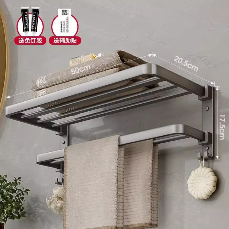 건 그레이 수건 걸이 공간 알루미늄 화장실 수건 걸이 욕실 접이식 욕실 선반 펀치없는 벽걸이스토어 가기