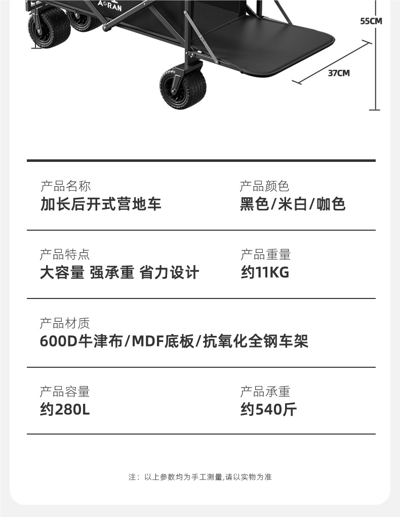 • 후면 개방형 대형 모델 - 옵시디언 블랙 [360L-7cm 더블 브레이크 유니버설 휠 + 견인 버킷 보강]