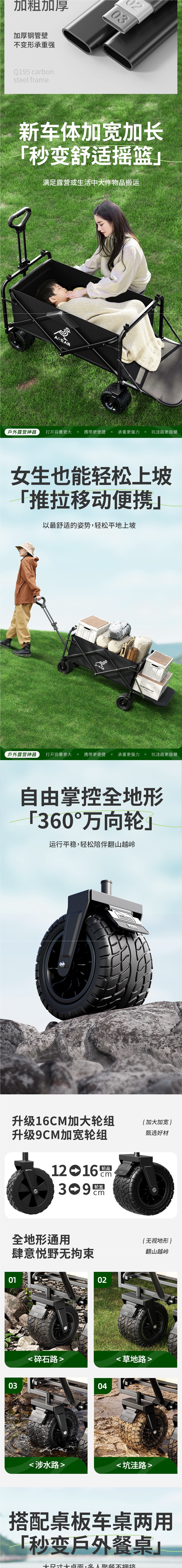 • 다음 카트 + 테이블 패키지 [카트는 몇 초 만에 캠핑 테이블로 변신]