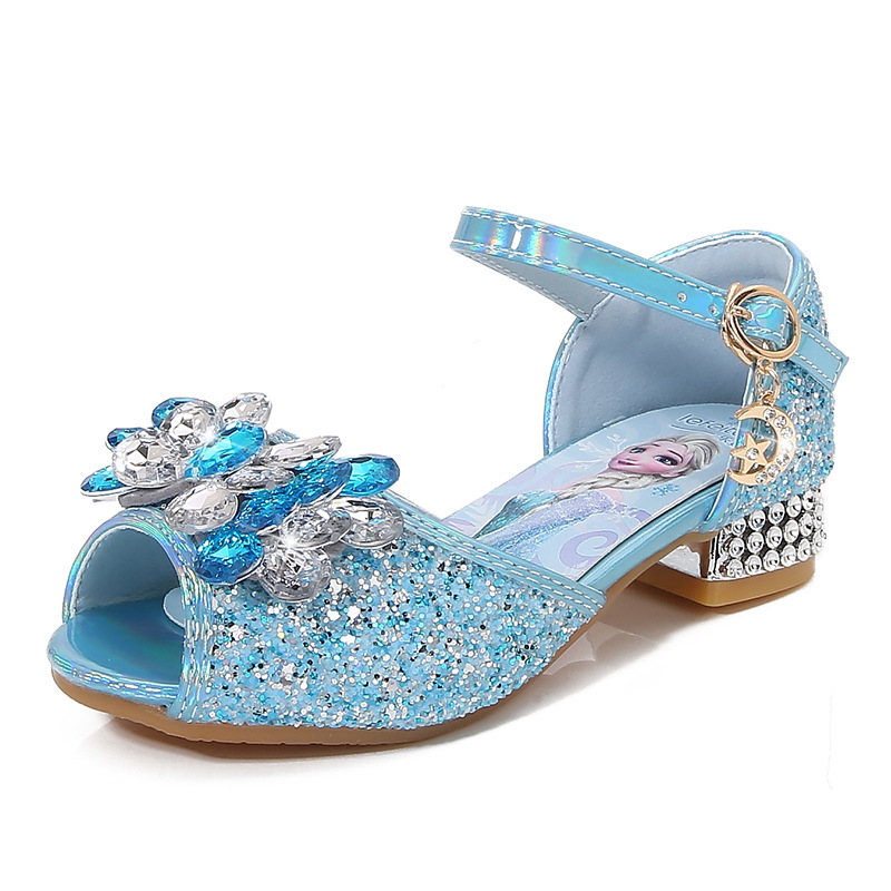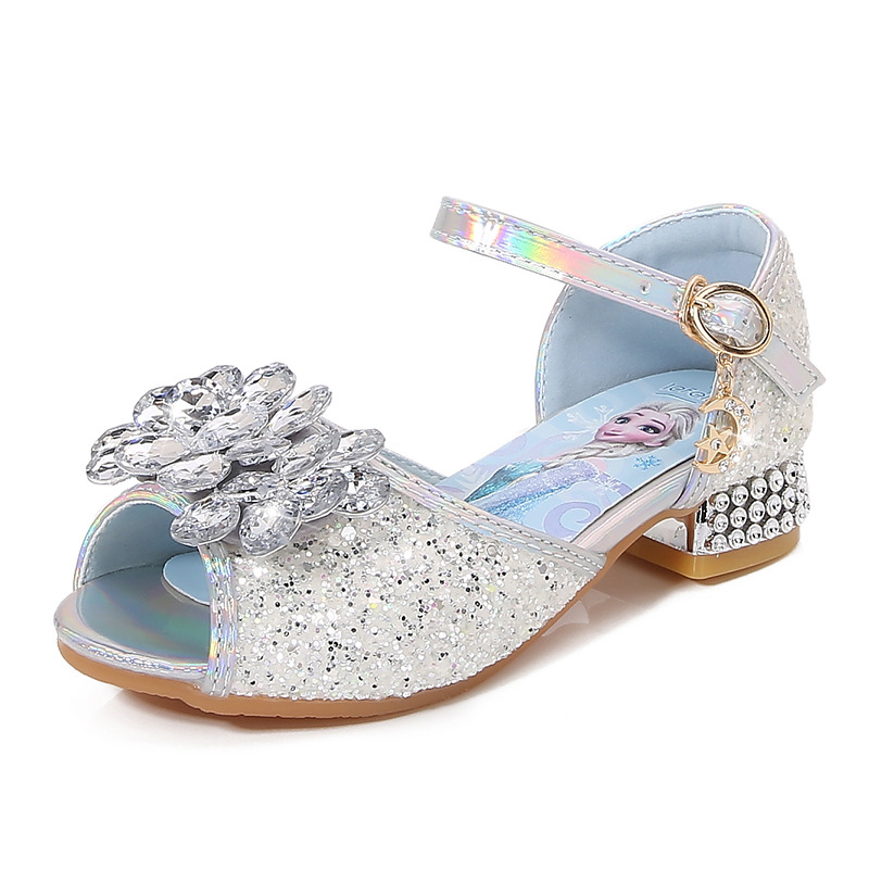 여자 샌들 여성용 보물 새 한국 스타일 여름 어린이 하이힐 어린 소녀 크리스탈 신발 유행 부드러운 밑창 공주 신발