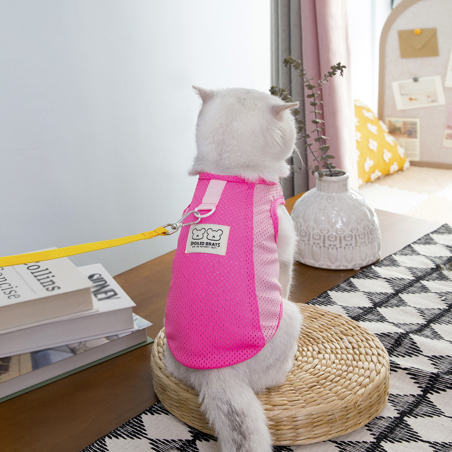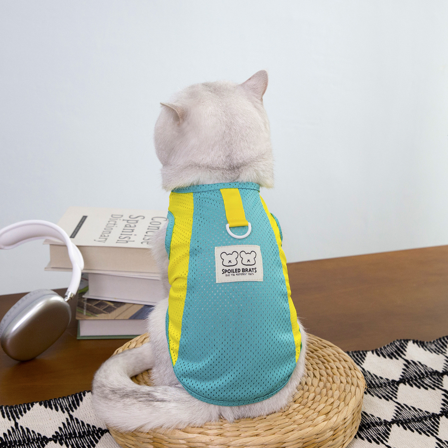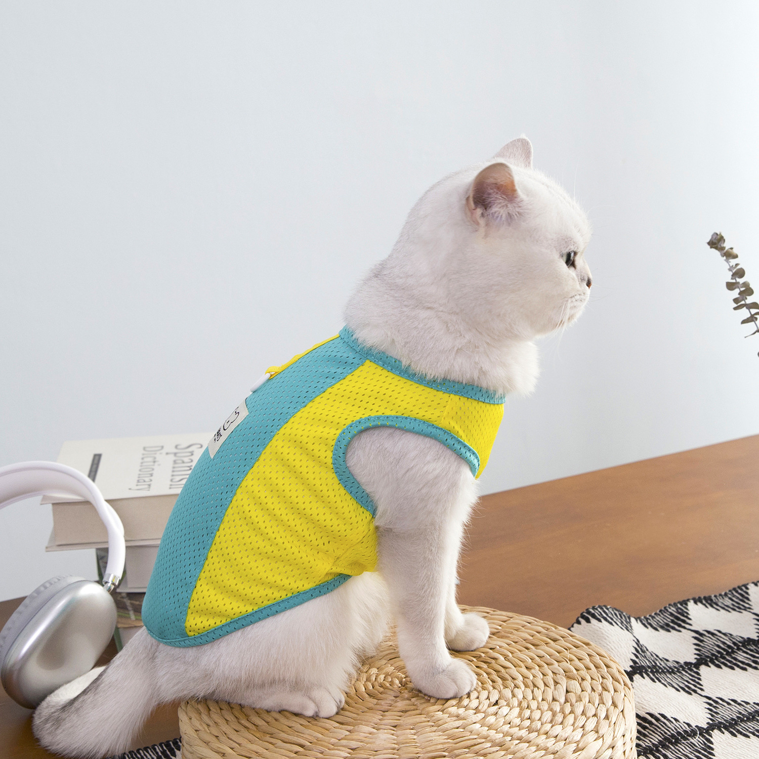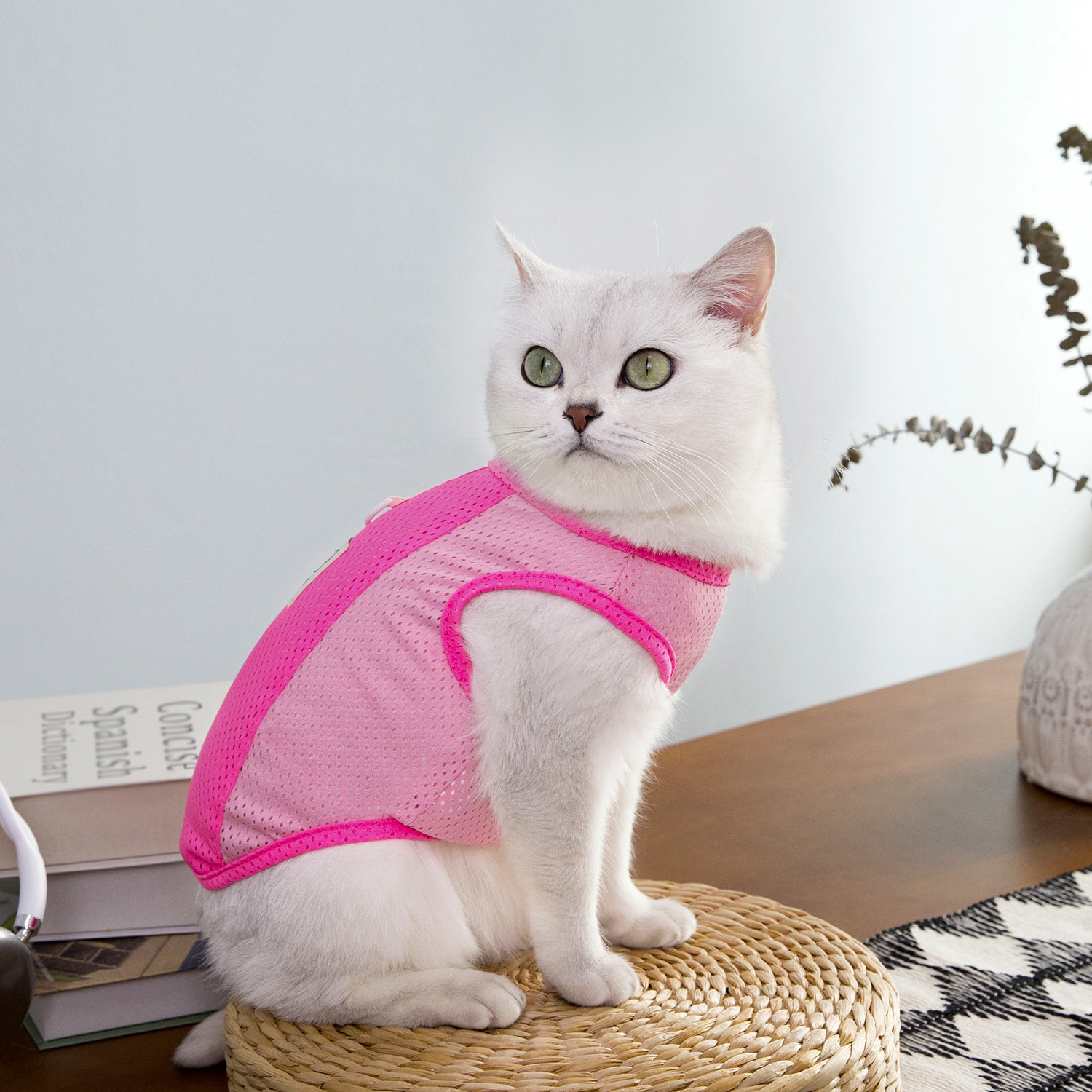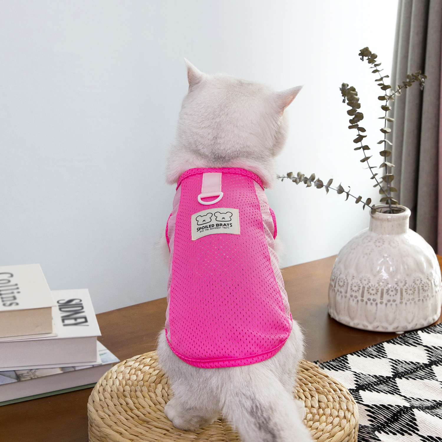짧은 털을 가진 고양이와 작은 애완동물을 위한 새로운 봄 여름 얇은 애완동물 옷, 통기성이 좋은 메쉬 체크무늬 25개 토끼 메쉬 조끼스토어 가기