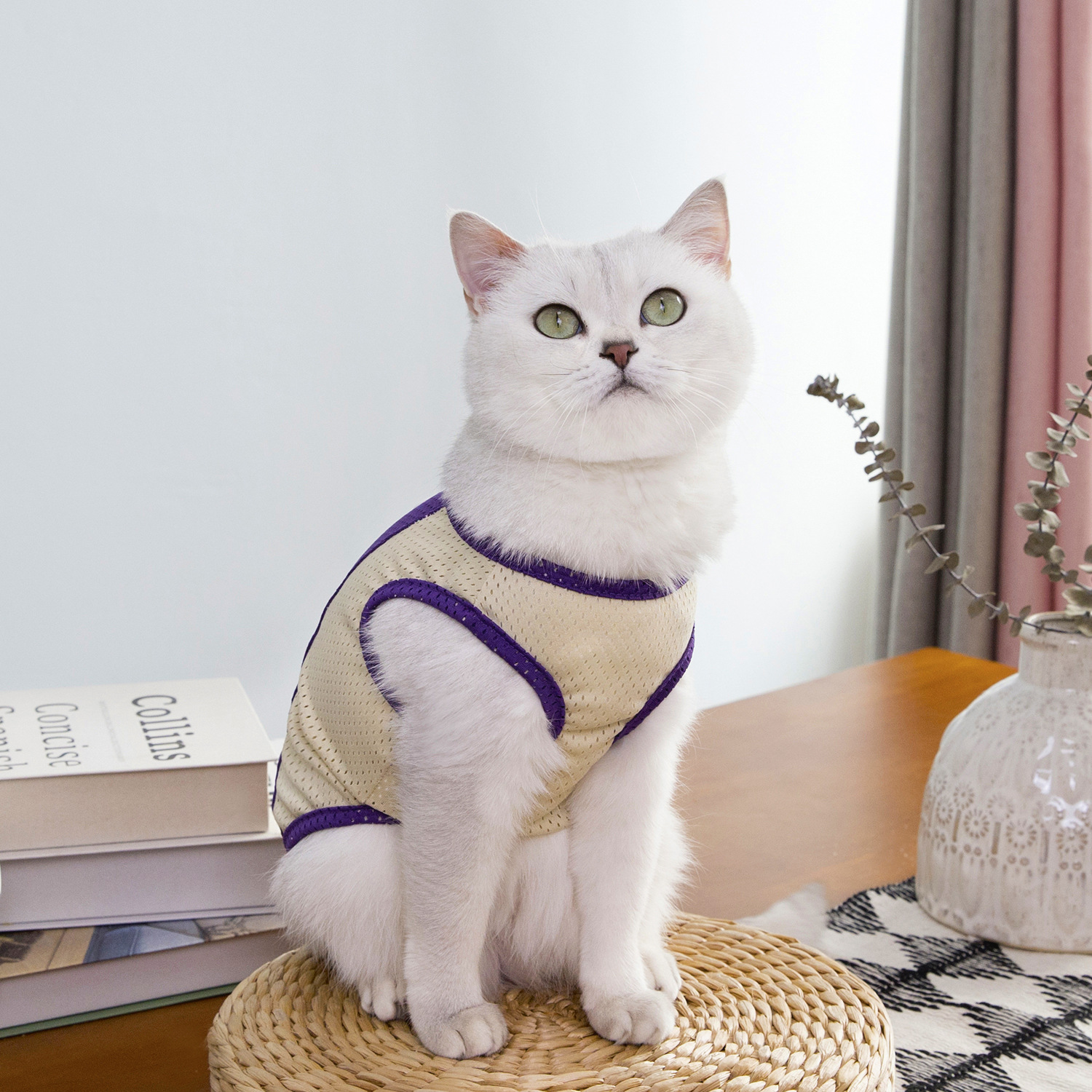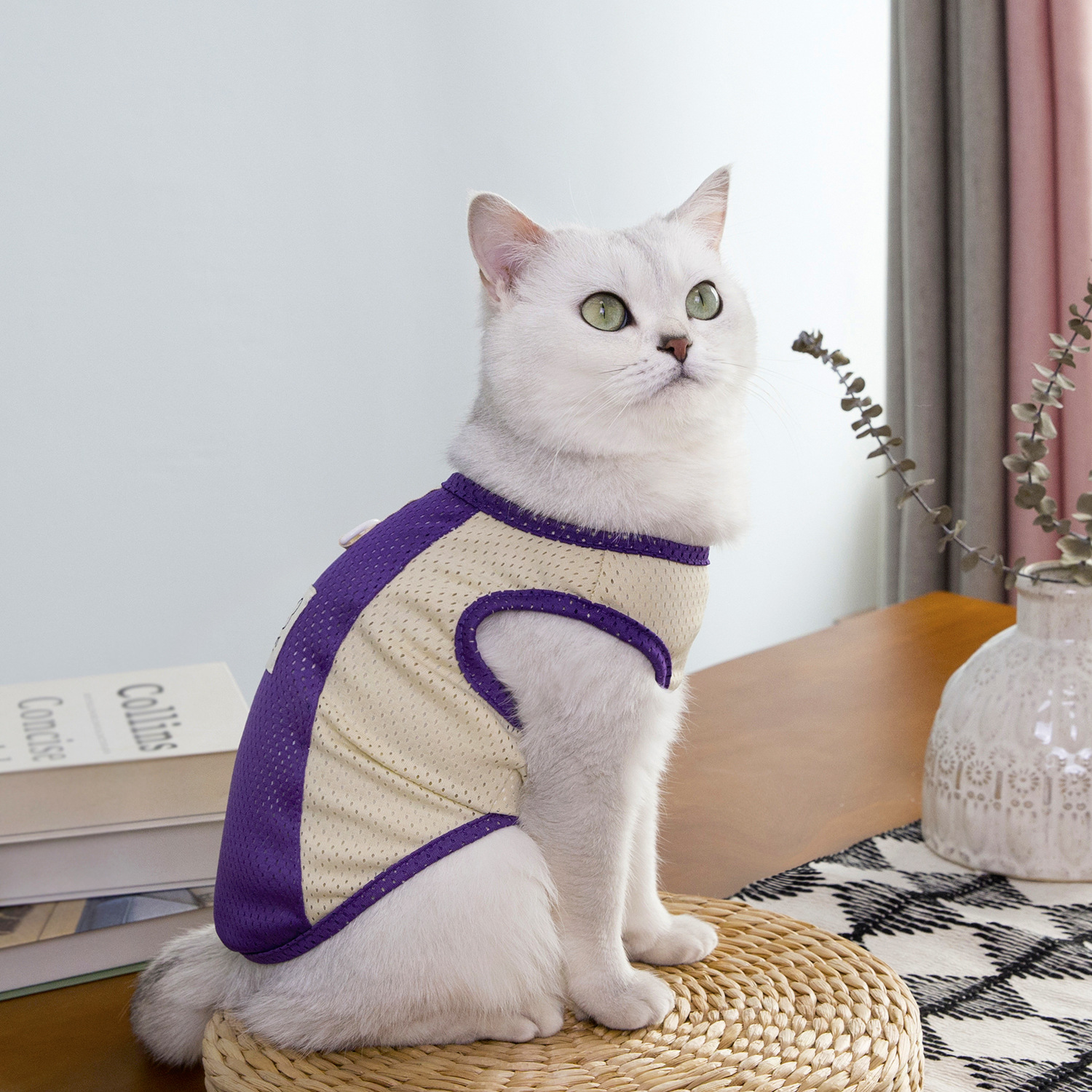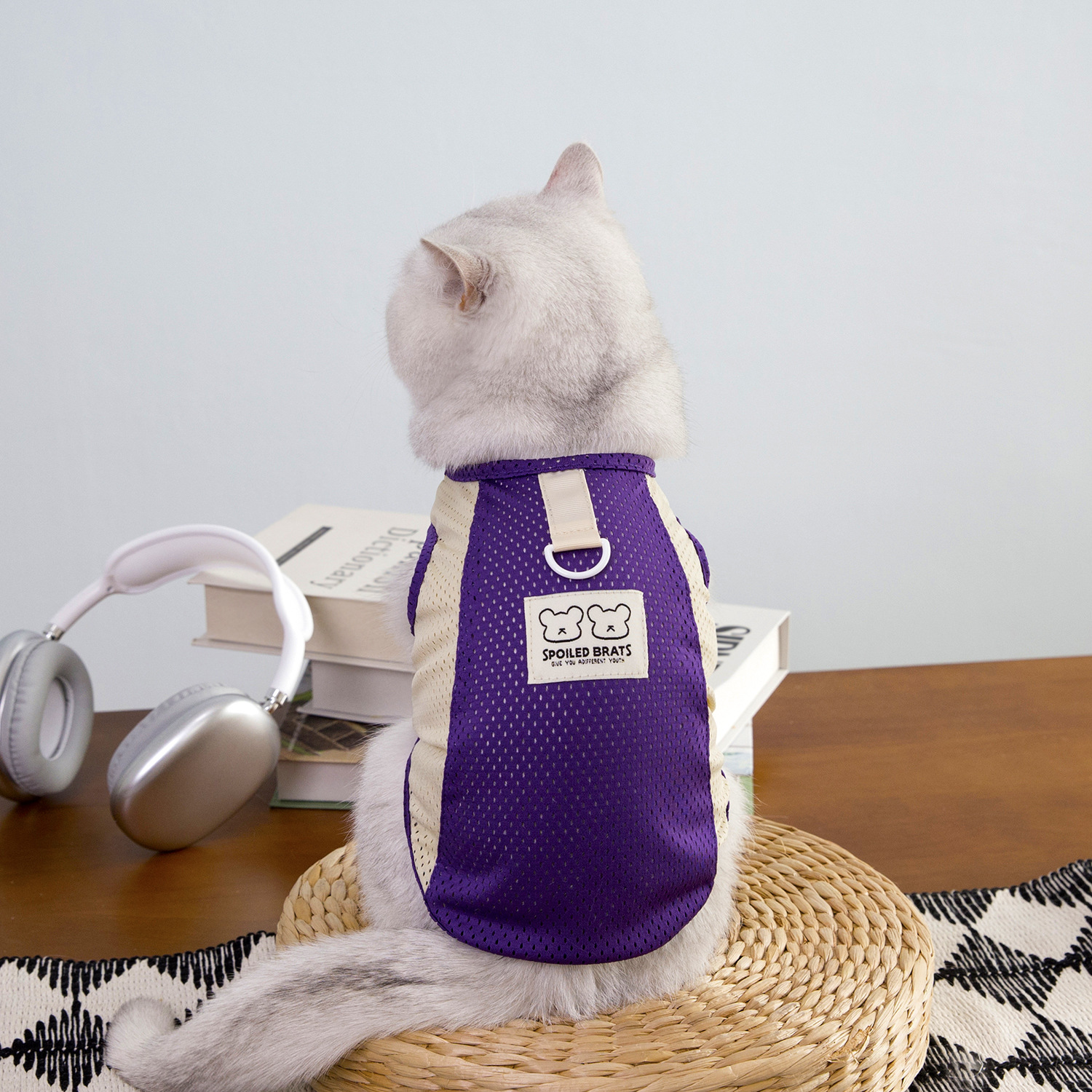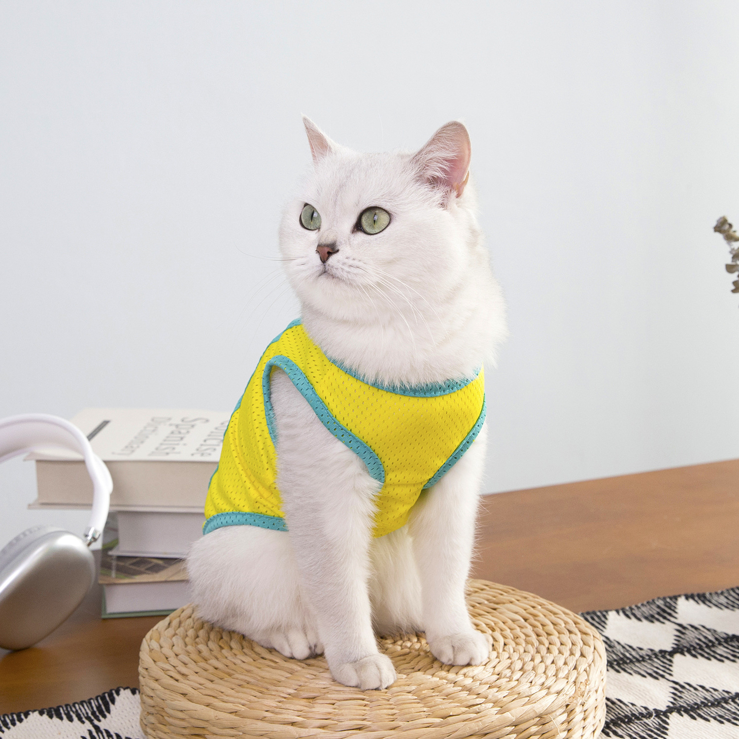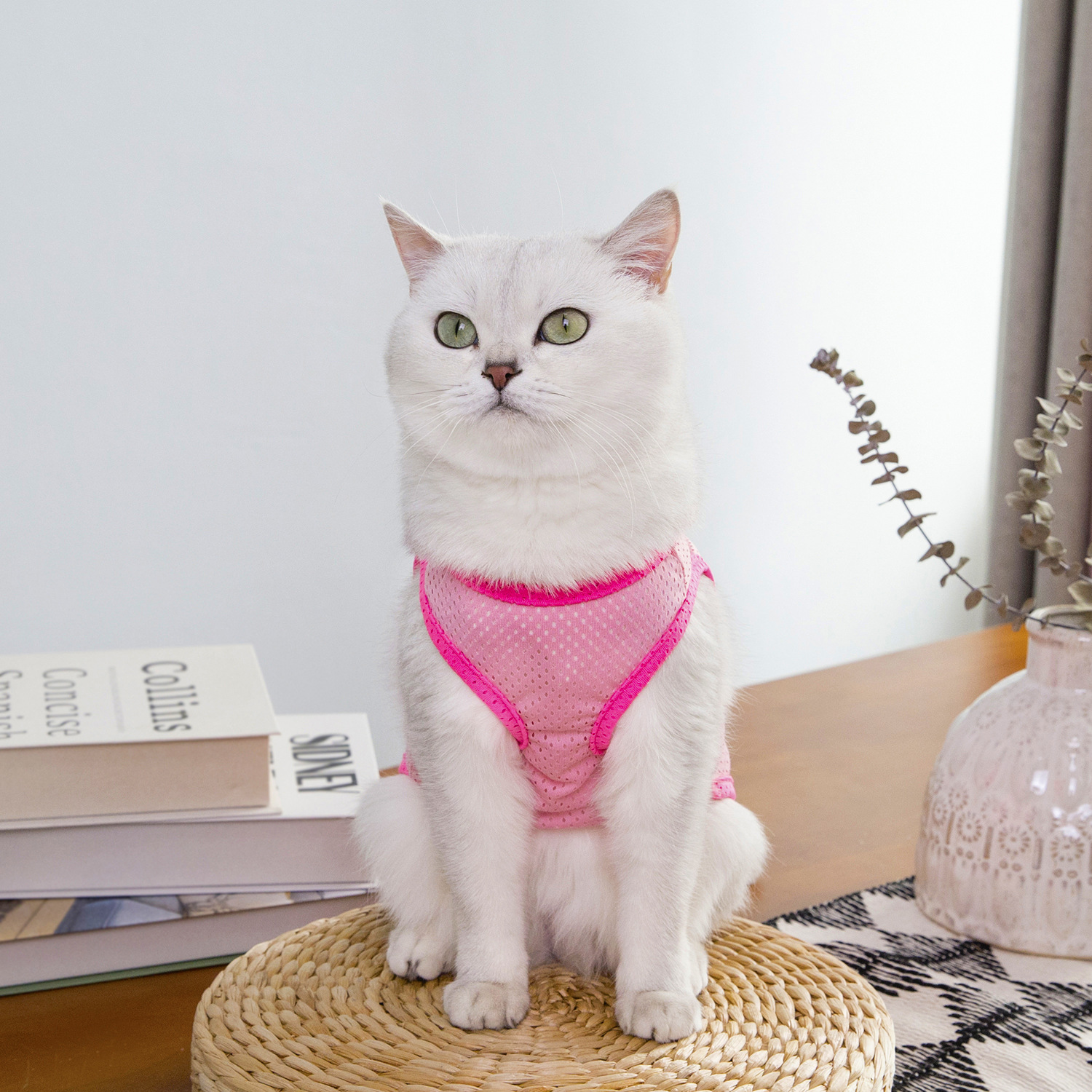 짧은 털을 가진 고양이와 작은 애완동물을 위한 새로운 봄 여름 얇은 애완동물 옷, 통기성이 좋은 메쉬 체크무늬 25개 토끼 메쉬 조끼스토어 가기