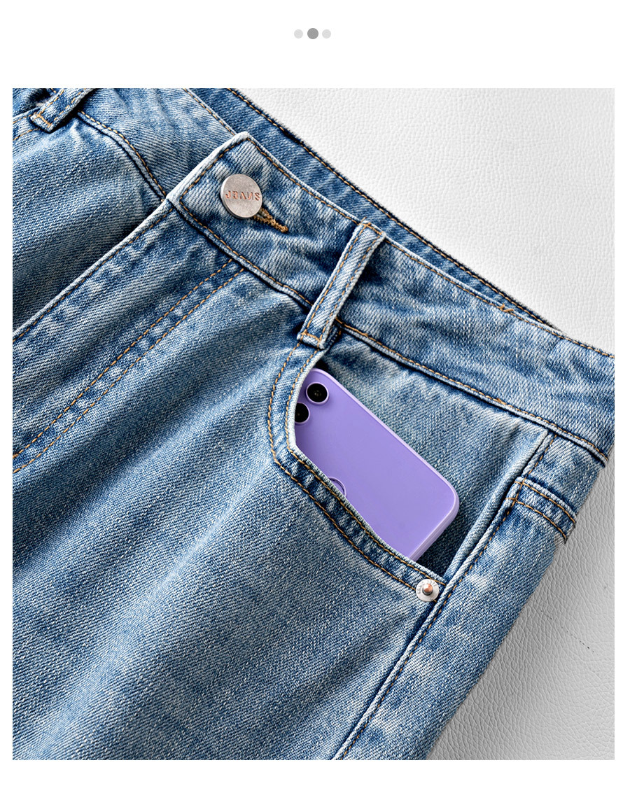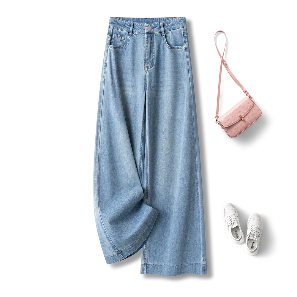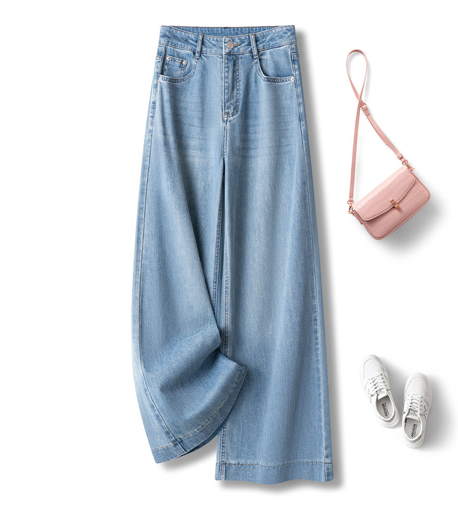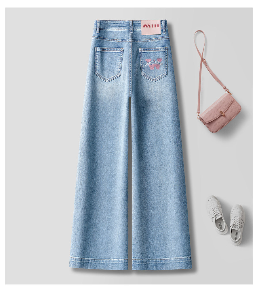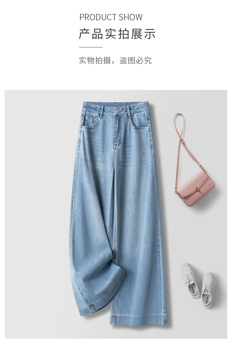 라이트 블루 다목적 대형 다리 고기 청바지 여성 봄과 여름 2025 새로운 높은 허리 느슨한 슬림 넓은 다리 바지스토어 가기