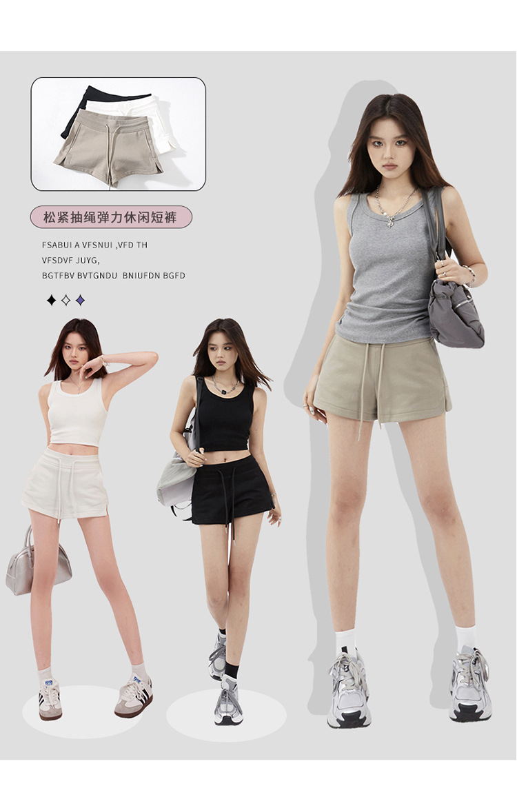 YC & 3 컬러 아메리칸 레트로 스파이스 걸스 루즈 스포츠 바지 사이드 슬릿 드로우 스트링 반바지 조커 캐주얼 바지 여자 여름스토어 가기