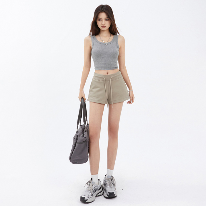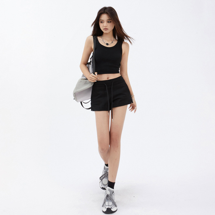 YC & 3 컬러 아메리칸 레트로 스파이스 걸스 루즈 스포츠 바지 사이드 슬릿 드로우 스트링 반바지 조커 캐주얼 바지 여자 여름