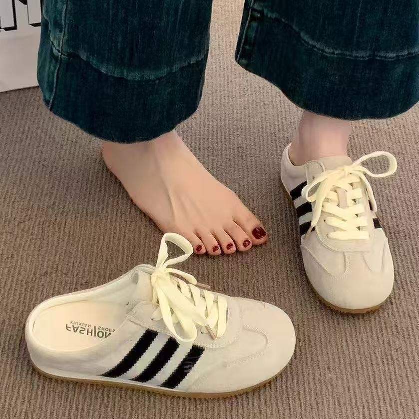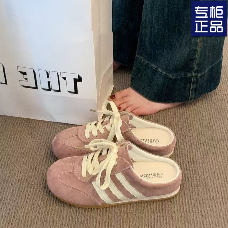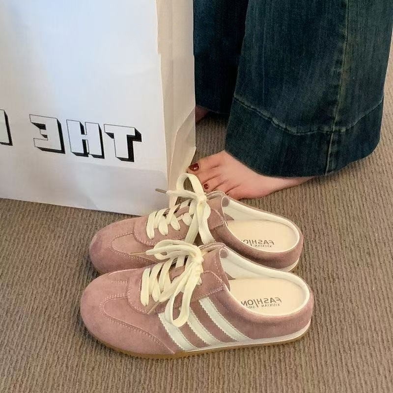 여성용 핑크색 발가락 슬리퍼, 2025년 인터넷 연예인 핫 스타일 패셔너블 캐주얼 레이스업 육군 훈련화, 두꺼운 밑창 반슬리퍼스토어 가기