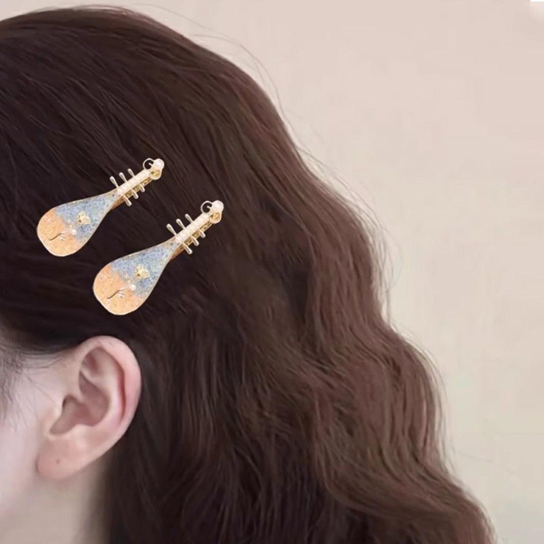 Guofeng 플라워 Pipa 헤어핀 여성 틈새 사이드 클립 뱅 클립 클립 앤티크 헤어핀 헤드웨어 여성 크리에이티브 브로큰 헤어 클립