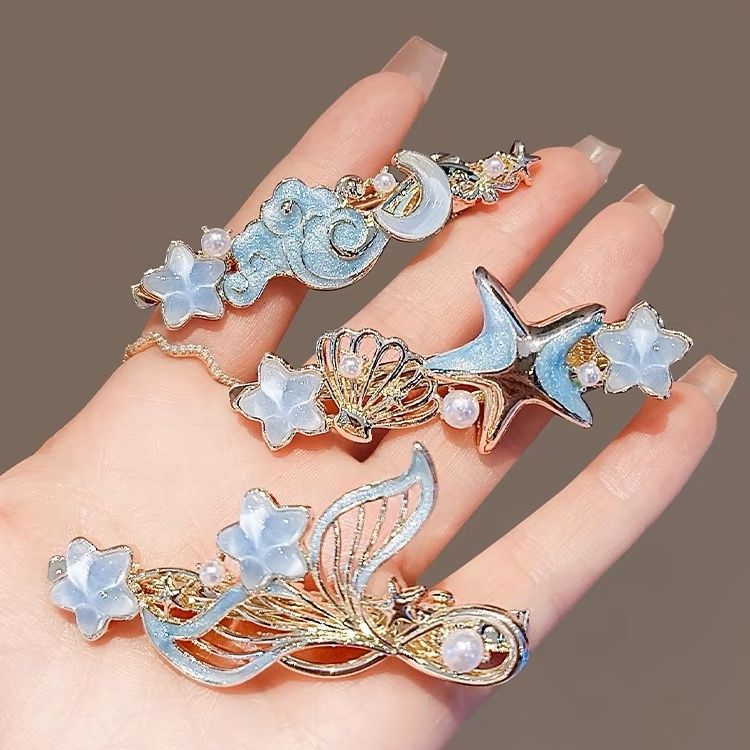 • 조개 껍데기 물고기 꼬리 진주 머리핀