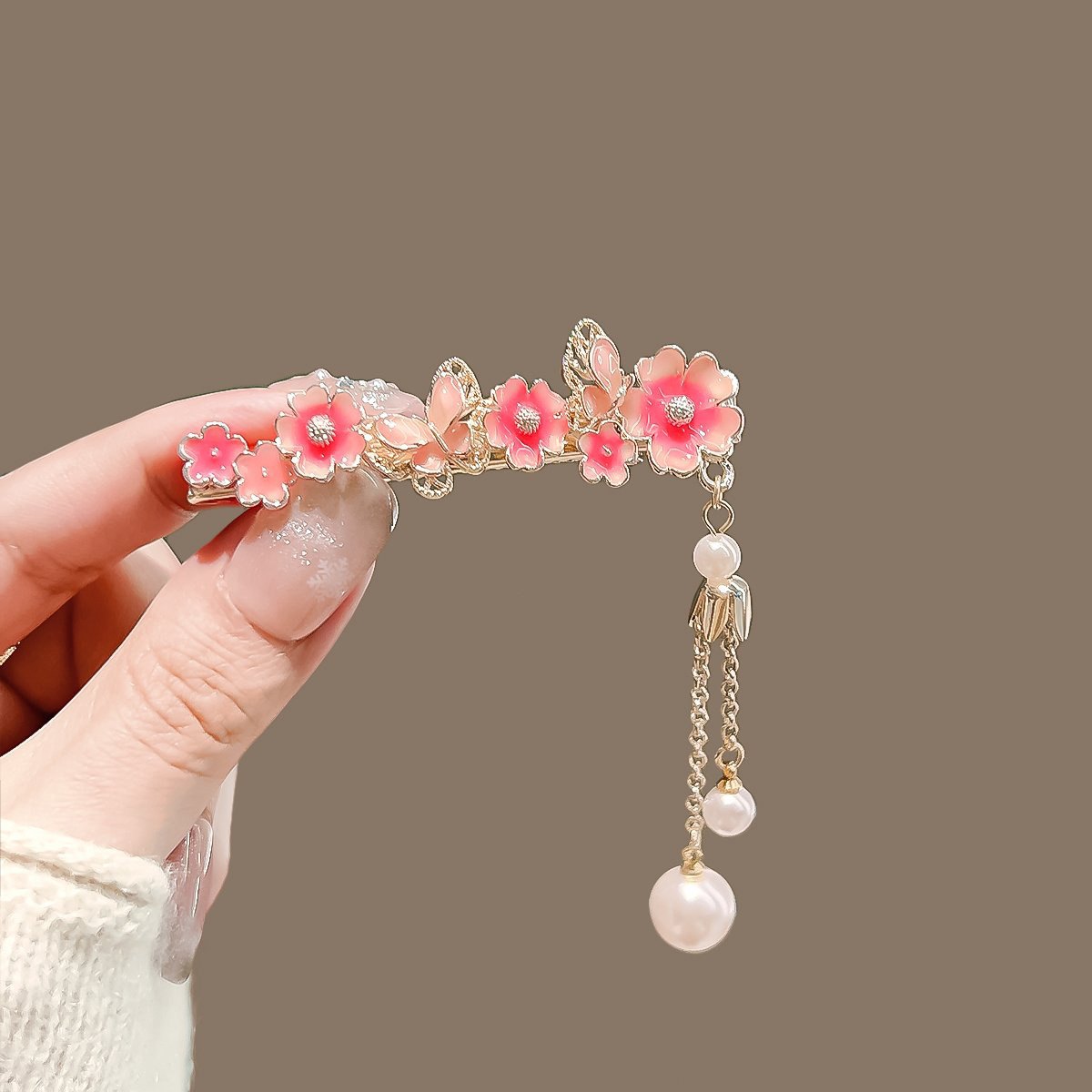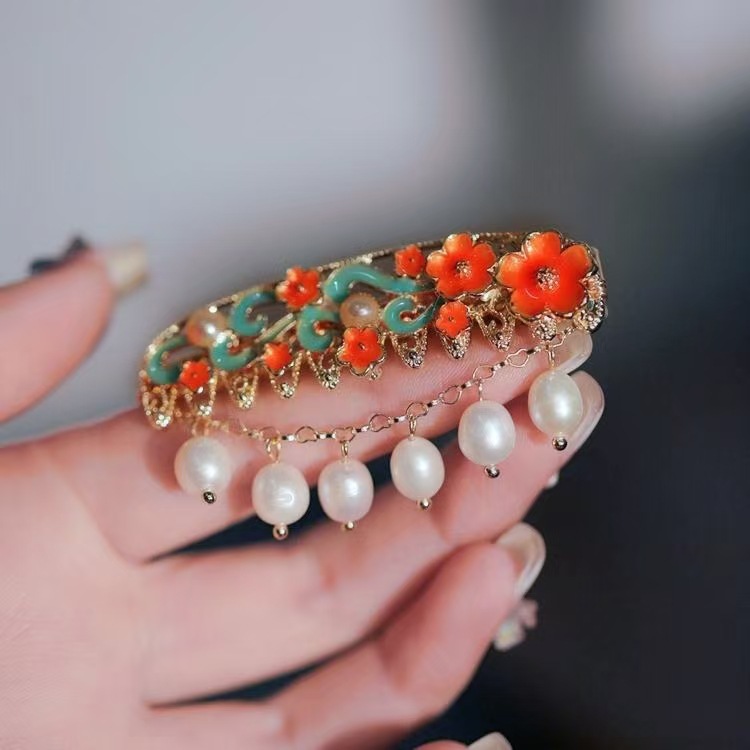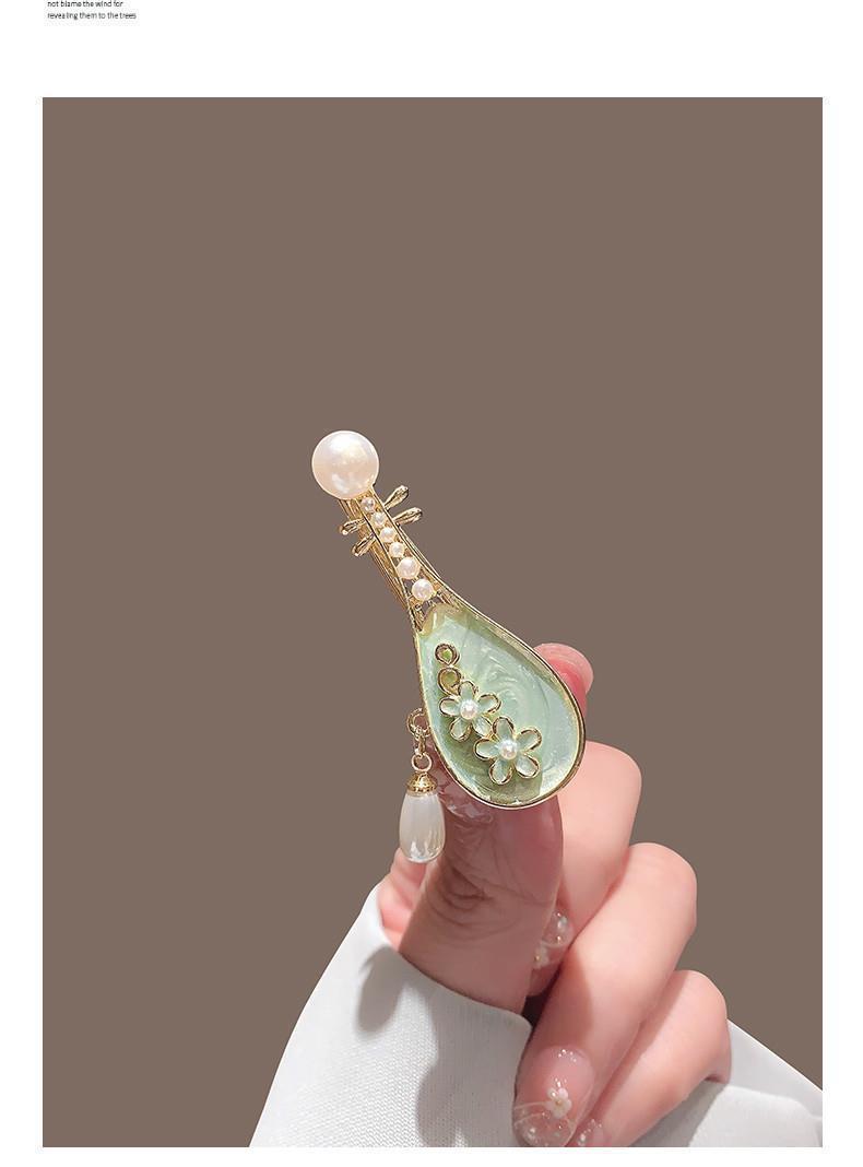 • 꽃 진주 비파 머리핀