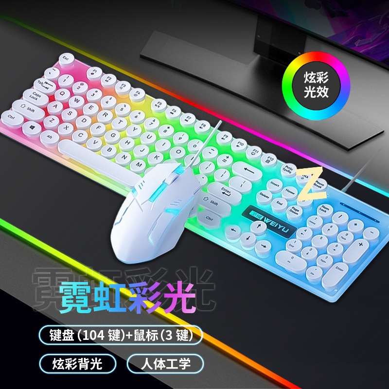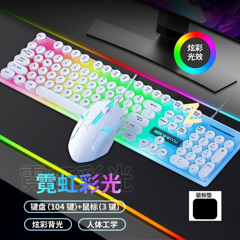 • 없음 - 흰색 아이스 블루 라이트 [키보드 + 마우스 + 마우스 패드] - 없음 - 104 키