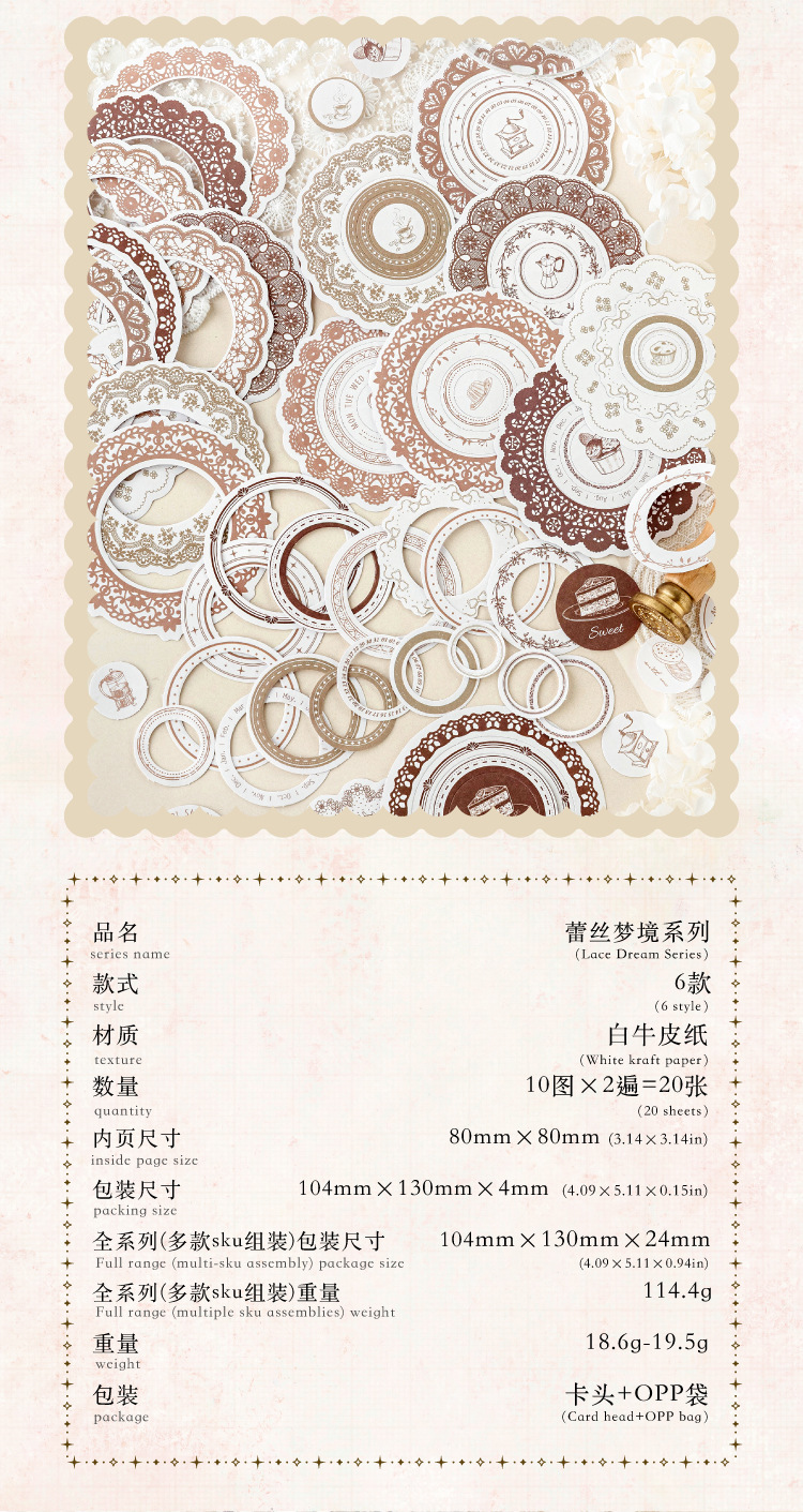 설탕시 다이 컷 스티커 가방 레이스 드림 시리즈 복고풍 레이스 테두리 손 계정 DIY 소재 장식 스티커스토어 가기
