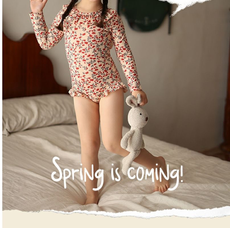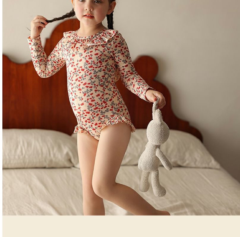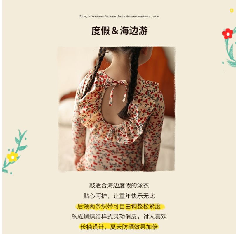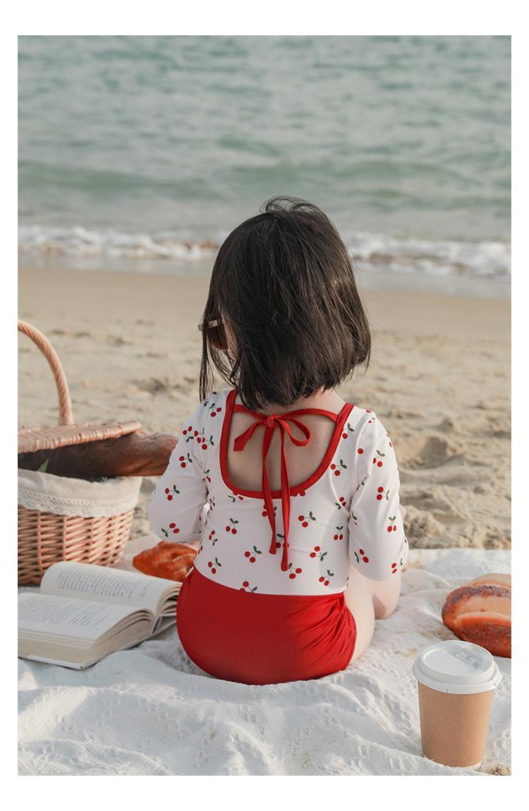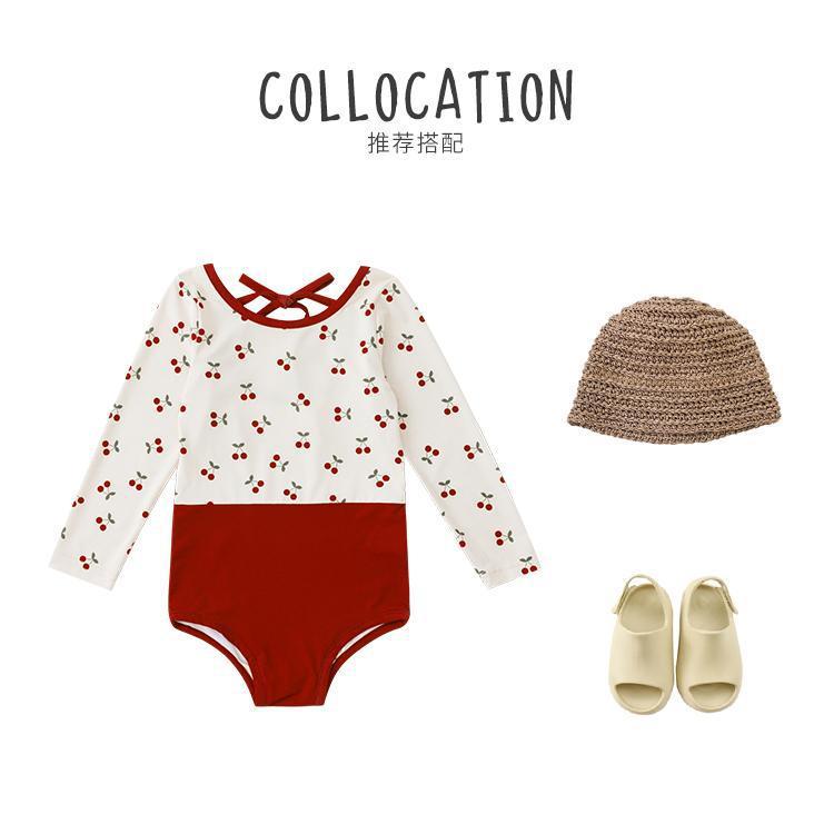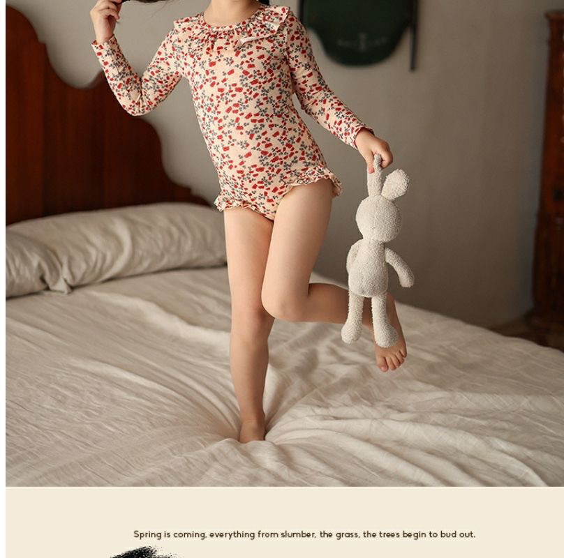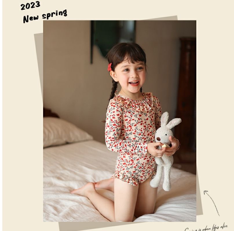 • 붉은색 꽃무늬 긴팔 수영복