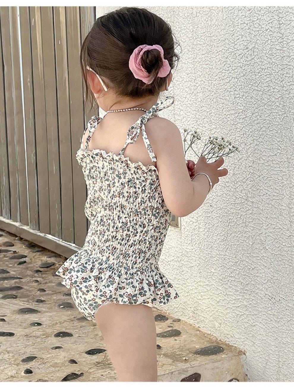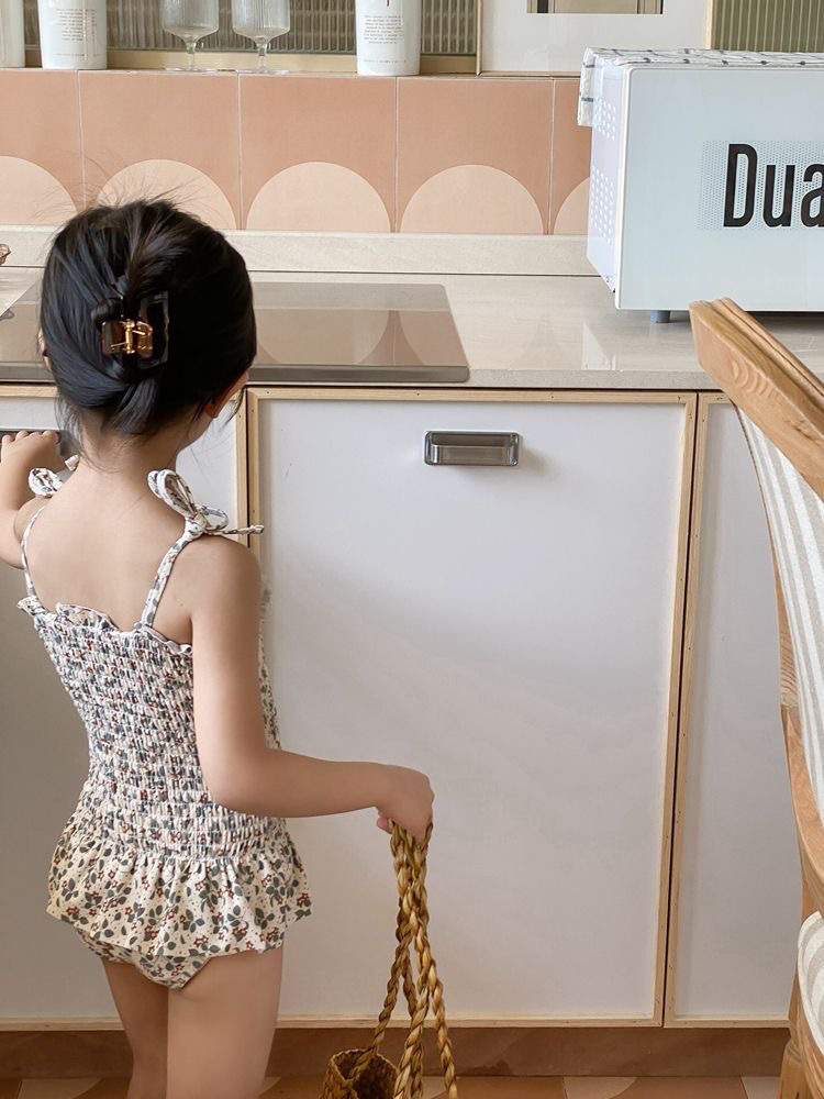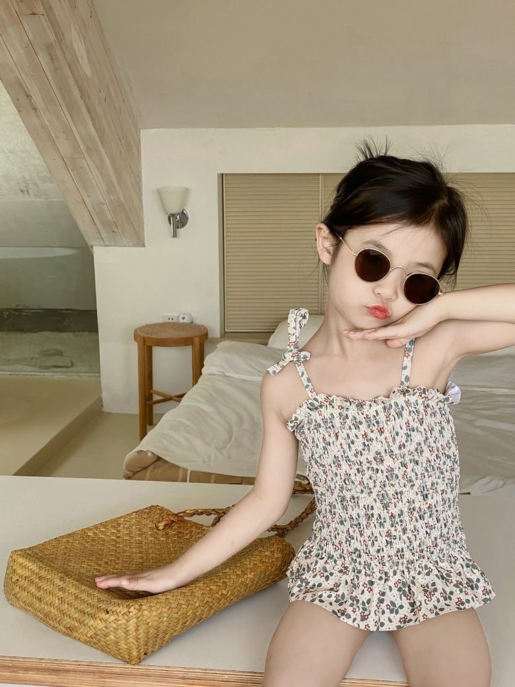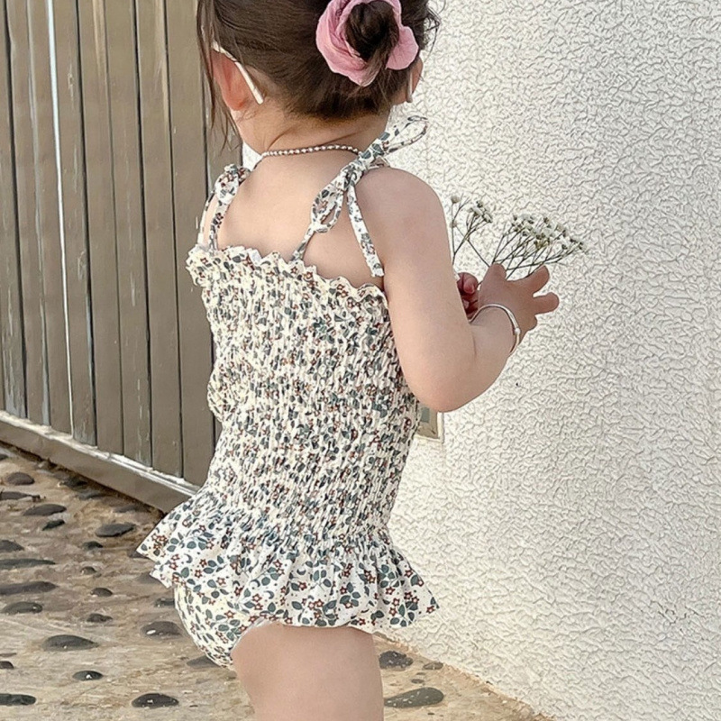 • 흰색 꽃무늬 수영복 멜빵
