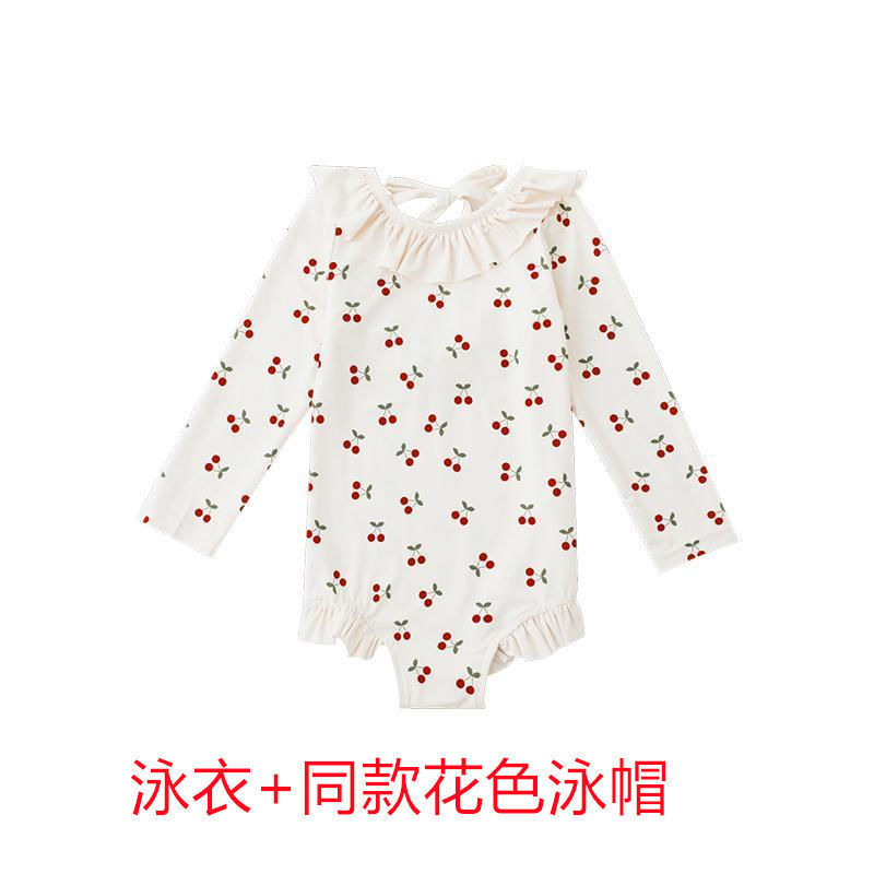 • 붉은색 꽃무늬 긴팔 수영복 + 수영모