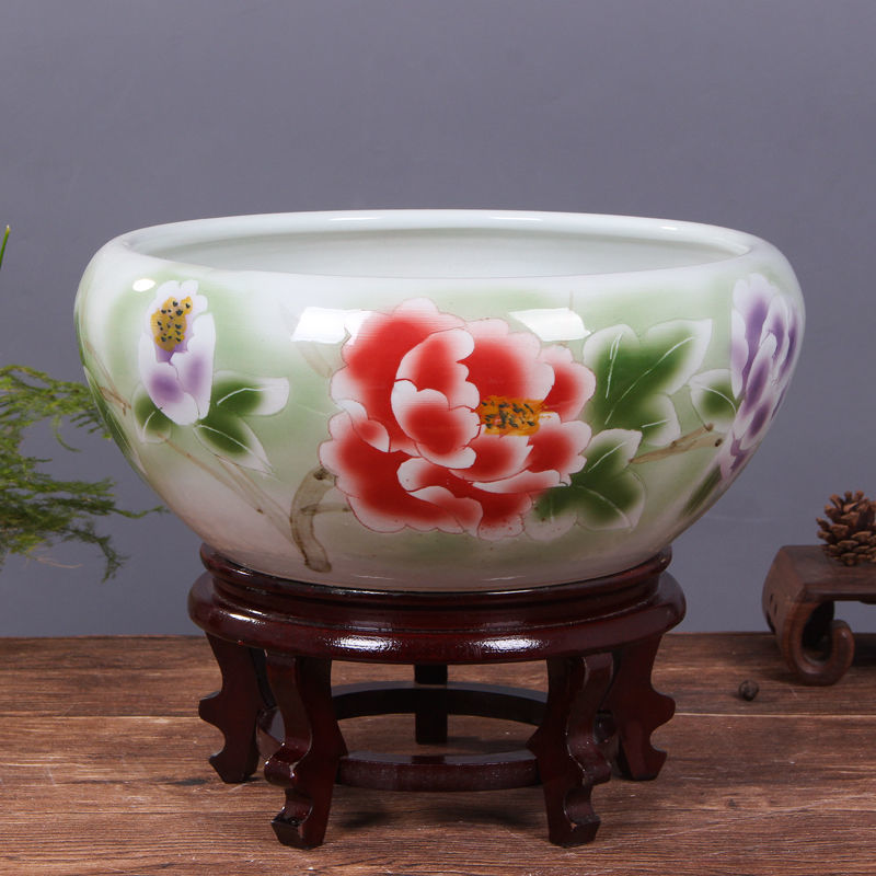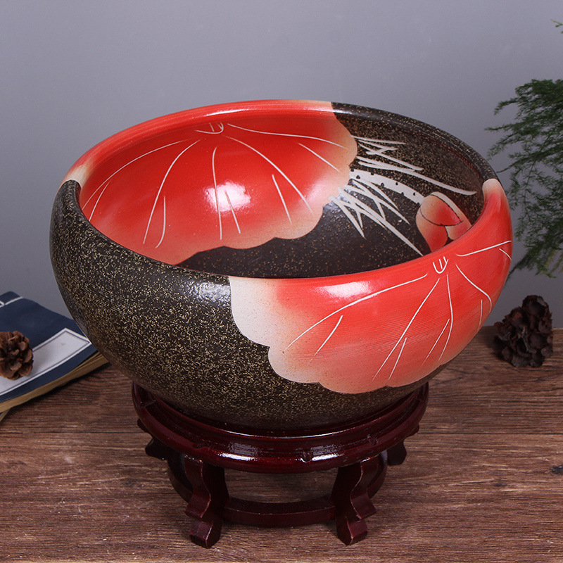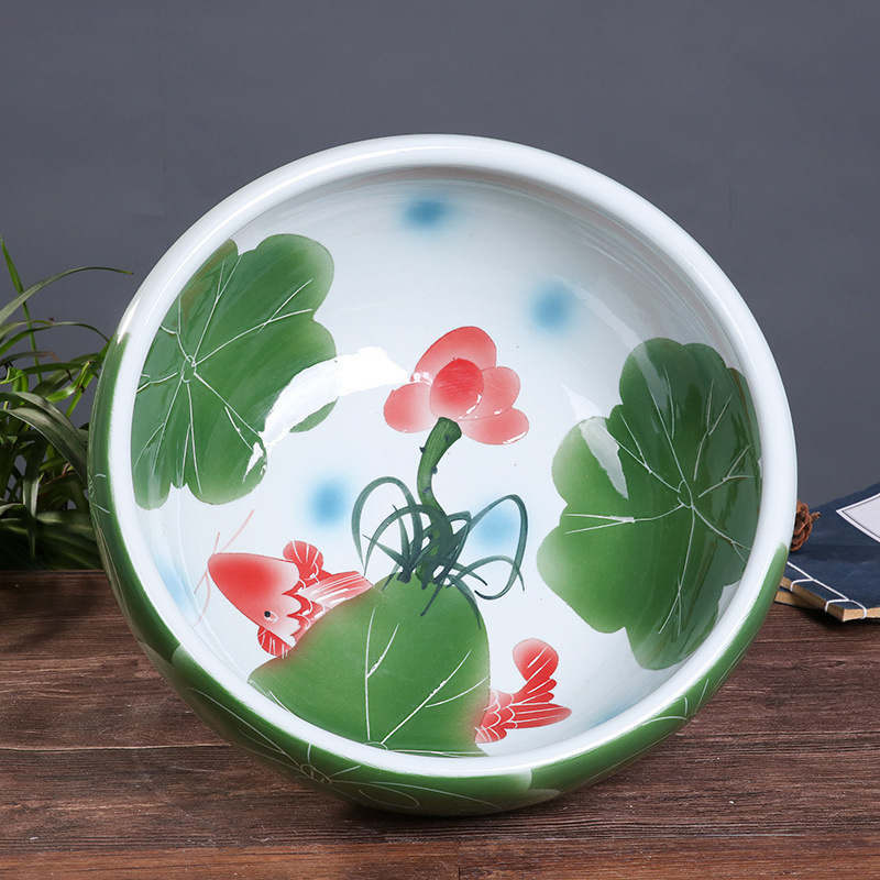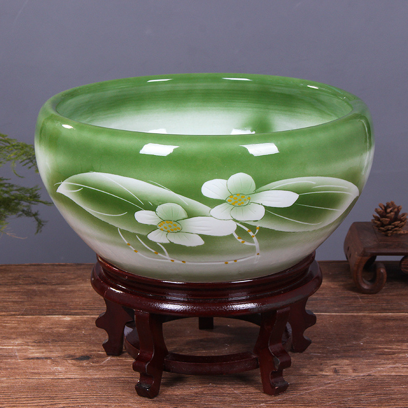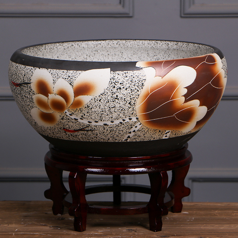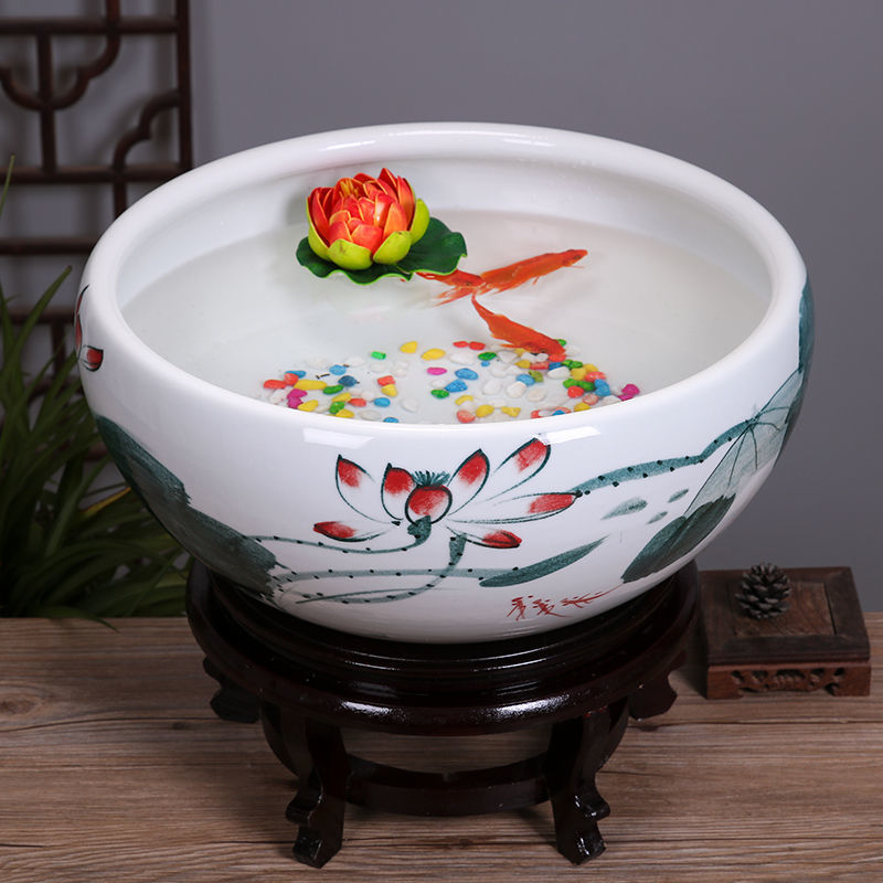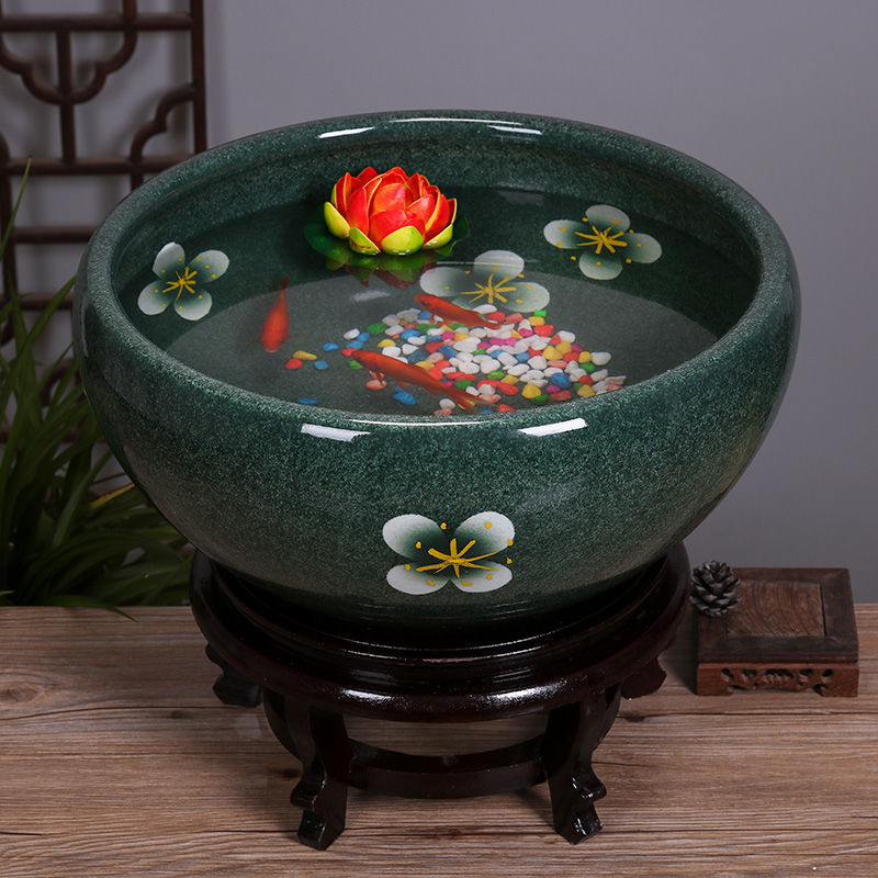 세라믹 수조, 거실, 소형 가정용 데스크탑, 고대 생태학적 물고기 수조, 수련 수조, 백색 메스 물고기 및 거북이 수조