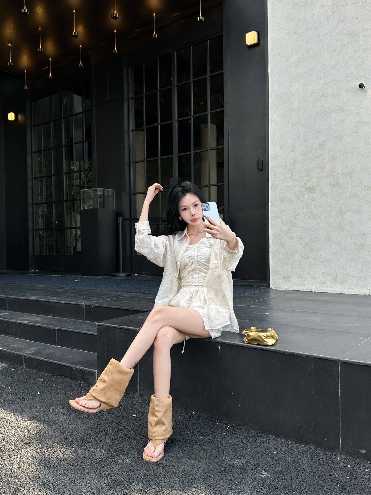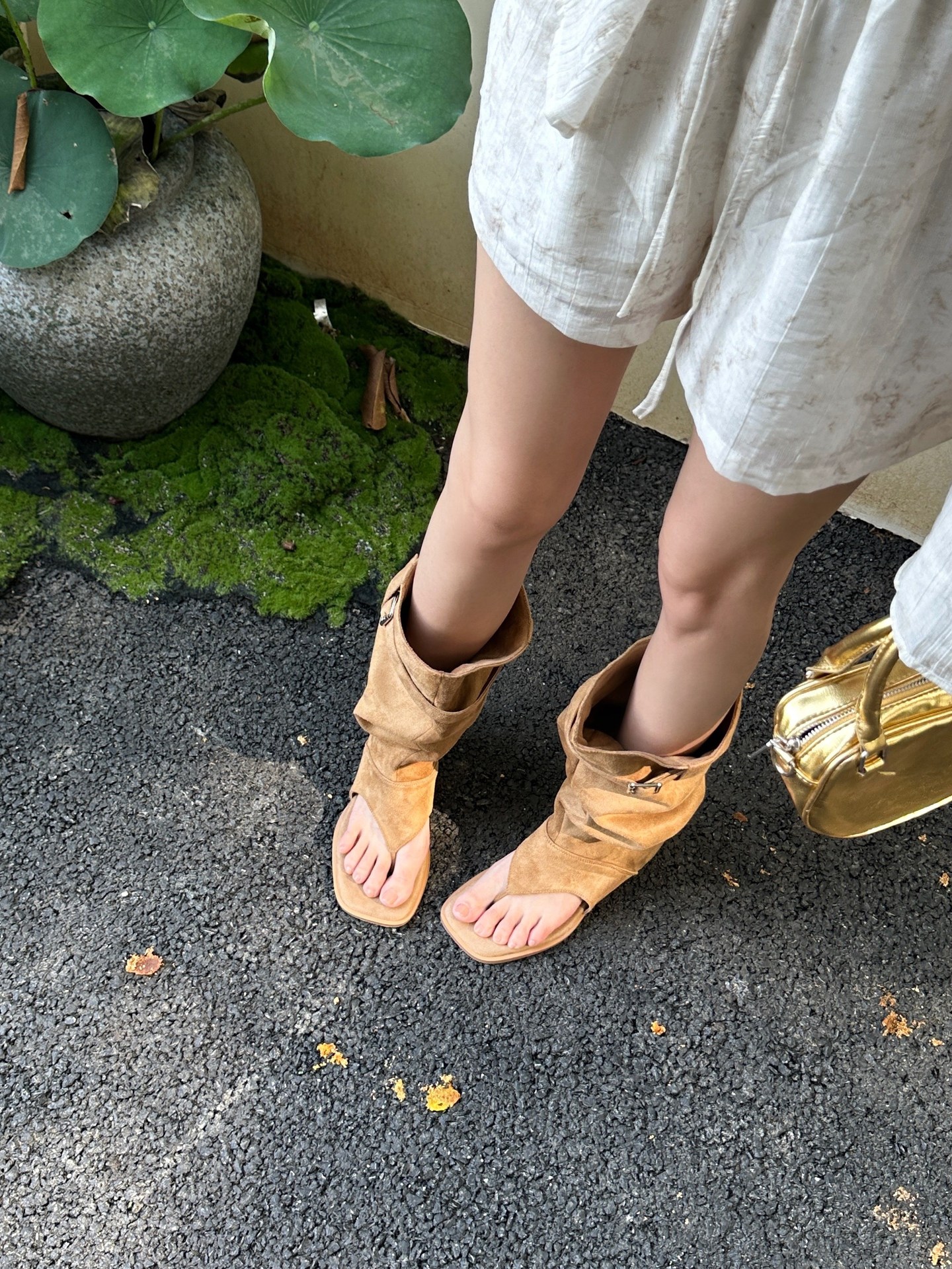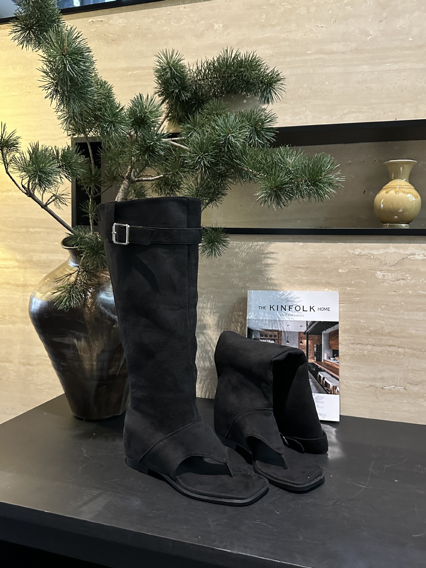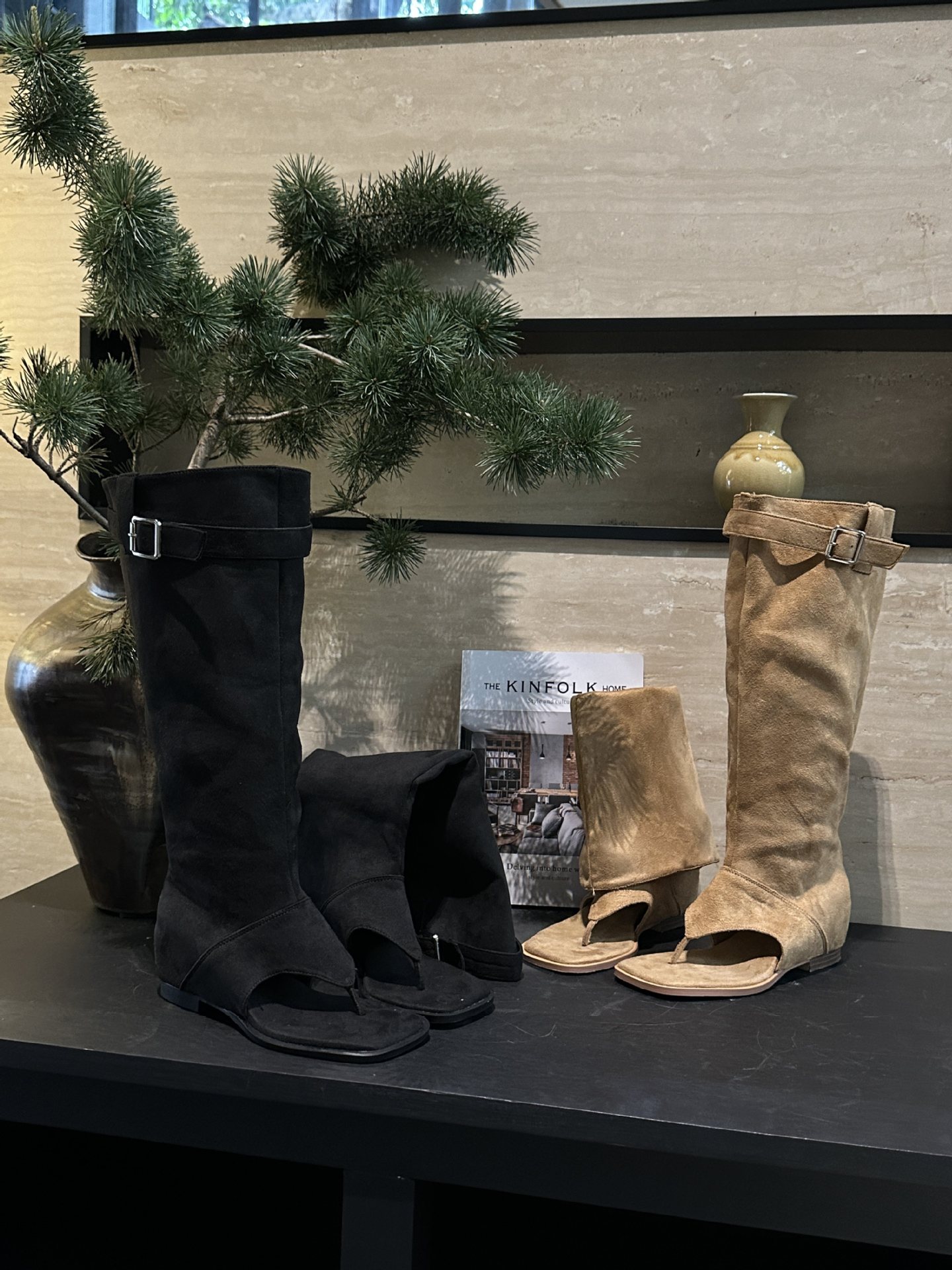 투웨어 헤링본 클램프-발가락 스웨이드 스택 부츠 웨스턴 데님 핫 걸 바지 롱 부츠 여성용 스키니 무릎 스택 부츠스토어 가기