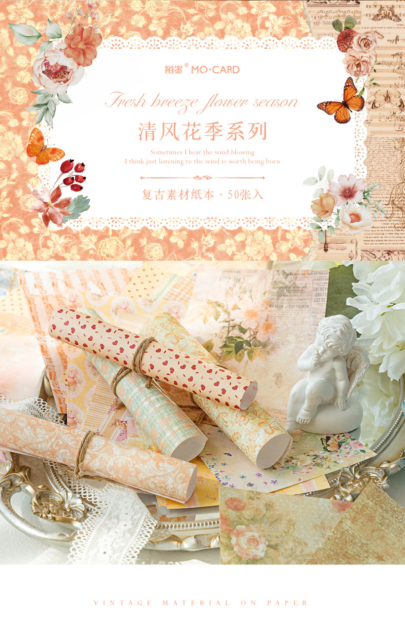 모 잉크 흰색 크래프트 종이 소재 종이 시원한 산들 꽃 시즌 시리즈 50 에 빛 복고풍 기본 콜라주 6 옵션스토어 가기
