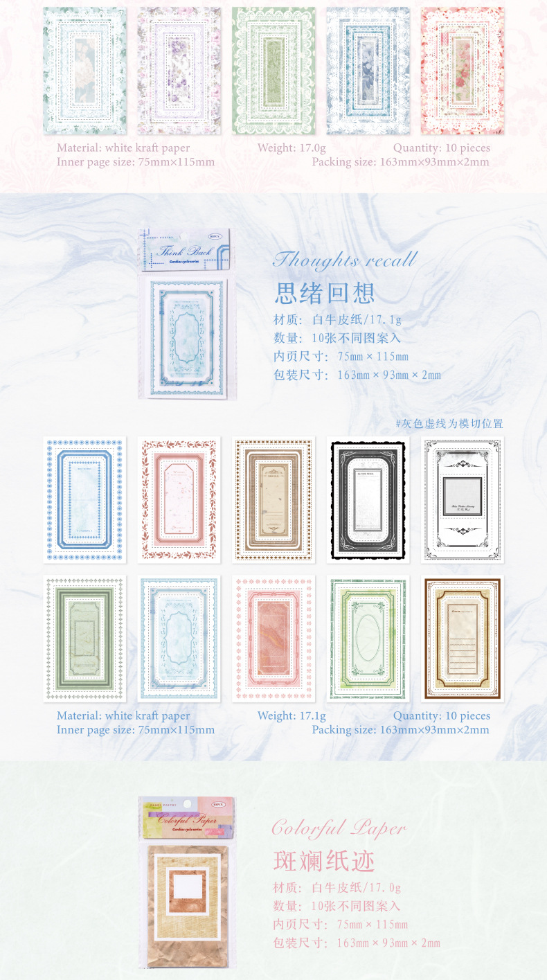 설탕시 백색 크라프트지 다이컷 스티커 - 심장 박동 시리즈, 추억 등 6가지 디자인 중 10개 선택