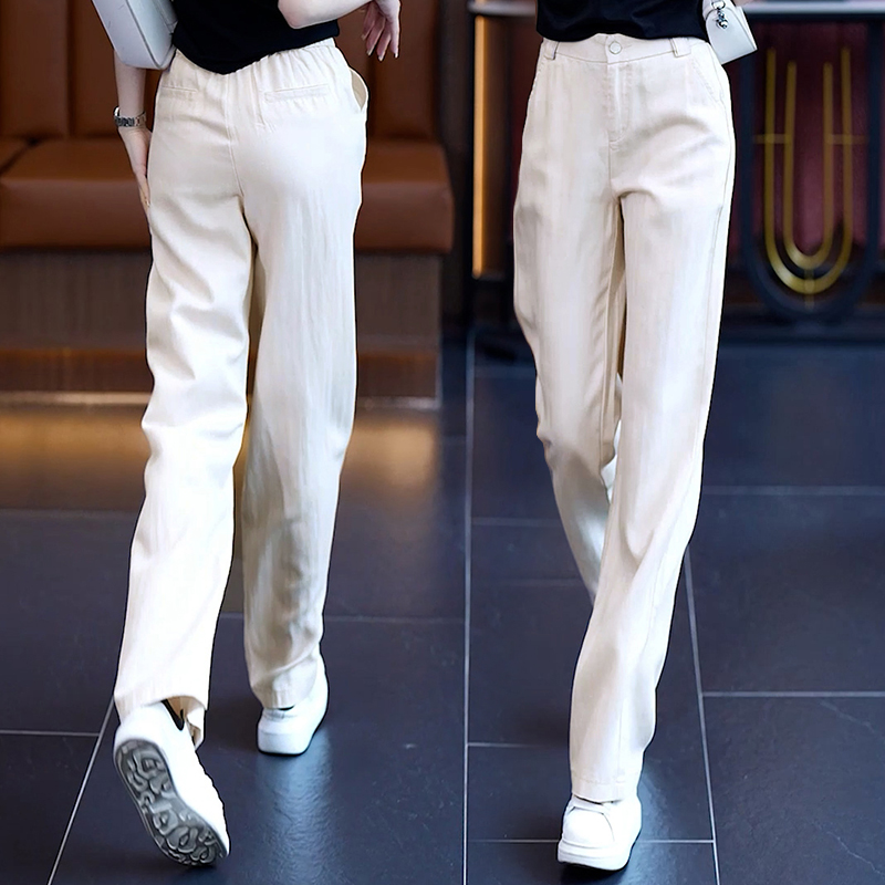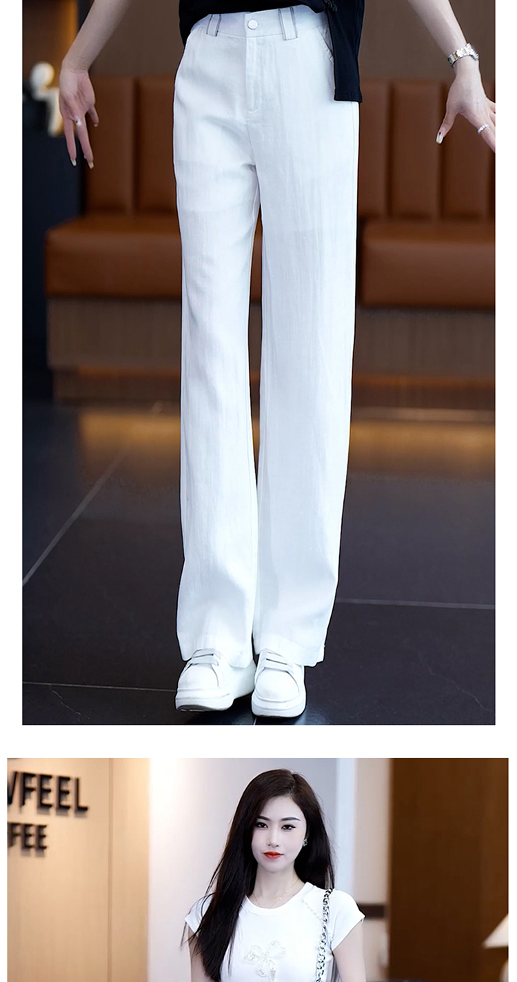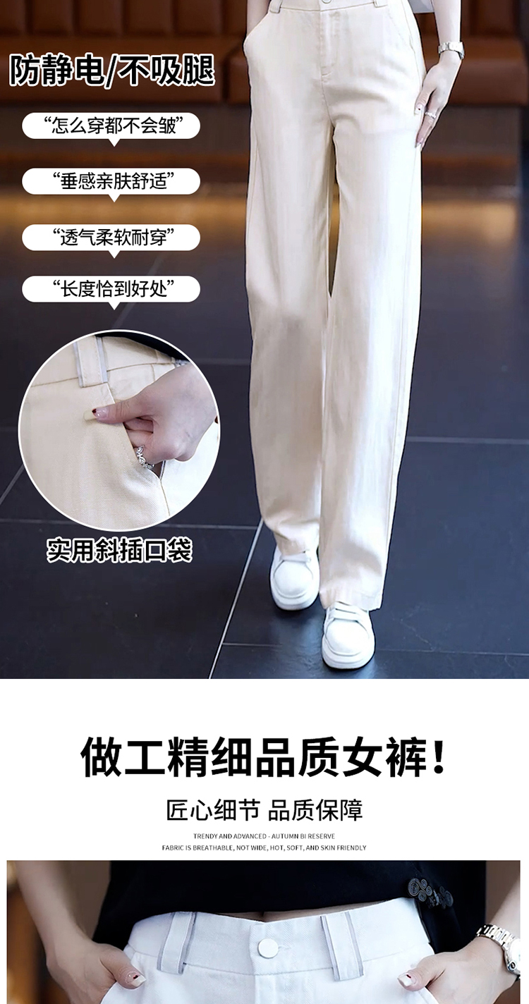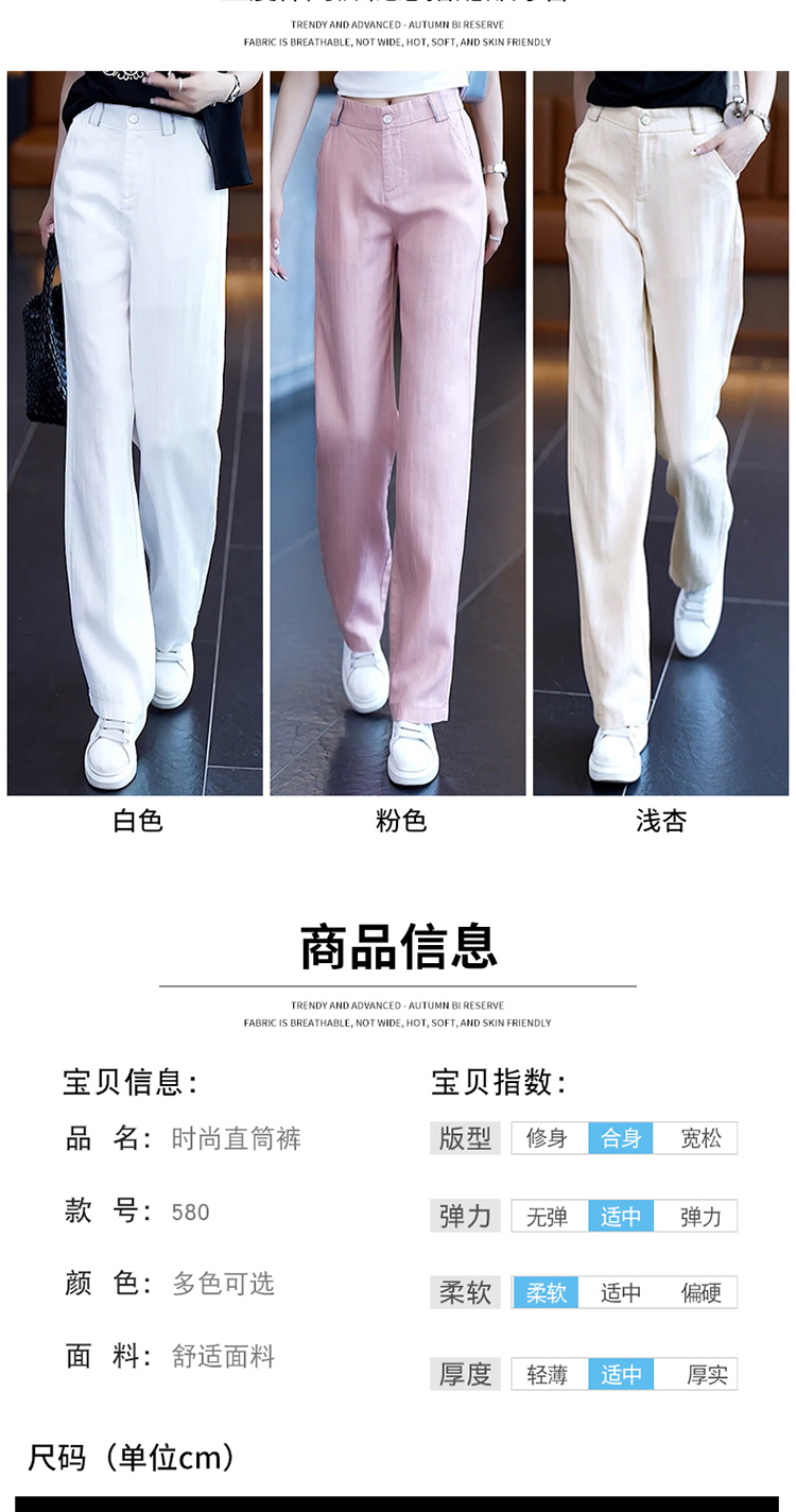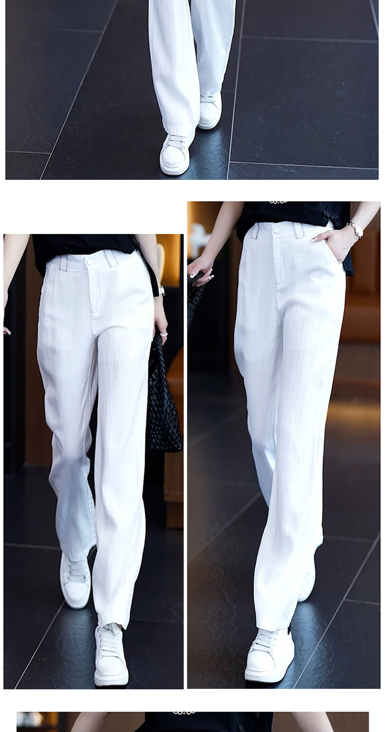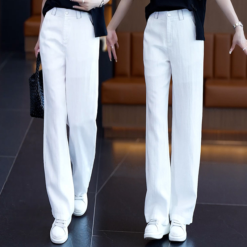 패션 자른 스트레이트 다리 바지 여성 2025 년 여름 새로운 높은 허리 슬리밍 느슨한 캐주얼 우아한 좁은 넓은 다리 바지 유행스토어 가기