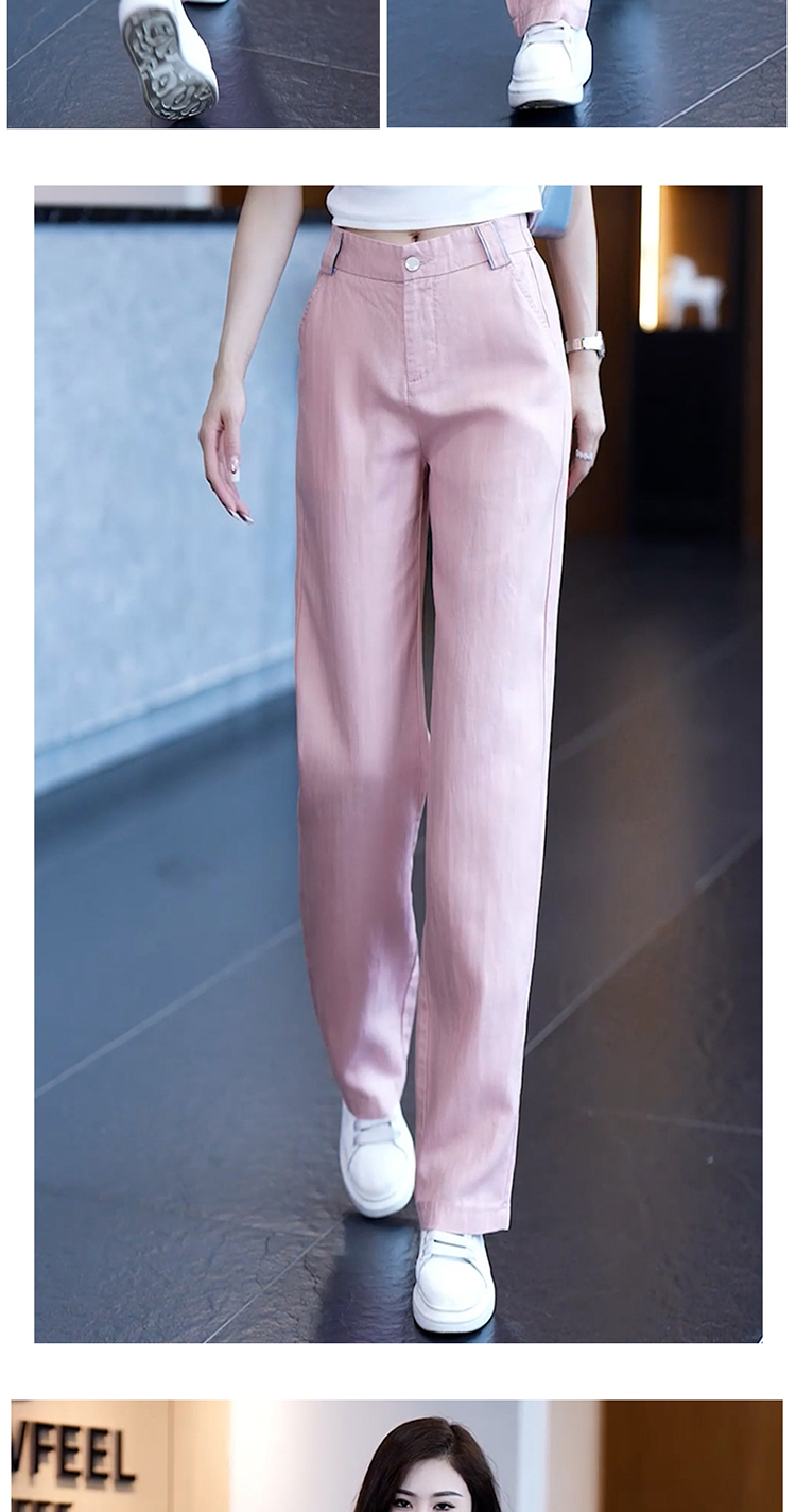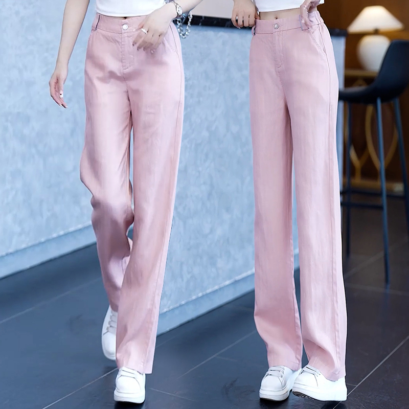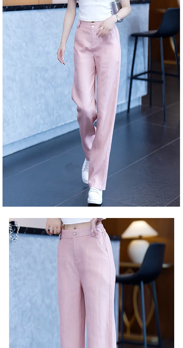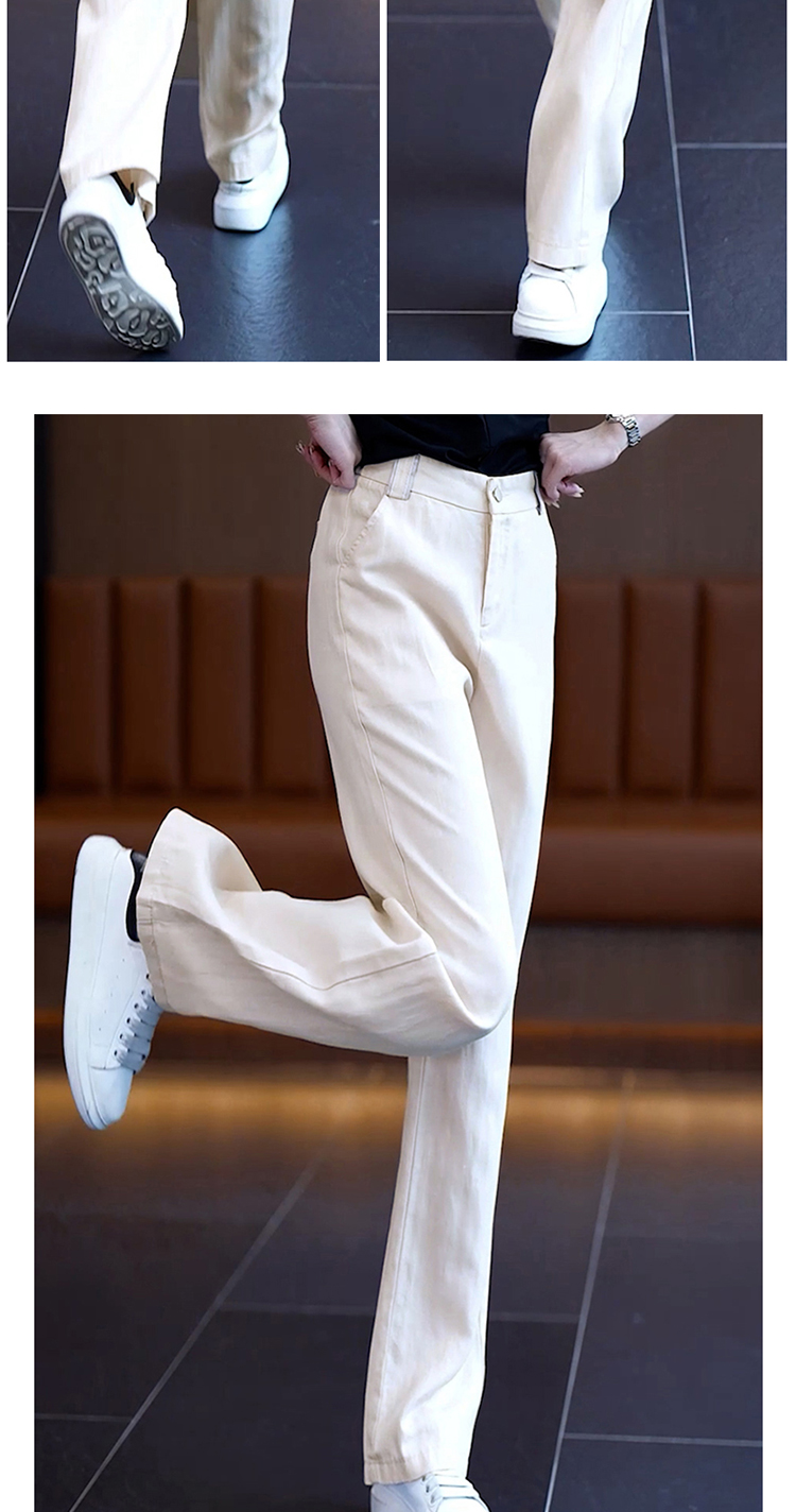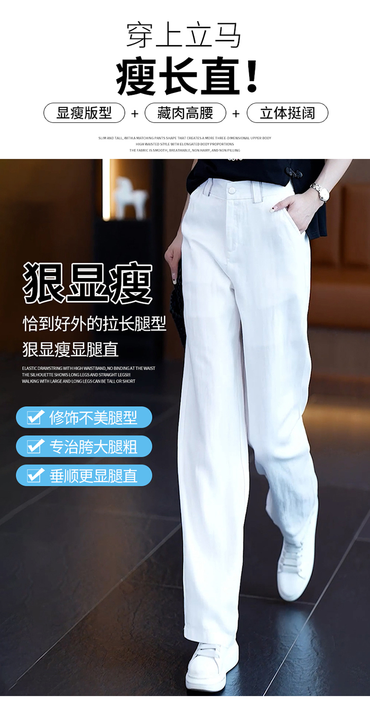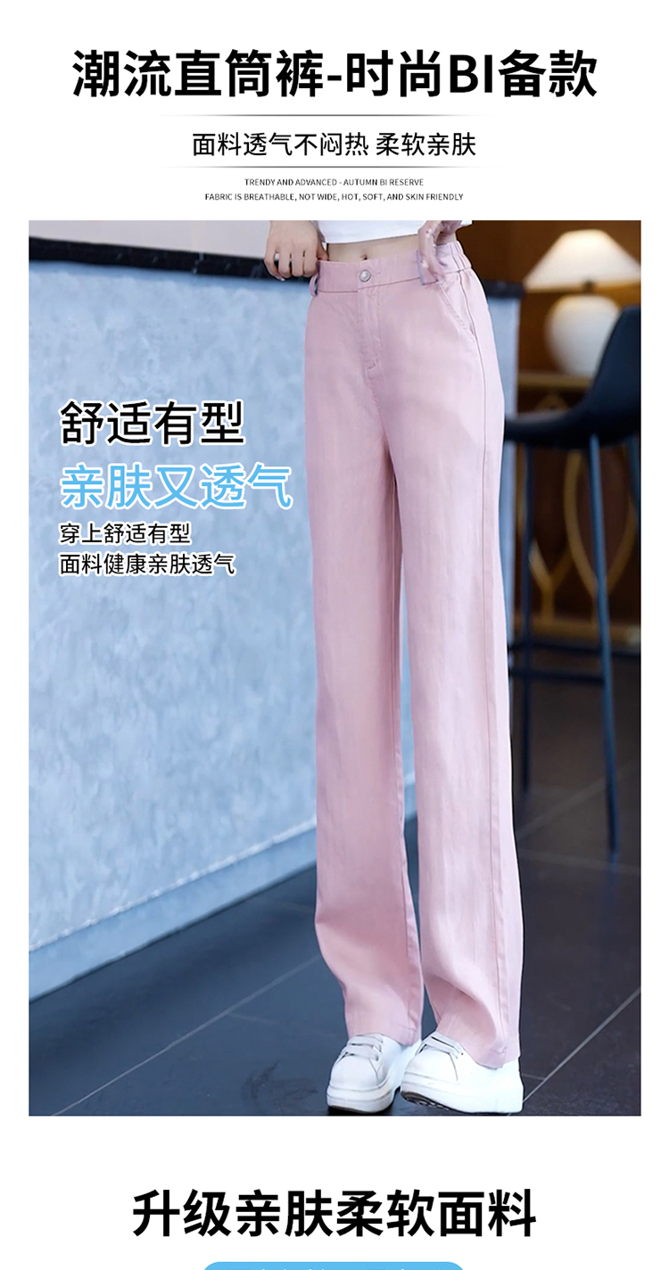 패션 자른 스트레이트 다리 바지 여성 2025 년 여름 새로운 높은 허리 슬리밍 느슨한 캐주얼 우아한 좁은 넓은 다리 바지 유행스토어 가기