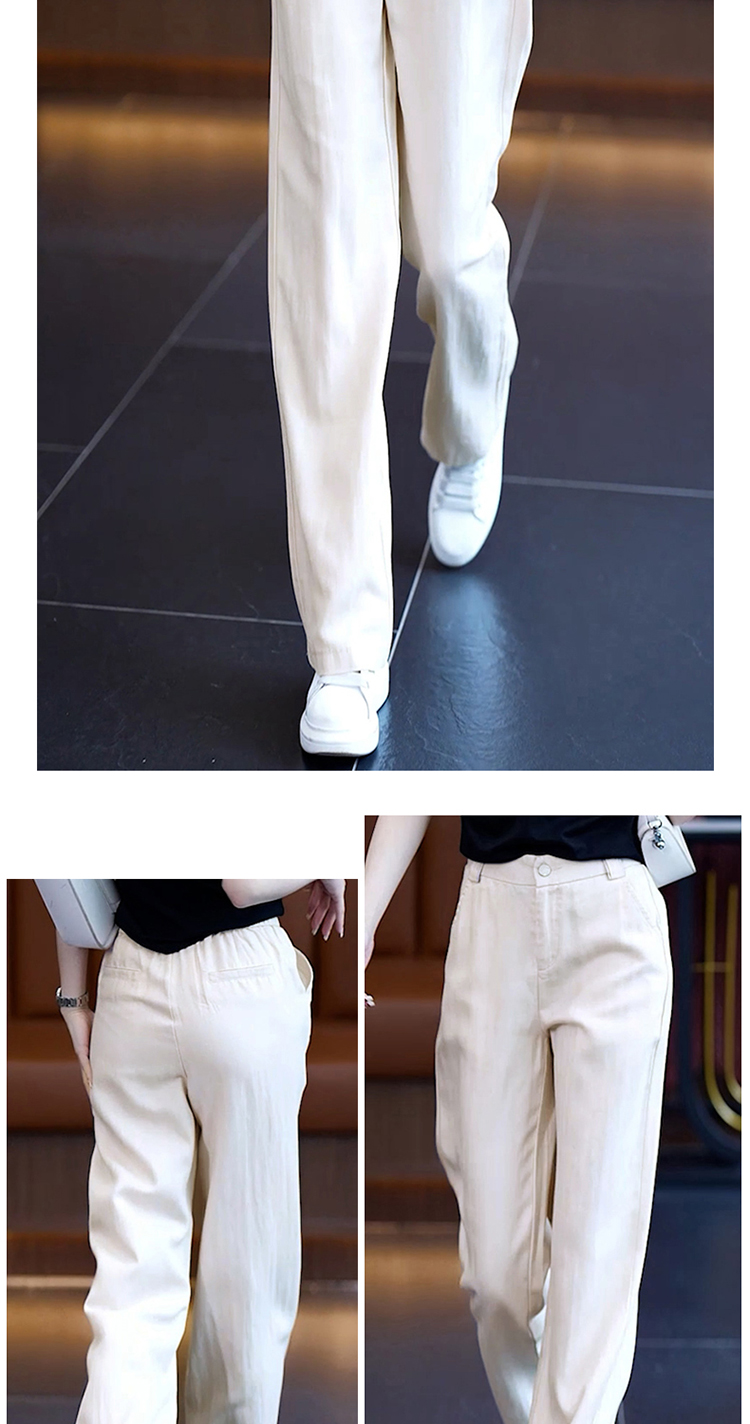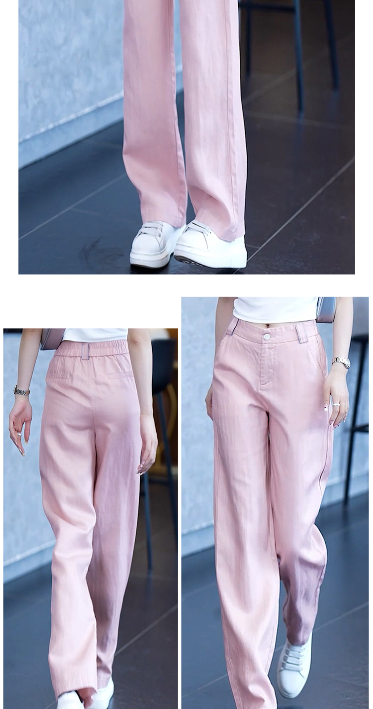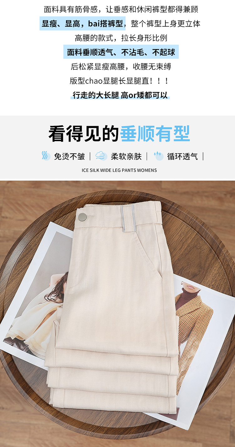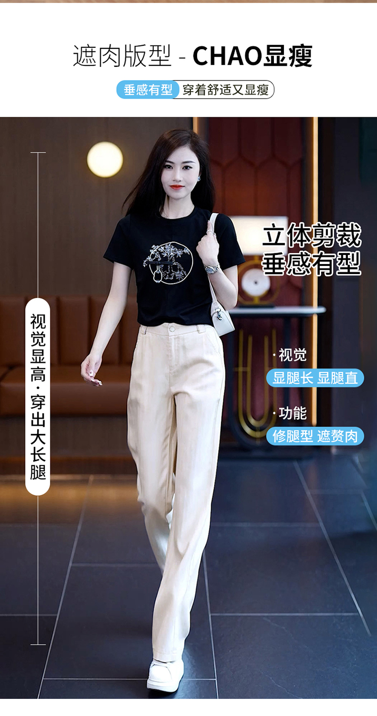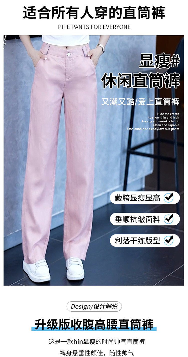 패션 자른 스트레이트 다리 바지 여성 2025 년 여름 새로운 높은 허리 슬리밍 느슨한 캐주얼 우아한 좁은 넓은 다리 바지 유행스토어 가기