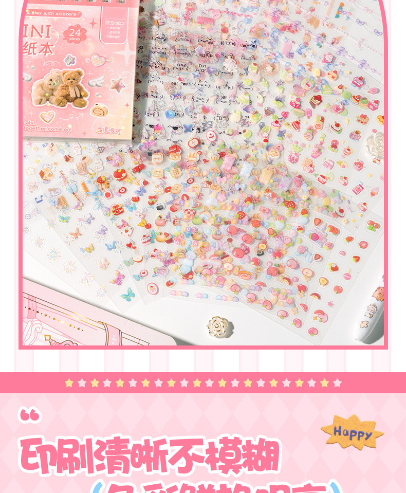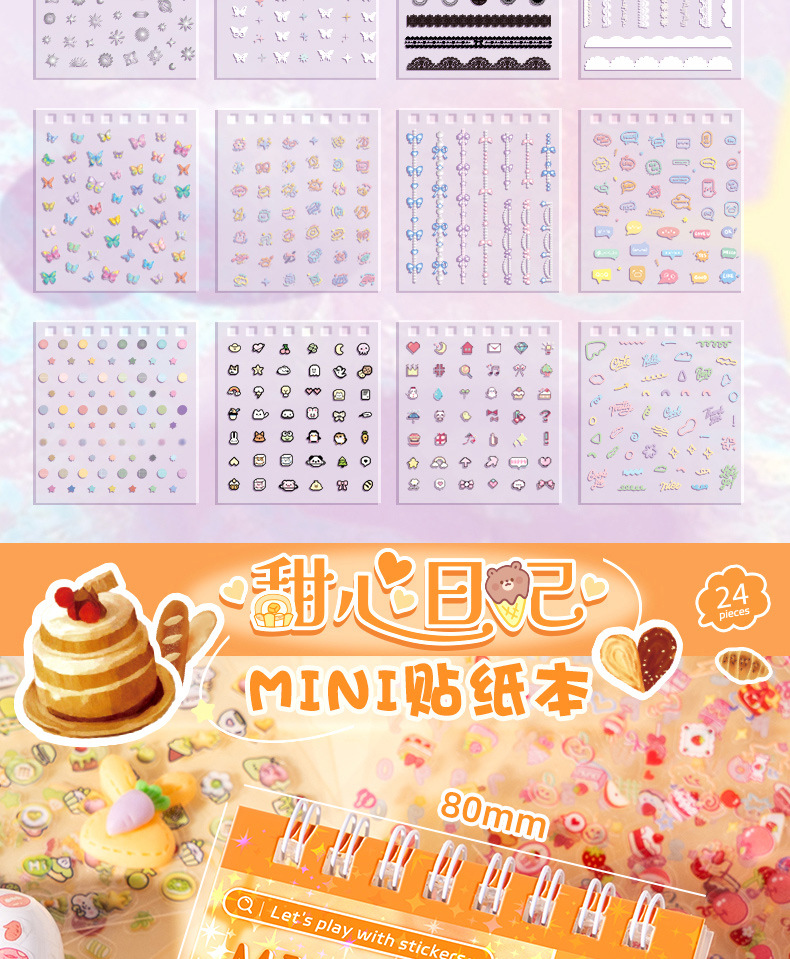 • Xingmeng Sweet Fun [24 장] 스티커 북 및 무료 핀셋