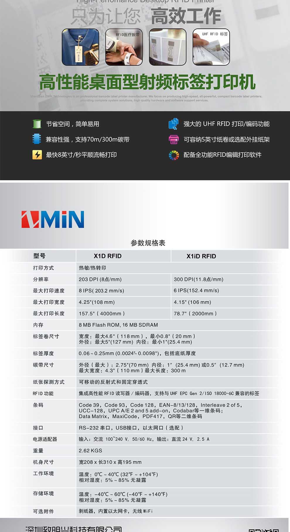 ZMiN X1iD RFID UHF 고정 자산 RFID 라벨 프린터