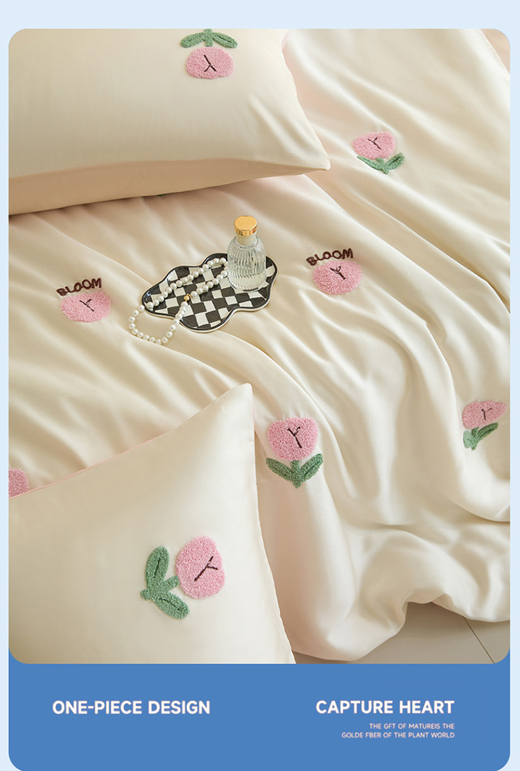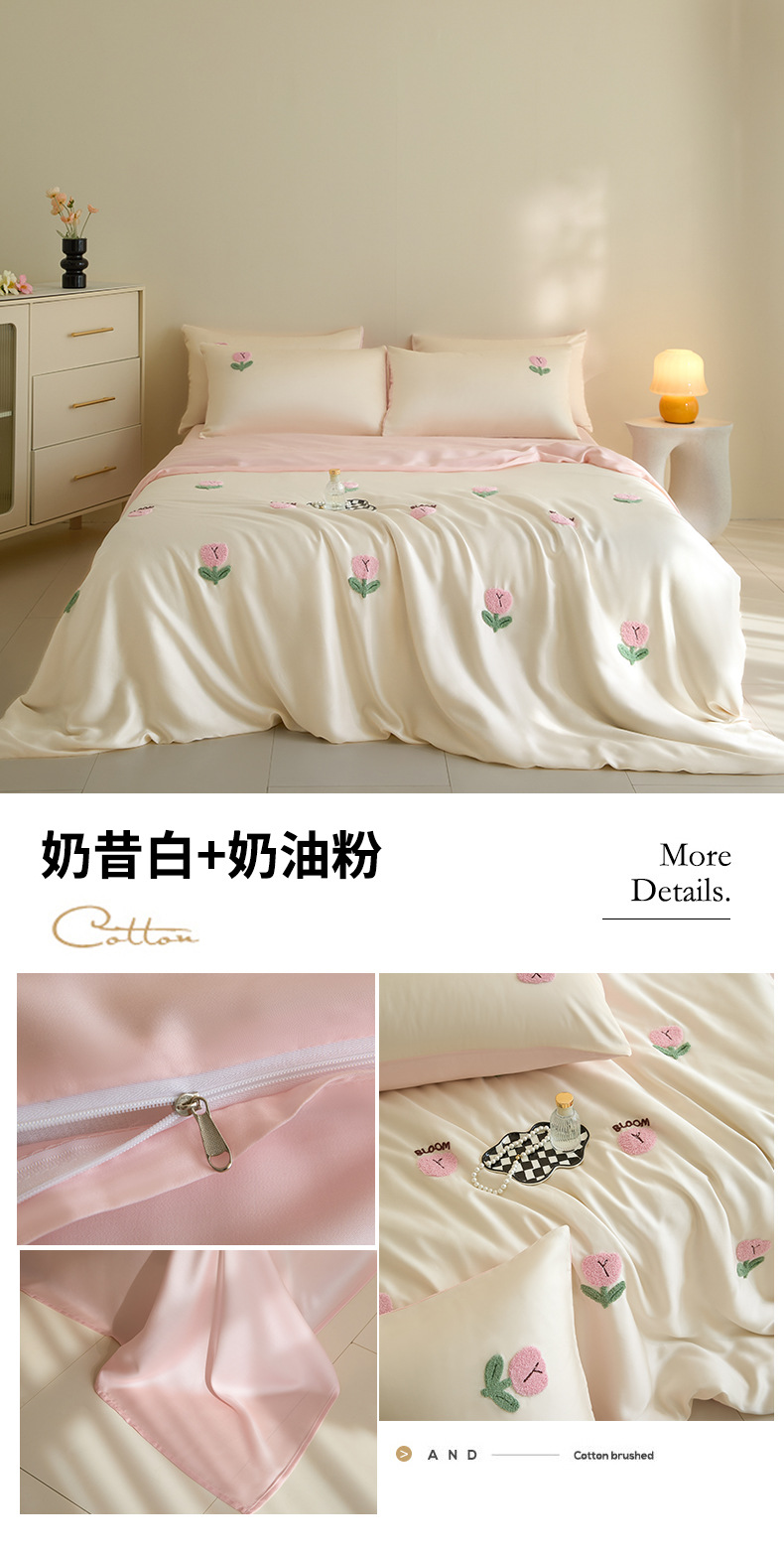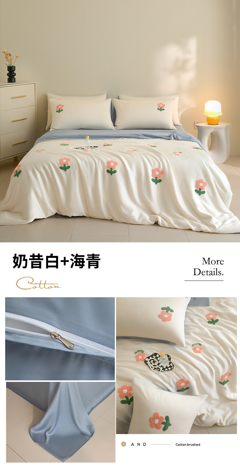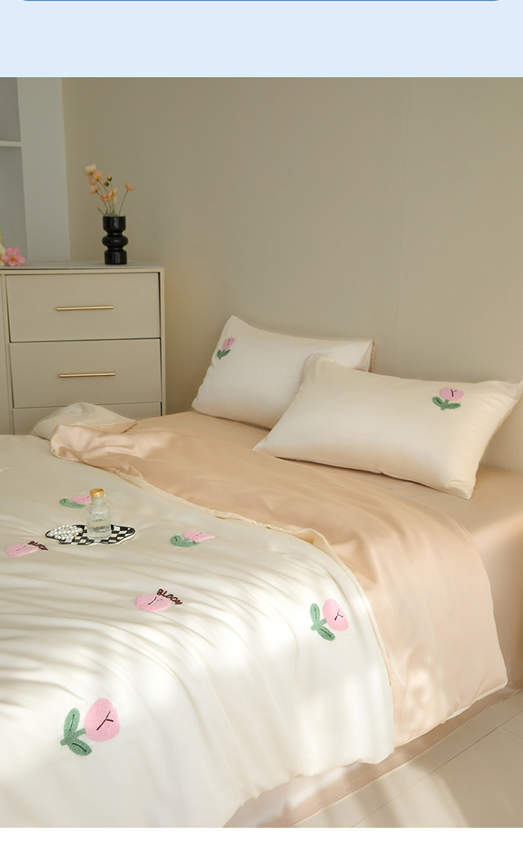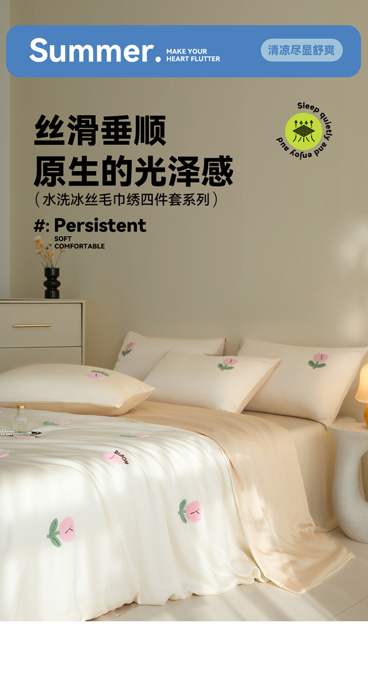워시드 아이스 실크 수건 자수 4종 세트 시원한 에어컨 이불 커버 피부 친화적 통기성 세탁기 사용 가능 침구 세트 도매스토어 가기