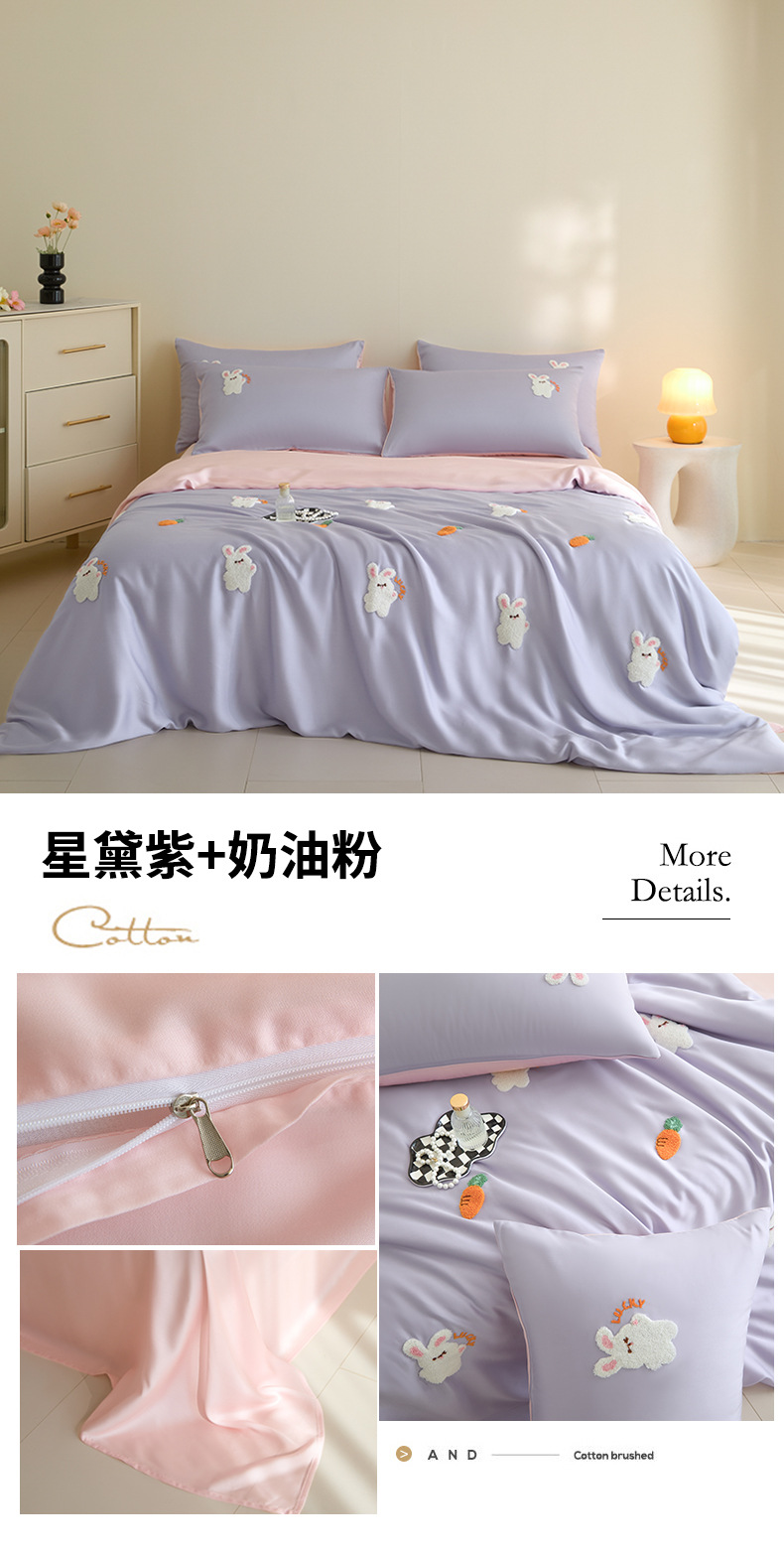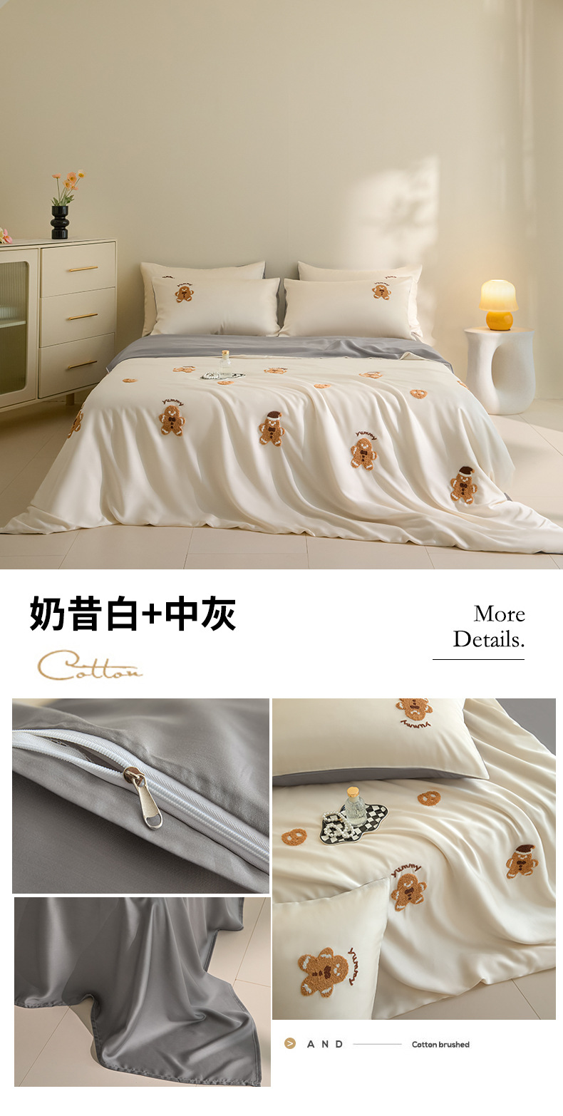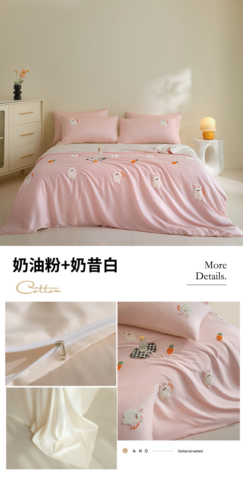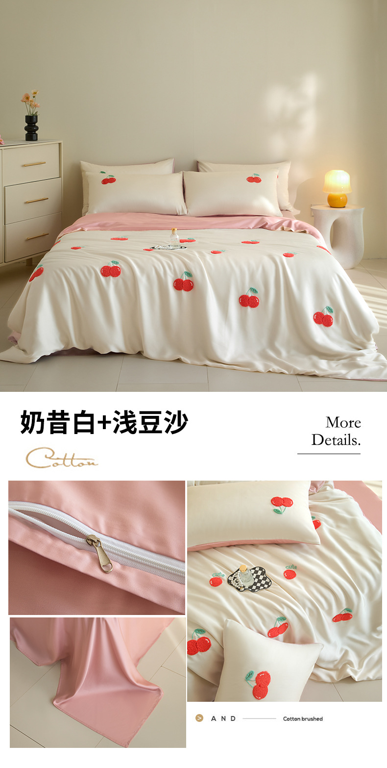 워시드 아이스 실크 수건 자수 4종 세트 시원한 에어컨 이불 커버 피부 친화적 통기성 세탁기 사용 가능 침구 세트 도매스토어 가기