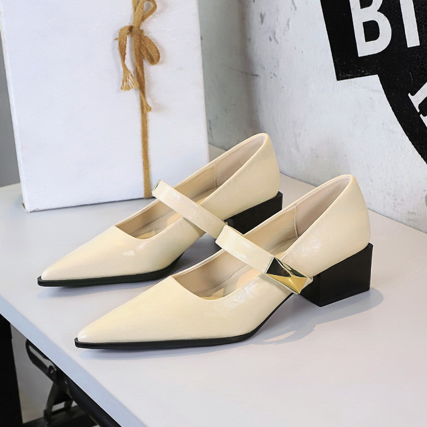 2838-2 유럽과 미국의 복고풍 얕은 입 Mary Jane 여성 신발 기질 발 뒤꿈치 싱글 슈즈와 두꺼운 뒤꿈치 뾰족한 금속 버클 단어스토어 가기