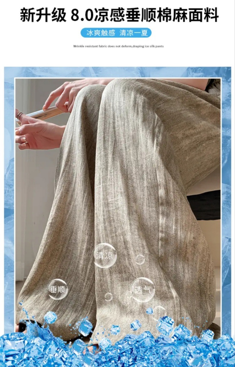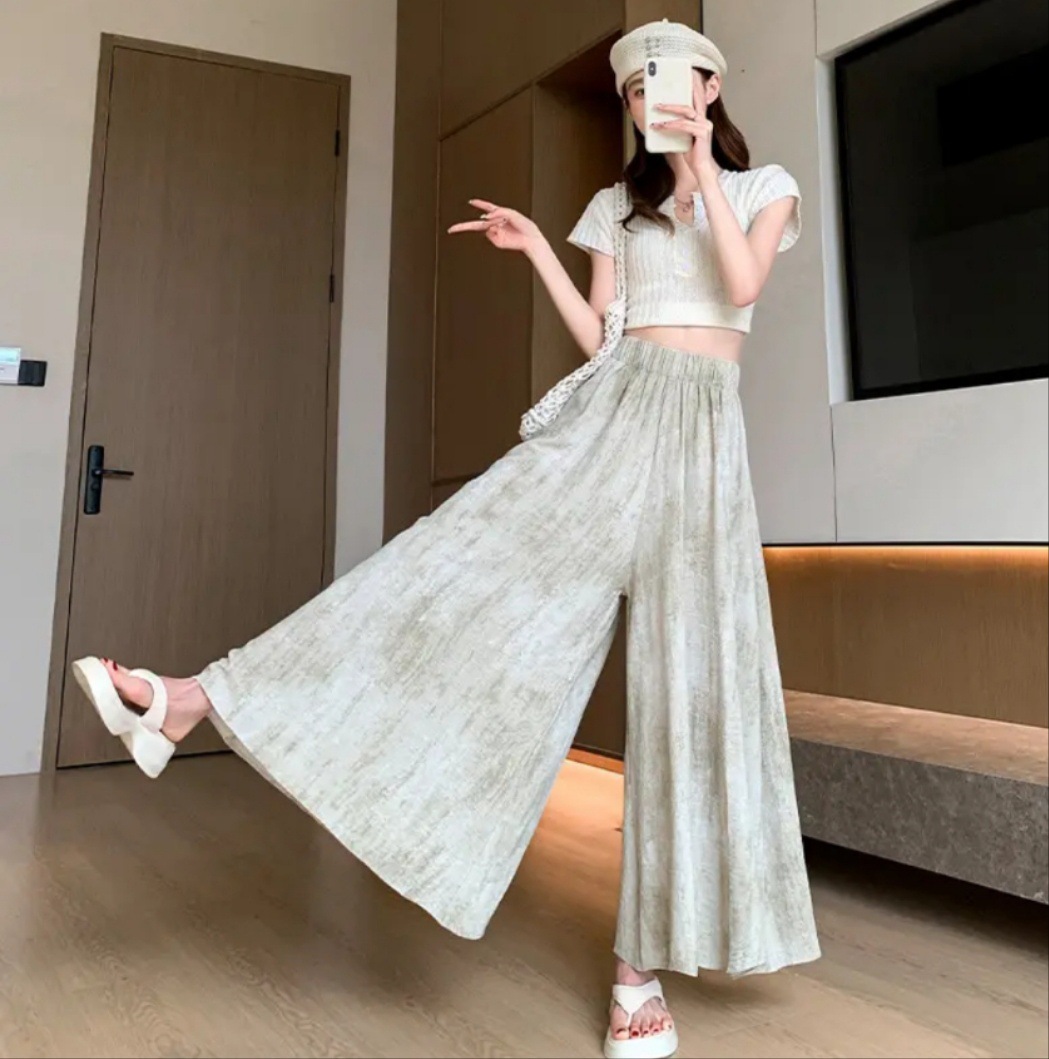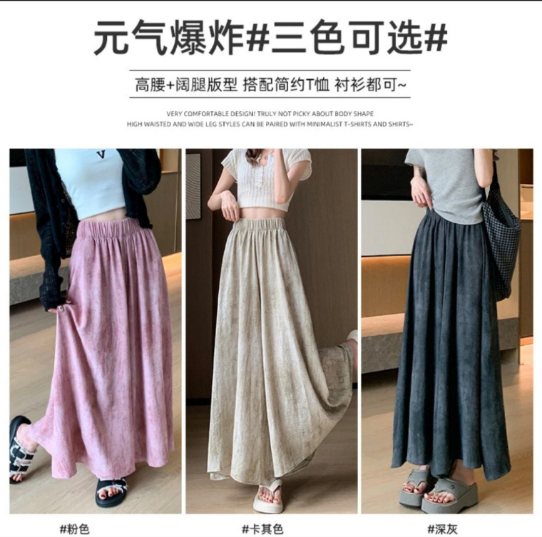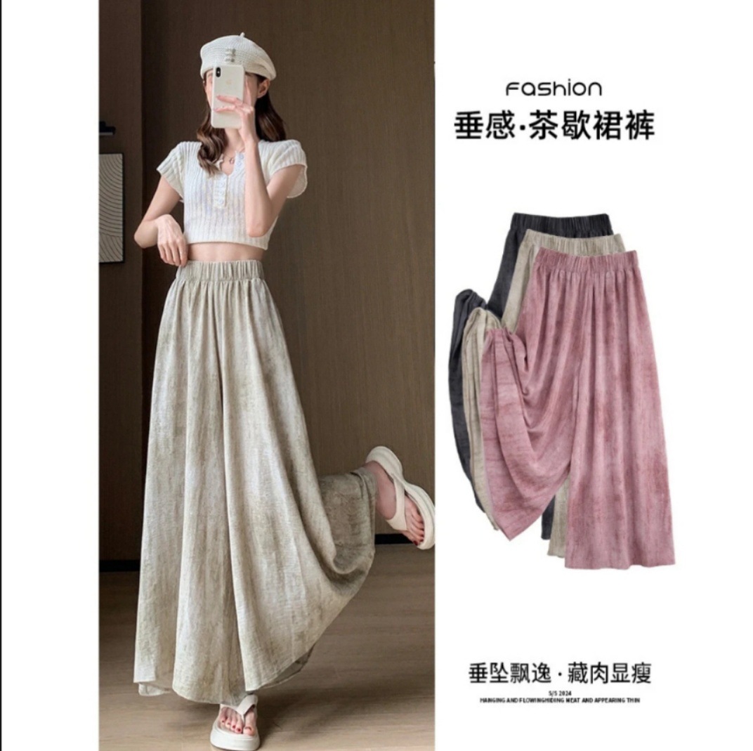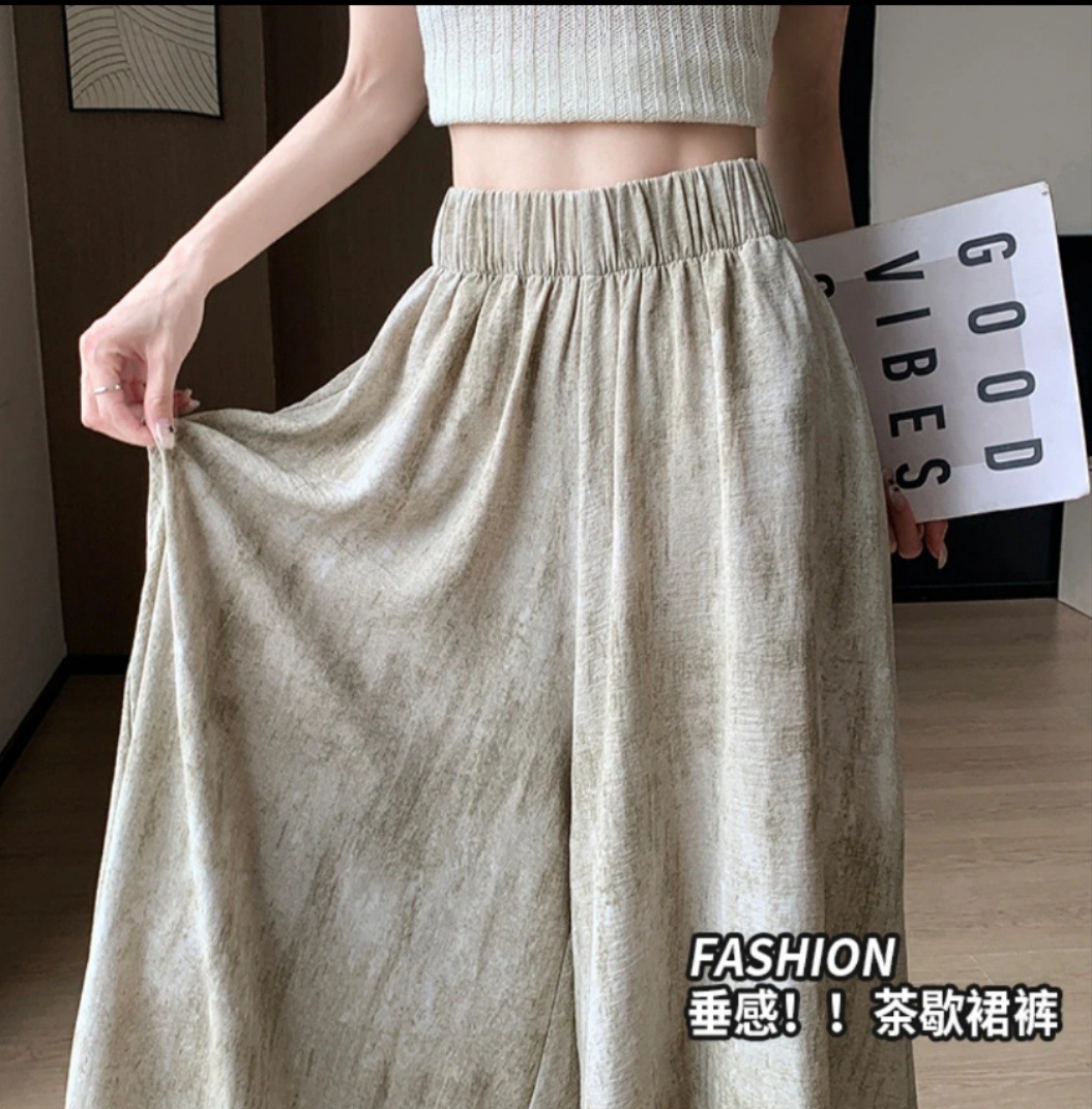 여름 얇은 2025 새로운 높은 허리 더미 작은 캐주얼 넥타이-염색 넓은 다리 바지 여성을위한 국가 스타일 문화스토어 가기