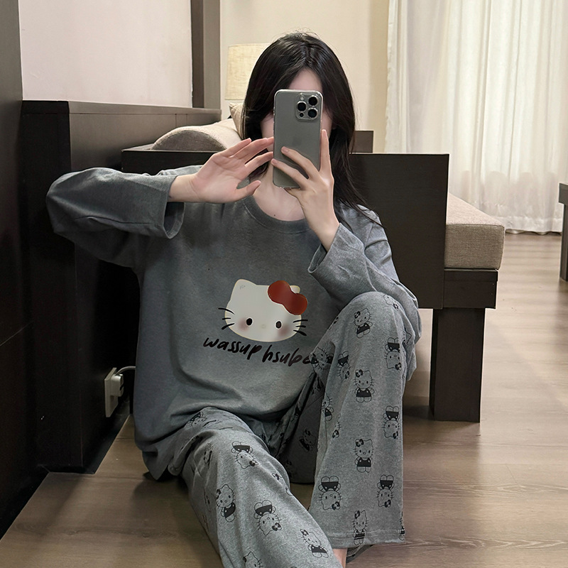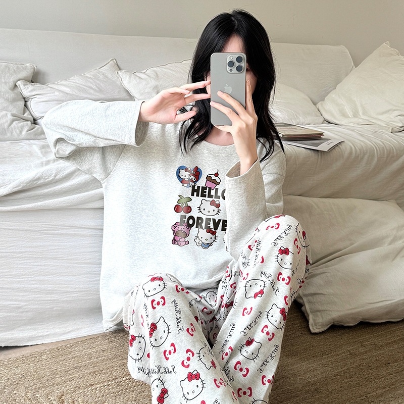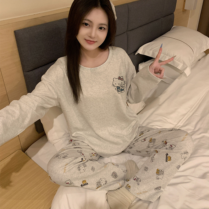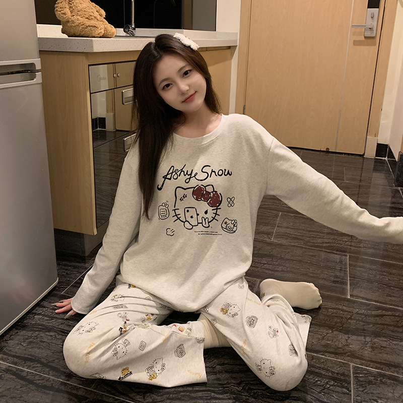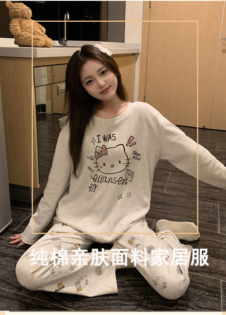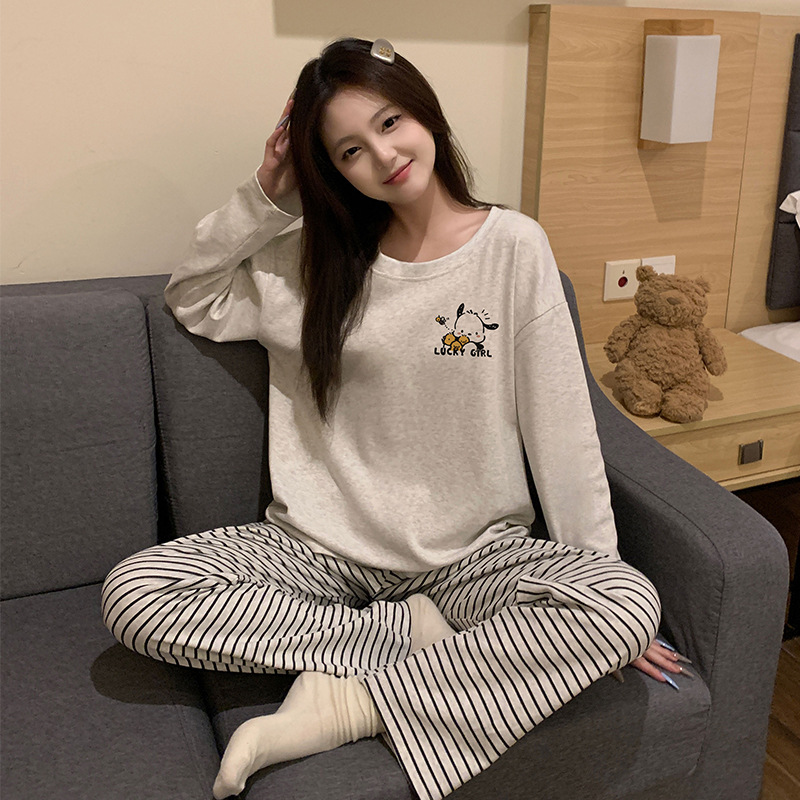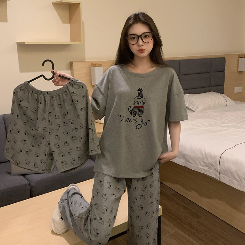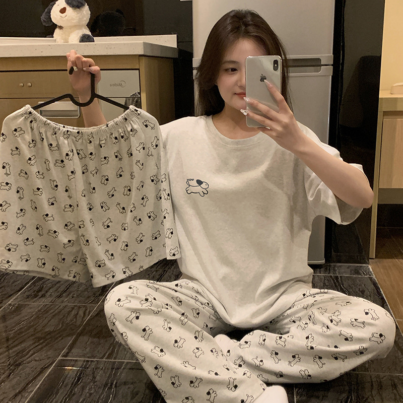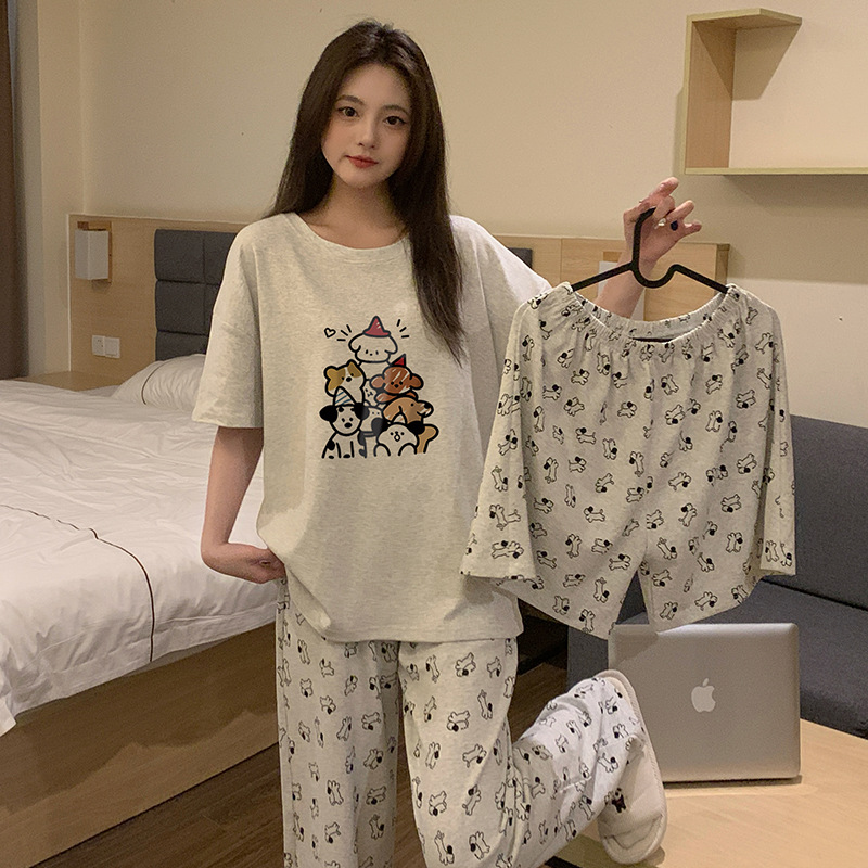 순면 잠옷 여성용 봄 여름 가을 반팔 긴바지 3피스 세트 만화 소녀 18세 중학생 귀여운 홈웨어스토어 가기