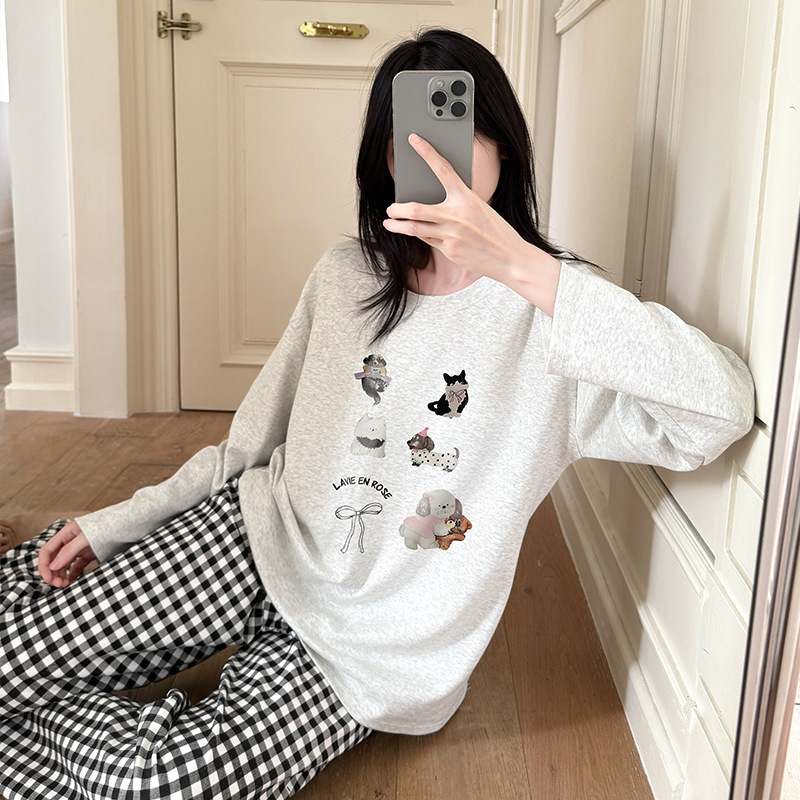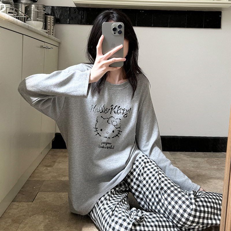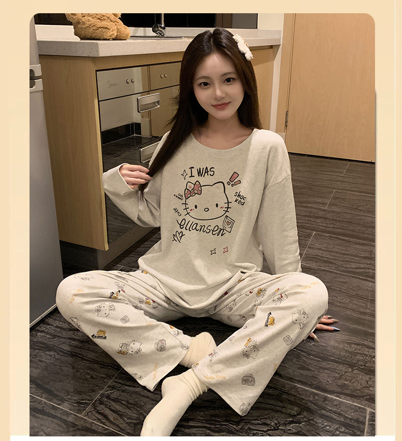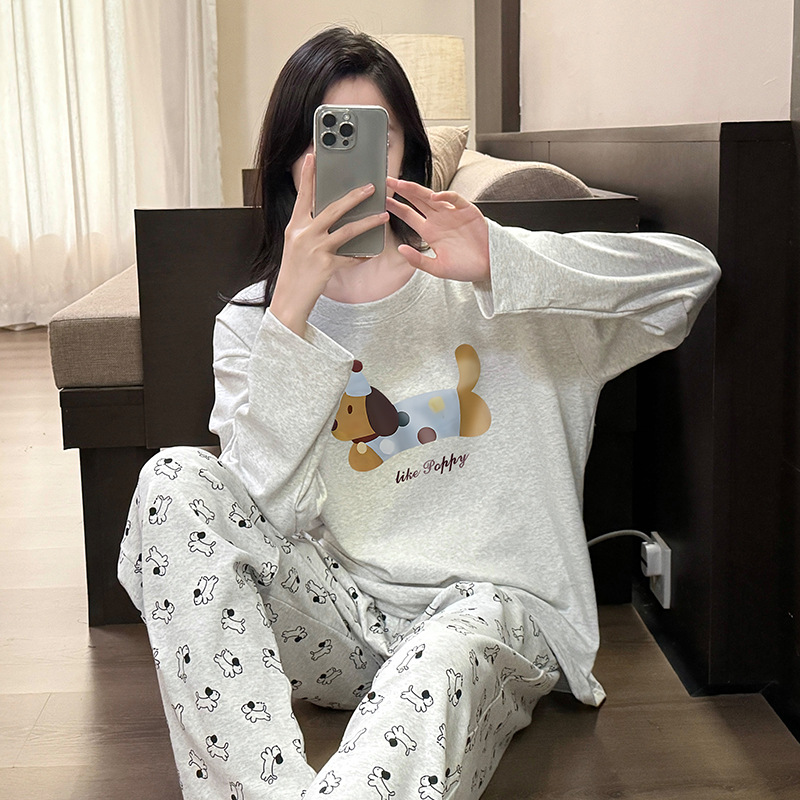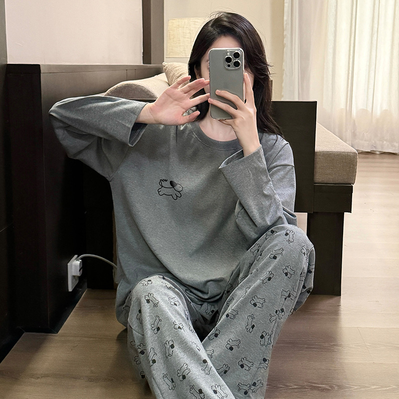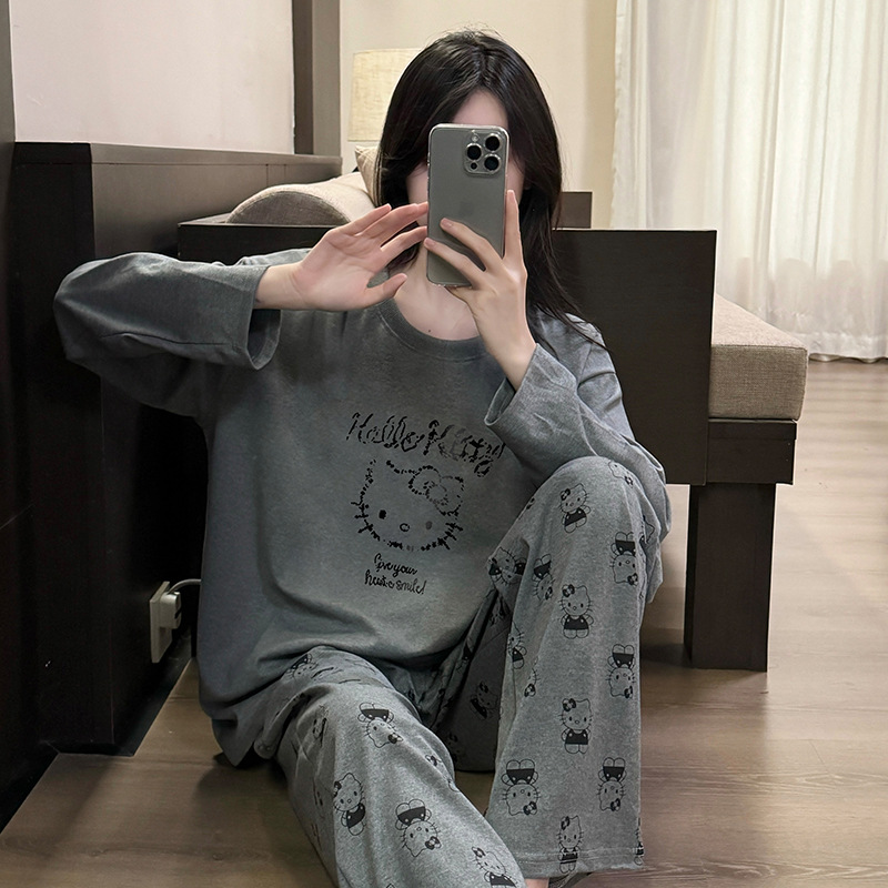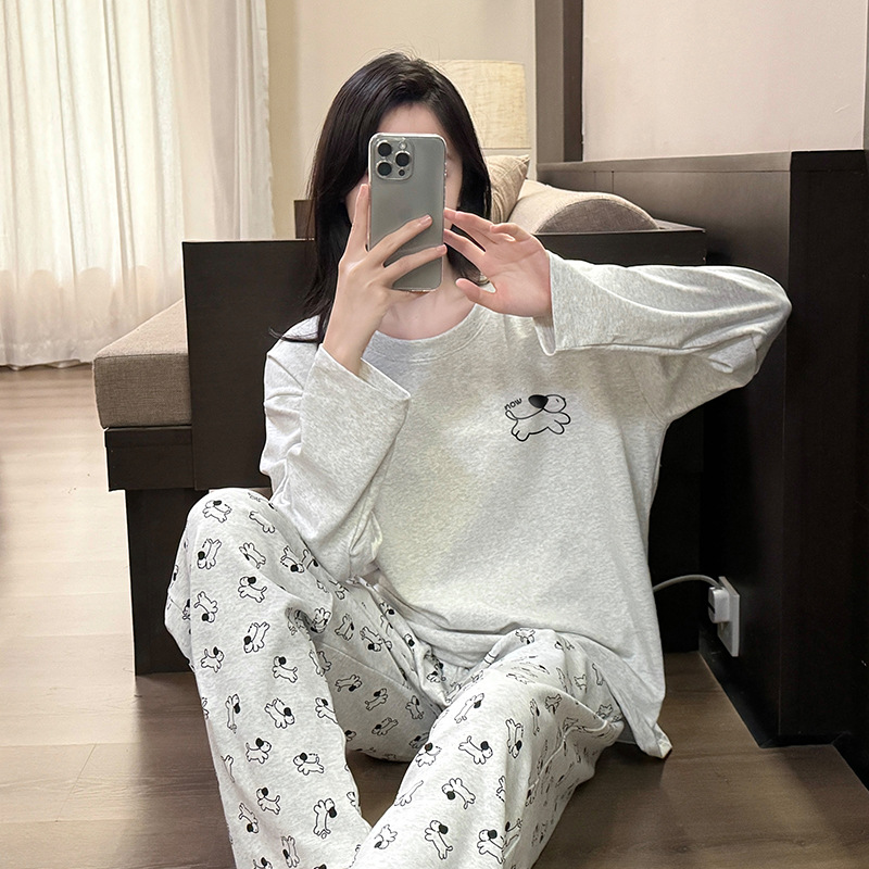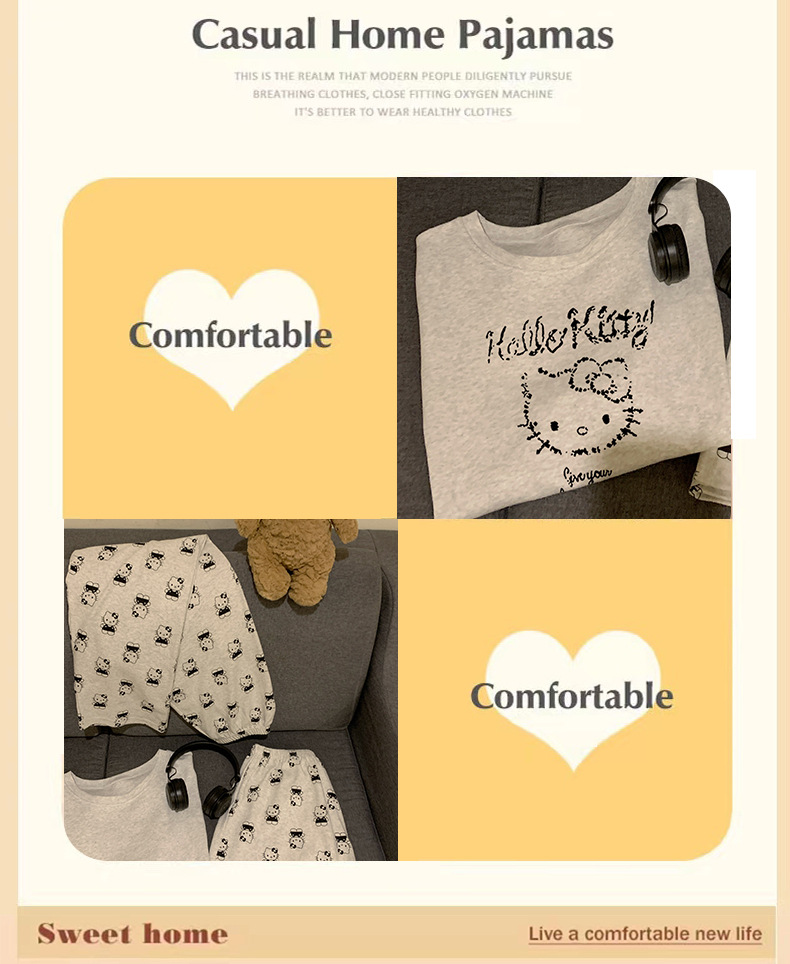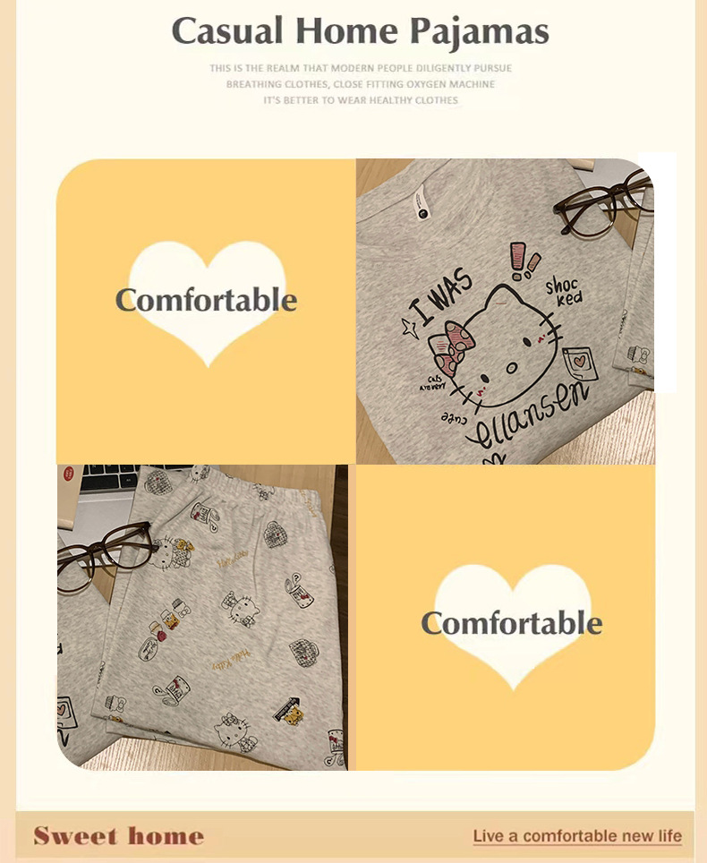 순면 잠옷 여성용 봄 여름 가을 반팔 긴바지 3피스 세트 만화 소녀 18세 중학생 귀여운 홈웨어스토어 가기