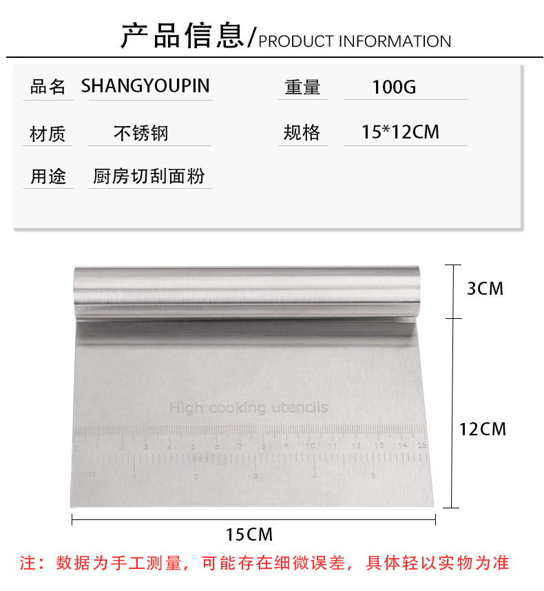제조 업체 도매 스테인레스 스틸 밀가루 커터 가정용 스케일 스테인레스 스틸 스크레이퍼 케이크 롤 밀가루 커터 베이킹 커터