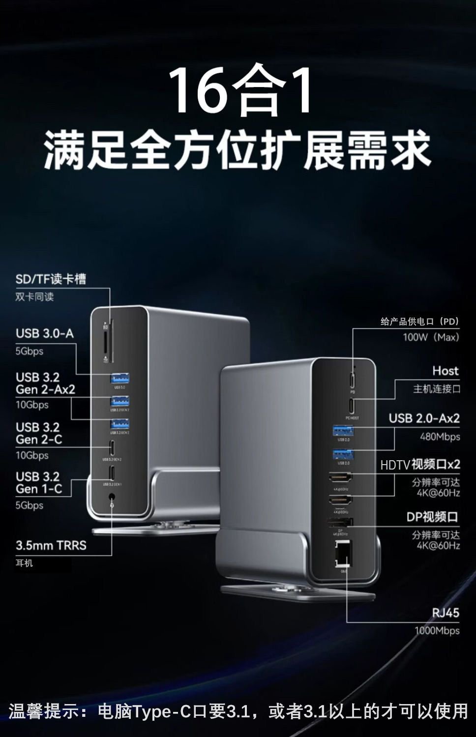 새로운 재고 16-in -1 도킹 스테이션 다기능 허브 타입-c 포트 usb 멀티 포트 4K 도킹 스테이션스토어 가기
