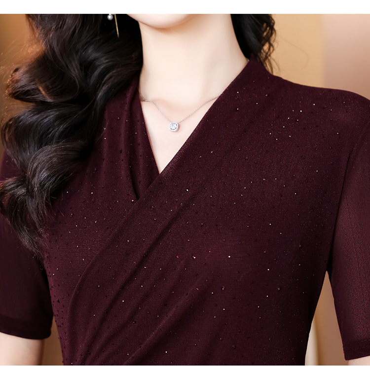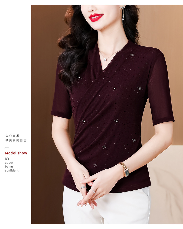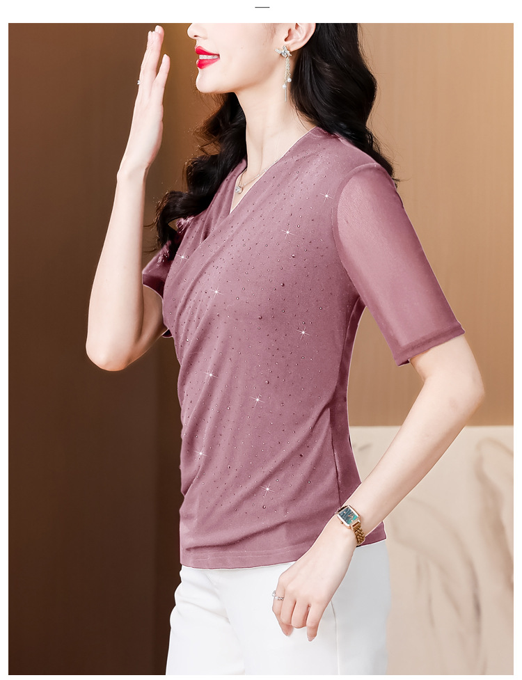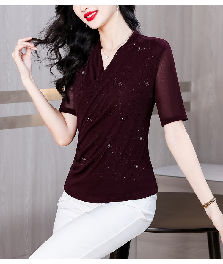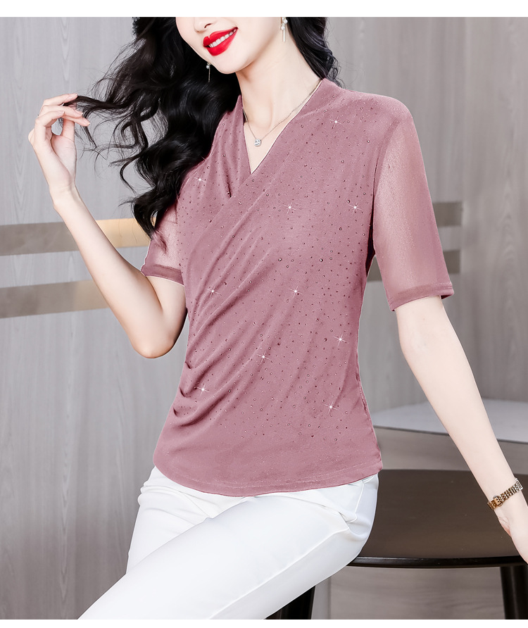 여름 새로운 핫 드릴링 패션 세련된 올매치 우아한 긴 소매 작은 셔츠 메쉬 슬리밍 여성용 V 넥 베이스 셔츠스토어 가기