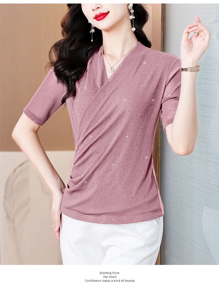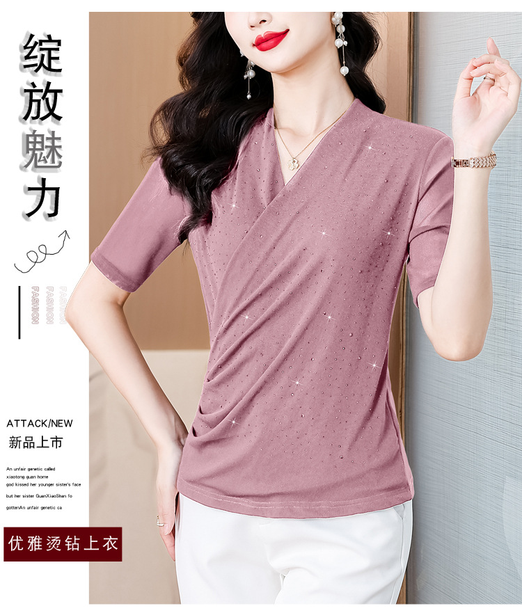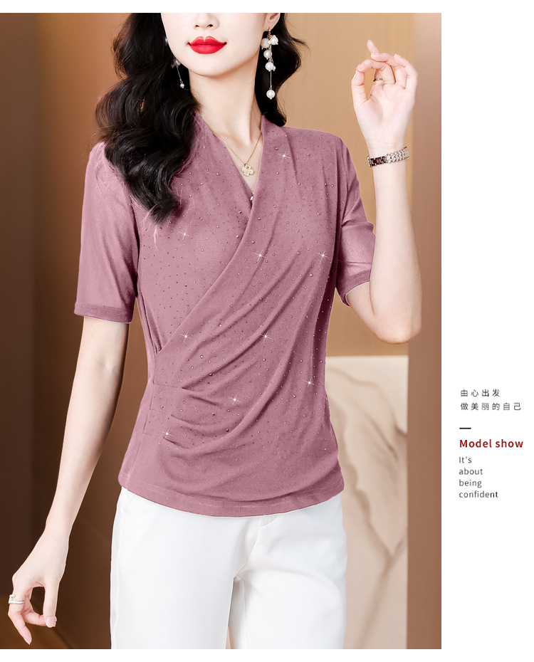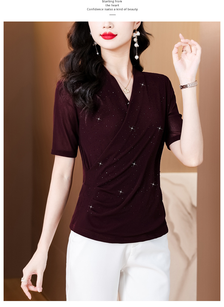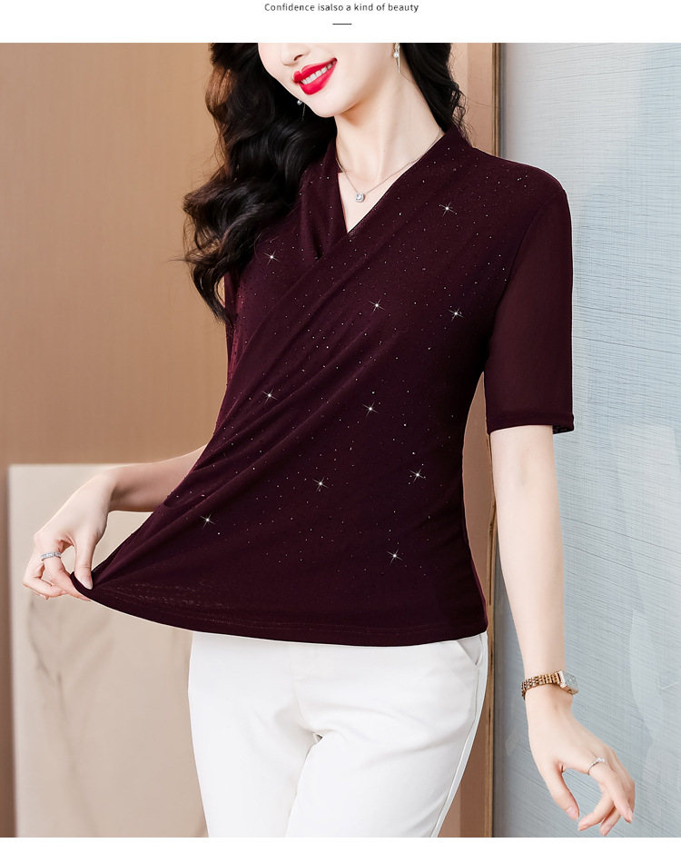 여름 새로운 핫 드릴링 패션 세련된 올매치 우아한 긴 소매 작은 셔츠 메쉬 슬리밍 여성용 V 넥 베이스 셔츠스토어 가기