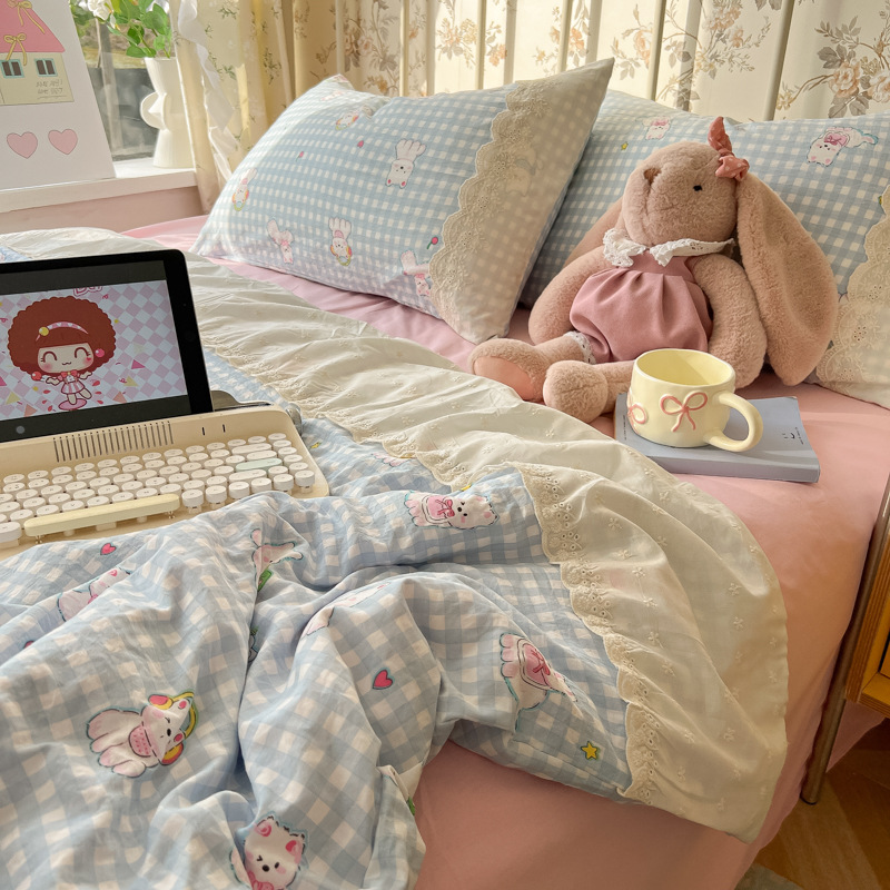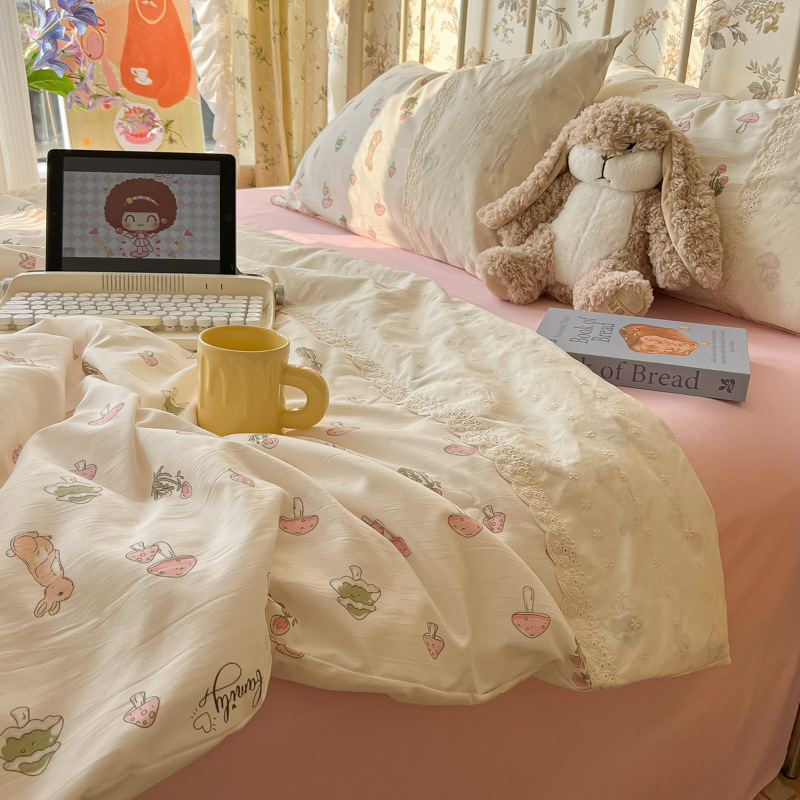 • 레이스 여름 이불 - 작은 토끼 버섯(피부 친화적인 워시드 코튼, 편안하고 통기성이 좋음)