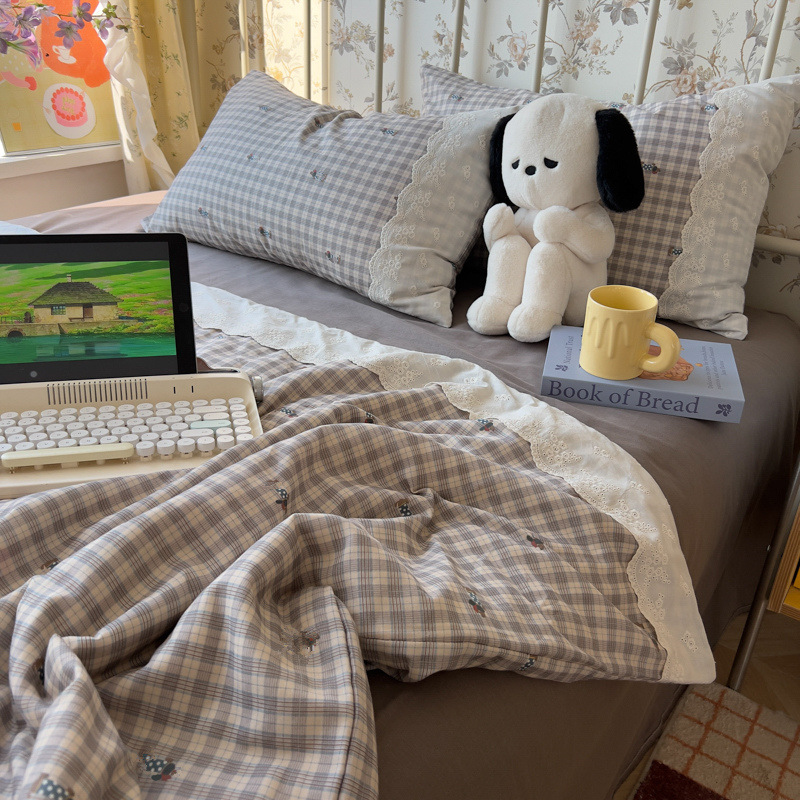 2025 새로운 클래스 프랑스 이중층 원사 여름 시원한 이불 4 조각 물로 씻은 면 에어컨 이불 콩 섬유 얇은 이불 3스토어 가기