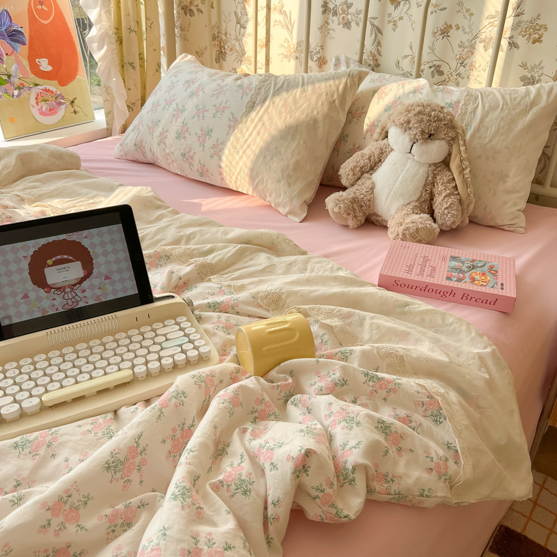 • 레이스 여름 퀼트-꽃송이(피부 친화적인 워시드 코튼, 편안하고 통기성이 좋음)
