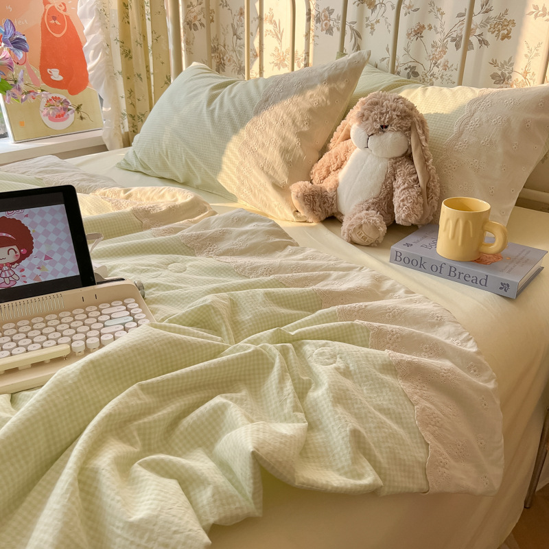 • 레이스 여름 퀼트-그린 작은 격자(피부 친화적인 워시드 코튼, 편안하고 통기성)