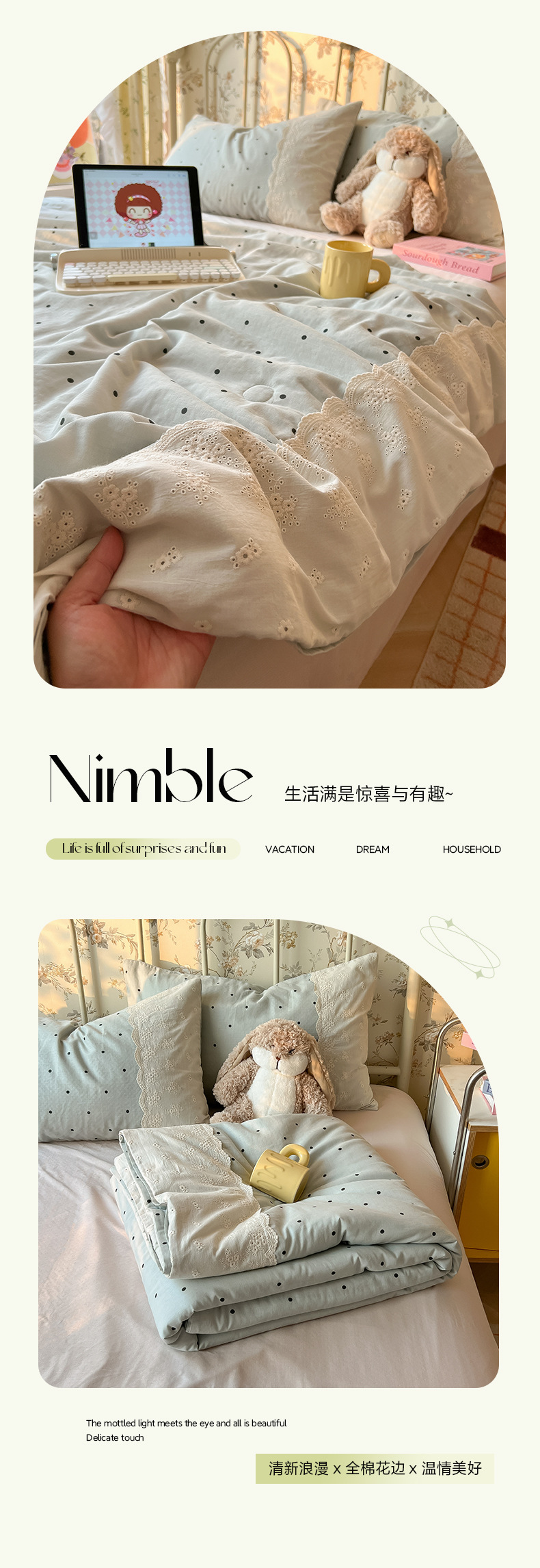 • 레이스 여름 이불 - Ziling (피부 친화적인 워시 코튼, 편안하고 통기성)