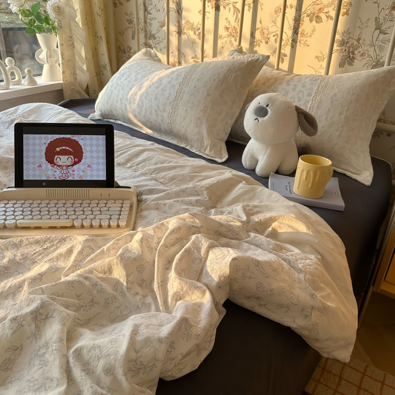 • 레이스 여름 이불 - 화만춘(피부 친화적인 워시드 코튼, 편안하고 통기성이 좋음)