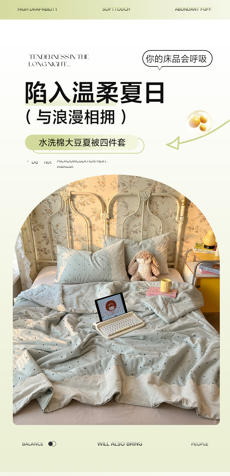• 레이스 여름 퀼트 - 꽃무늬 토끼 그린(피부 친화적인 워시드 코튼, 편안하고 통기성)