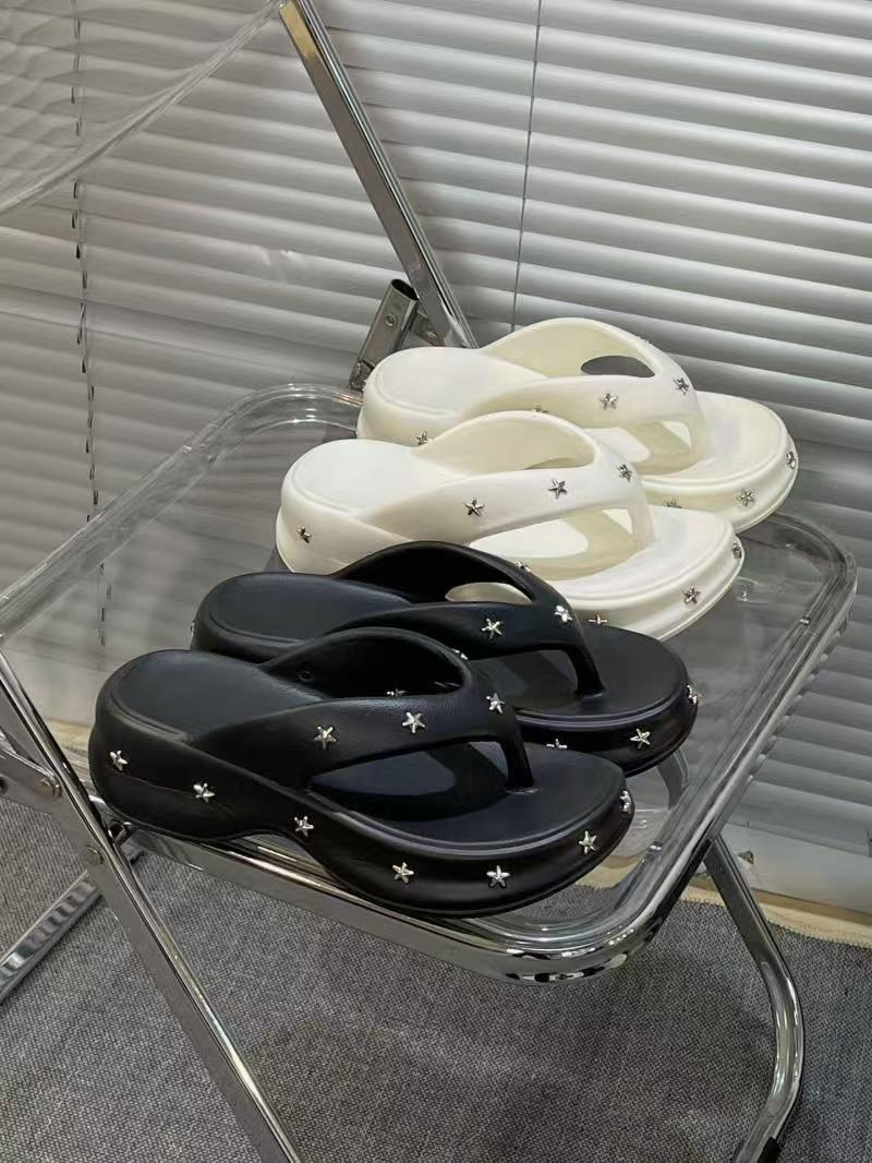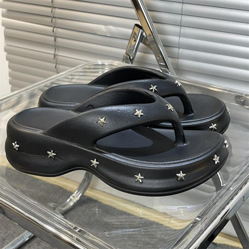5.0 여성용 두꺼운 밑창 스타 샌들, 2025 여름 신상 슬리퍼, 패셔너블한 플랫폼 밑창 슬리퍼스토어 가기